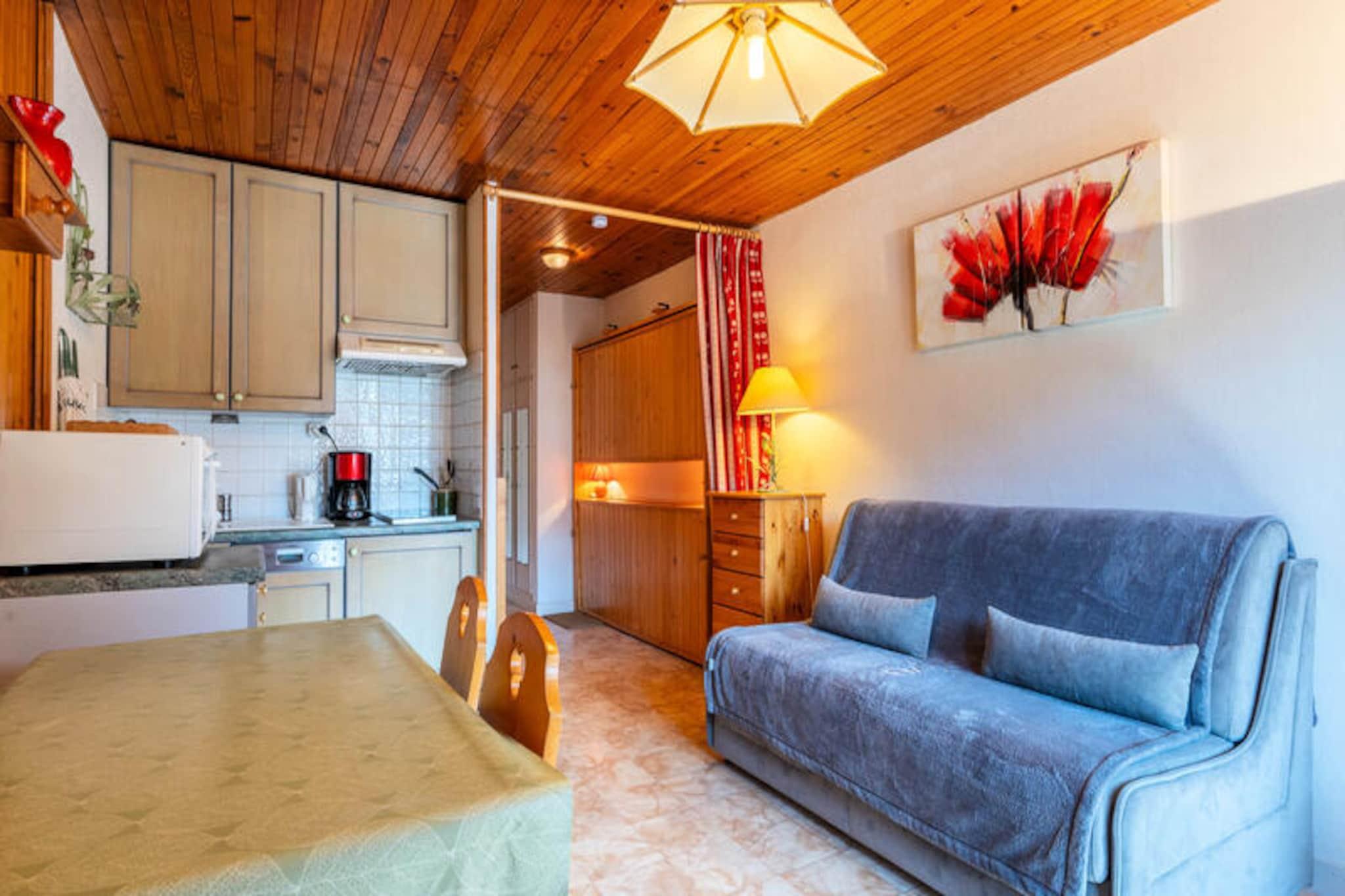 Denne charmerende studiolejlighed, beliggende i La Clusaz, tilbyder et hyggeligt tilflugtssted for 2-3 gæster. Beliggende kun 350 meter fra Bossonnet stoleliften, ski-telekopen og Telemix, er det perfekt til vintersportsentusiaster. Nærliggende attraktioner omfatter den pulserende landsby La Clusaz med dens vifte af butikker, restauranter og afterski-aktiviteter samt naturskønne vandre- og cykelstier om sommeren. For rejser er Annecy SNCF-stationen kun 33 km væk, og La Clusaz-busstationen ligger 850 meter væk. Lejligheden har et veludstyret tekøkken med ovn, opvaskemaskine og induktionskomfur, ideel til at tilberede måltider efter en dag på pisterne. Opholdsområdet omfatter en komfortabel rapido-dobbeltsovesofa, fladskærms-tv og en lille sydvendt balkon med udsigt over de omkringliggende bjerge. Studiet indeholder også et separat sovehjørne med en sammenklappelig enkeltseng, et badeværelse med badekar og toilet samt et skiskab. Beliggende 100 meter fra butikker og et shuttlestoppested kun 50 meter væk om vinteren (170 meter om sommeren), er bekvemmelighed nøglen. Lejligheden er røgfri og ikke tilgængelig for bevægelseshæmmede.