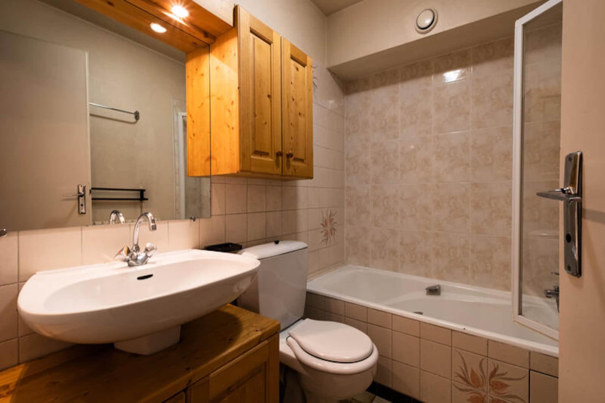 Denne ejendom, bekvemt beliggende ved indgangen til landsbyen, tilbyder et hyggeligt og funktionelt rum for op til 4 rejsende. Lejligheden har et soveværelse med dobbeltseng, og stuen indeholder en Rapido dobbelt sovesofa, perfekt til ekstra gæster. Lejligheden har en sydvendt balkon med udsigt over resortet og bjergene, så gæsterne kan slappe af og nyde landskabet. Køkkenet er fuldt udstyret med køleskab, ovn, mikroovn, opvaskemaskine og vaskemaskine for ekstra bekvemmelighed. Yderligere faciliteter omfatter et fladskærms-tv og et skiskab. Kæledyr er ikke tilladt, og lejligheden er ikke-ryger. Der er en garageplads til parkering, hvilket sikrer nem adgang. Ejendommen er ideelt beliggende kun 200 meter fra Champ Giguet-skiundervisningens afgangssted og Beauregard-svævebanerne, hvilket gør det til en perfekt base for vinteraktiviteter. Skøjtebanen og fritidscentret er også inden for gåafstand, hvilket giver rigelige muligheder for underholdning hele året rundt. I sommermånederne kan gæsterne nyde det nærliggende fritidscenter. Ejendommen ligger kun 350 meter fra det nærmeste shuttlestop, hvilket giver nem adgang til andre dele af resortet. Med sin centrale beliggenhed kan gæster nemt udforske landsbyen, med butikker i nærheden, hvilket sikrer bekvemmelighed og komfort under deres ophold. Lejligheden tilbyder alle de nødvendige faciliteter for et behageligt ophold. Tekøkkenet er udstyret med køleskab, ovn og Nespresso kaffemaskine, mens badeværelset har badekar, håndvask og toilet. Centralvarme sikrer, at lejligheden forbliver varm under hele opholdet. Gæsterne kan nyde den naturskønne udsigt fra stuen og balkonen, hvilket gør rummet indbydende og afslappende. Lejligheden er beliggende i en bolig bygget i 1976, der tilbyder et indbydende og velholdt miljø for en fredelig ferie.