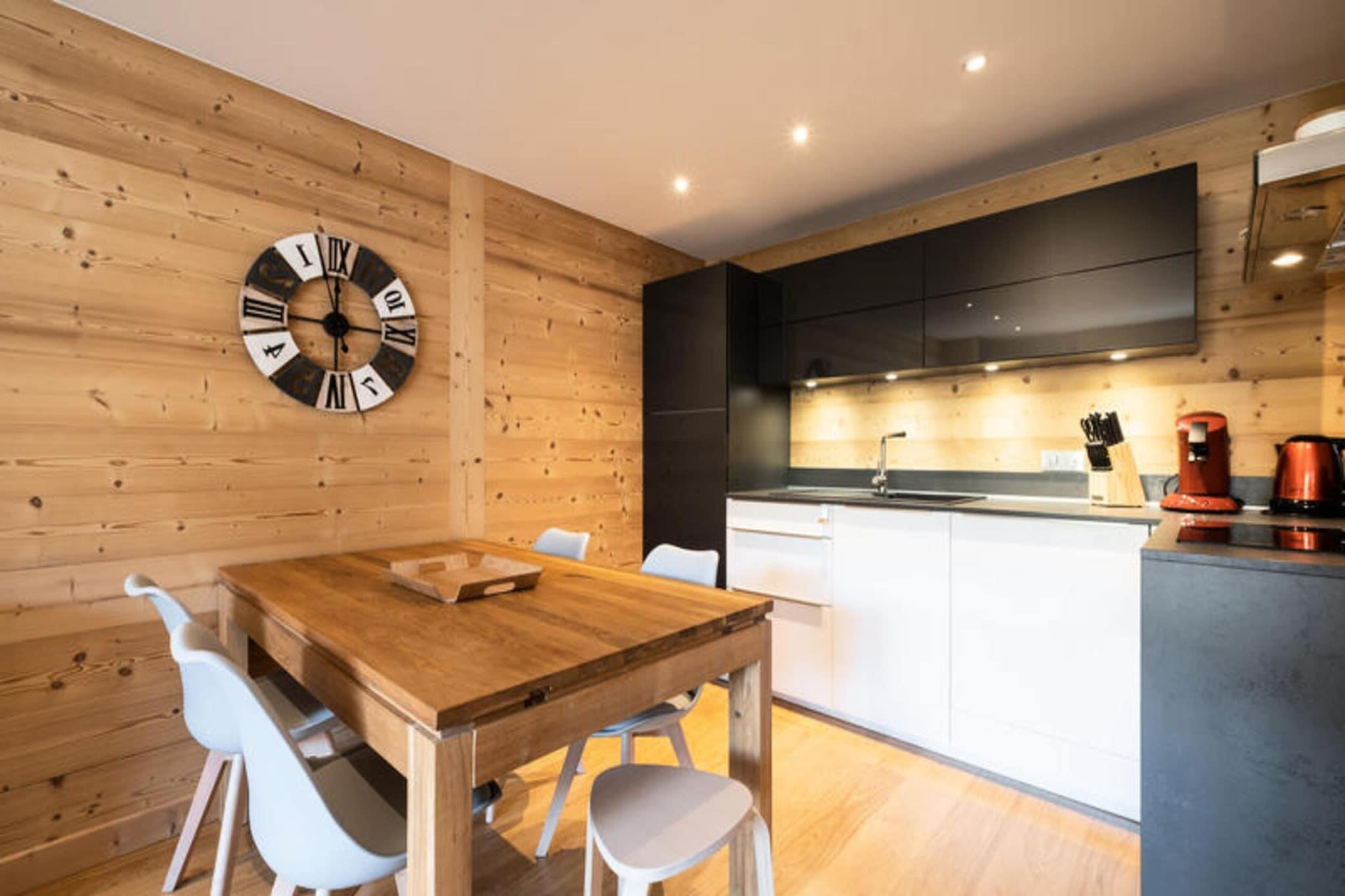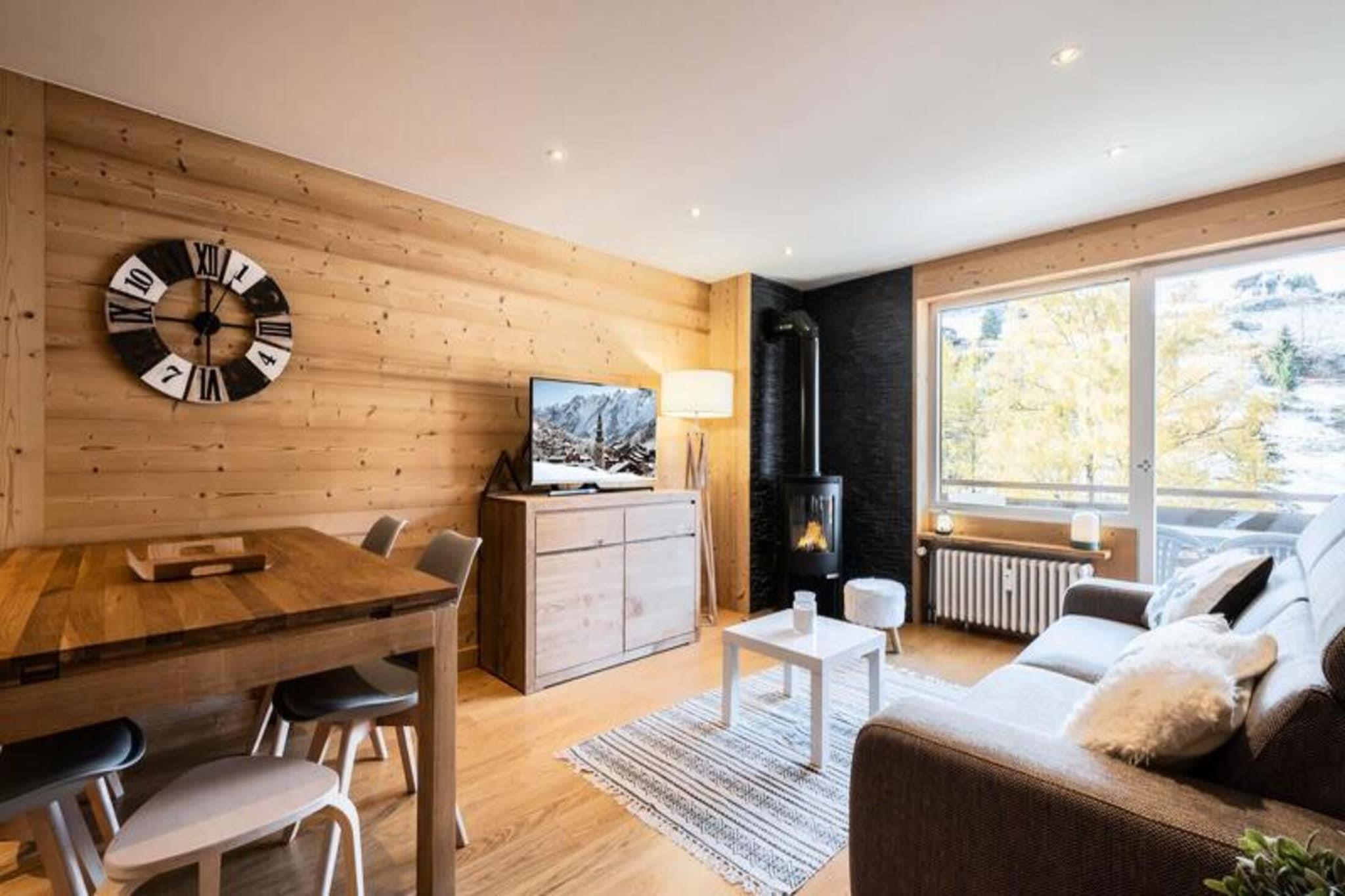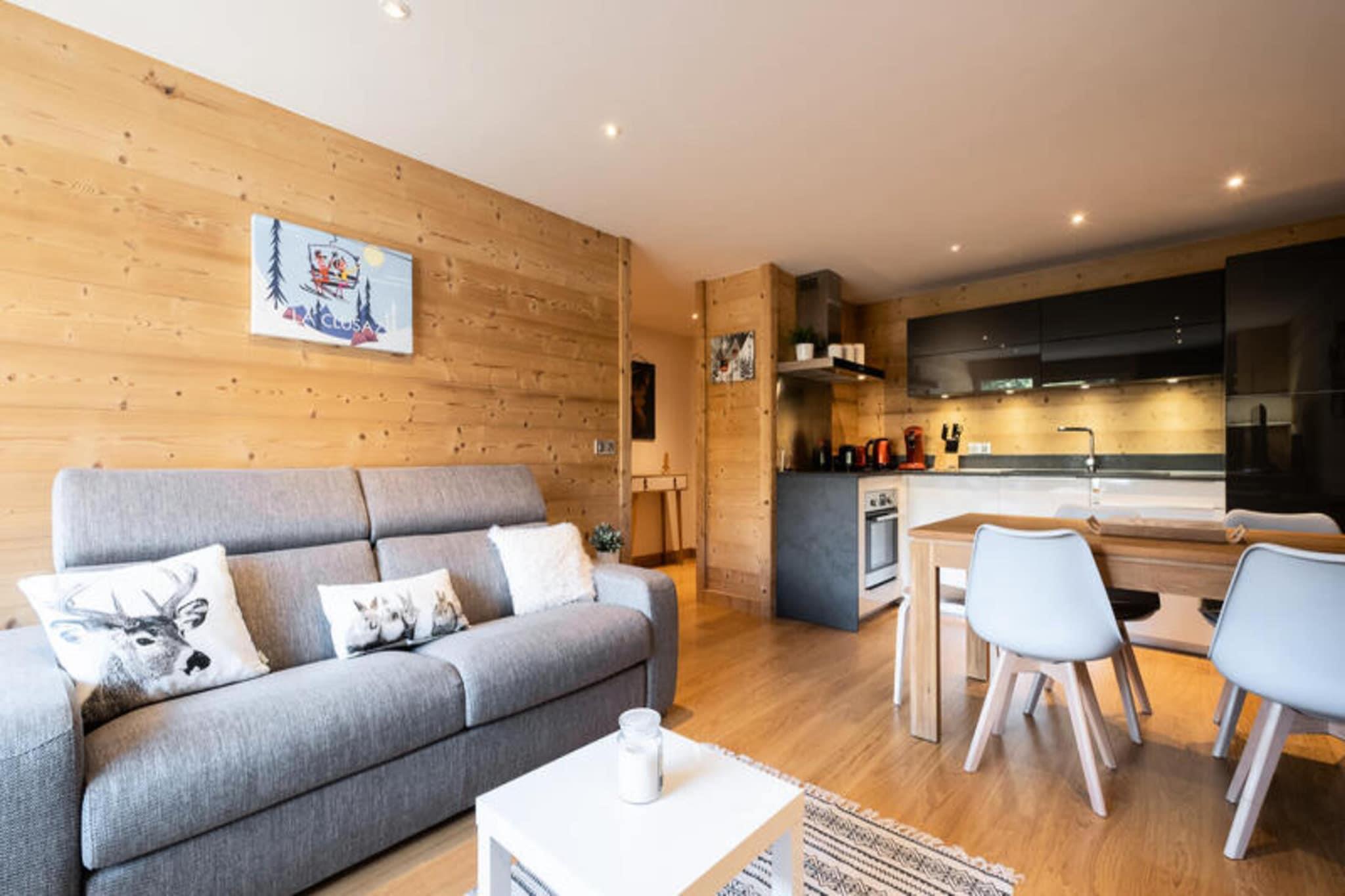 Ejendommen er sammen med sin charmerende og funktionelle indretning en 39m² lejlighed beliggende på anden sal og kan rumme op til 4 personer. I stuen er der en Rapido-sovesofa (140) og et fladskærms-tv, mens det tilstødende soveværelse er indrettet med en dobbeltseng (140). Gæsterne kan nyde en privat sydøstvendt balkon med udsigt over de omkringliggende grønne områder, skråninger og bjerge. Denne lejlighed tillader ikke kæledyr og er ikke-ryger. Det omfatter også et skiskab for gæsternes bekvemmelighed. Tilvalgsydelser er ikke nævnt, men lejligheden leverer dynebetræk, lagner og pudebetræk ved ankomst. Der er ingen gratis aktiviteter inkluderet. Ejendommen ligger i den naturskønne Aravis-dal, 3,2 km fra landsbyens centrum, og tilbyder nem adgang til de nærliggende attraktioner og skifaciliteter. Boligen ligger kun 200 meter fra Etale telemix-liften og kun 600 meter fra udgangspunktet for La Combe des Juments stoleliften, hvilket gør den til et ideelt valg for skientusiaster. Et shuttlestoppested kun 200 meter fra boligen sikrer problemfri transport til og fra landsbyen. Placeringen tilbyder et fredeligt tilflugtssted med en betagende udsigt over bjergene, mens den stadig er tæt på landsbyen og væsentlige faciliteter. Den nærmeste togstation er Annecy SNCF, cirka 36,6 km væk, og La Clusaz-busstationen ligger 3,95 km fra ejendommen. Lejligheden er udstyret med et velindrettet køkken med køleskab med fryser, induktionskomfur, ovn, mikroovn, opvaskemaskine og Nespresso kaffemaskine. Et separat badeværelse med bruser, håndvask og håndklædetørrer giver bekvemmelighed sammen med en vaskemaskine til tøjvask. Lejligheden har også et separat toilet og centralvarme for komfort. Der er adgang til boligens ydre via en ekstern trappe, og selve lejligheden er placeret i en bolig på 10 enheder, bygget i 1969. Selvom der ikke er nogen dedikeret parkering, gør skiopbevaringsrummet og nærheden til elevatorer det til et bekvemt valg for dem planlægger at køre på pisterne.