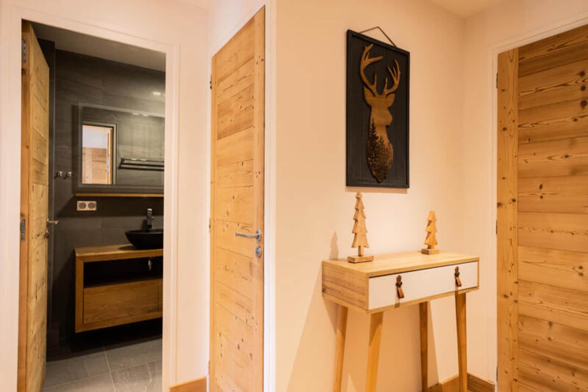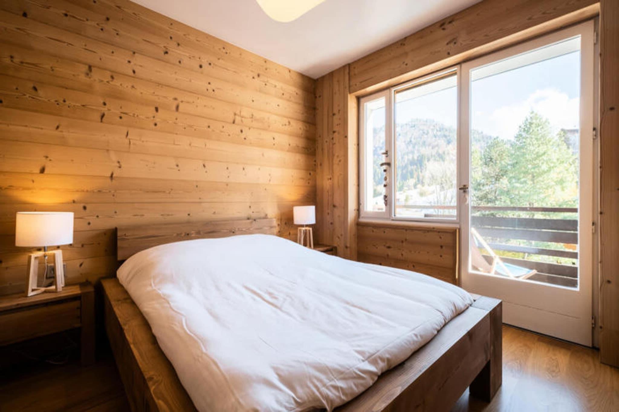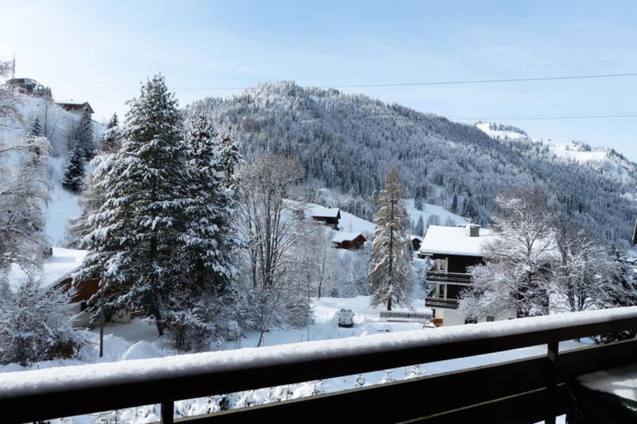 Ejendommen er sammen med sin charmerende og funktionelle indretning en 39m² lejlighed beliggende på anden sal og kan rumme op til 4 personer. I stuen er der en Rapido-sovesofa (140) og et fladskærms-tv, mens det tilstødende soveværelse er indrettet med en dobbeltseng (140). Gæsterne kan nyde en privat sydøstvendt balkon med udsigt over de omkringliggende grønne områder, skråninger og bjerge. Denne lejlighed tillader ikke kæledyr og er ikke-ryger. Det omfatter også et skiskab for gæsternes bekvemmelighed. Tilvalgsydelser er ikke nævnt, men lejligheden leverer dynebetræk, lagner og pudebetræk ved ankomst. Der er ingen gratis aktiviteter inkluderet. Ejendommen ligger i den naturskønne Aravis-dal, 3,2 km fra landsbyens centrum, og tilbyder nem adgang til de nærliggende attraktioner og skifaciliteter. Boligen ligger kun 200 meter fra Etale telemix-liften og kun 600 meter fra udgangspunktet for La Combe des Juments stoleliften, hvilket gør den til et ideelt valg for skientusiaster. Et shuttlestoppested kun 200 meter fra boligen sikrer problemfri transport til og fra landsbyen. Placeringen tilbyder et fredeligt tilflugtssted med en betagende udsigt over bjergene, mens den stadig er tæt på landsbyen og væsentlige faciliteter. Den nærmeste togstation er Annecy SNCF, cirka 36,6 km væk, og La Clusaz-busstationen ligger 3,95 km fra ejendommen. Lejligheden er udstyret med et velindrettet køkken med køleskab med fryser, induktionskomfur, ovn, mikroovn, opvaskemaskine og Nespresso kaffemaskine. Et separat badeværelse med bruser, håndvask og håndklædetørrer giver bekvemmelighed sammen med en vaskemaskine til tøjvask. Lejligheden har også et separat toilet og centralvarme for komfort. Der er adgang til boligens ydre via en ekstern trappe, og selve lejligheden er placeret i en bolig på 10 enheder, bygget i 1969. Selvom der ikke er nogen dedikeret parkering, gør skiopbevaringsrummet og nærheden til elevatorer det til et bekvemt valg for dem planlægger at køre på pisterne.