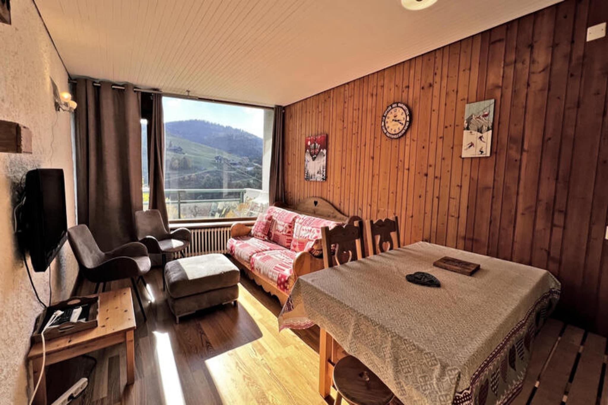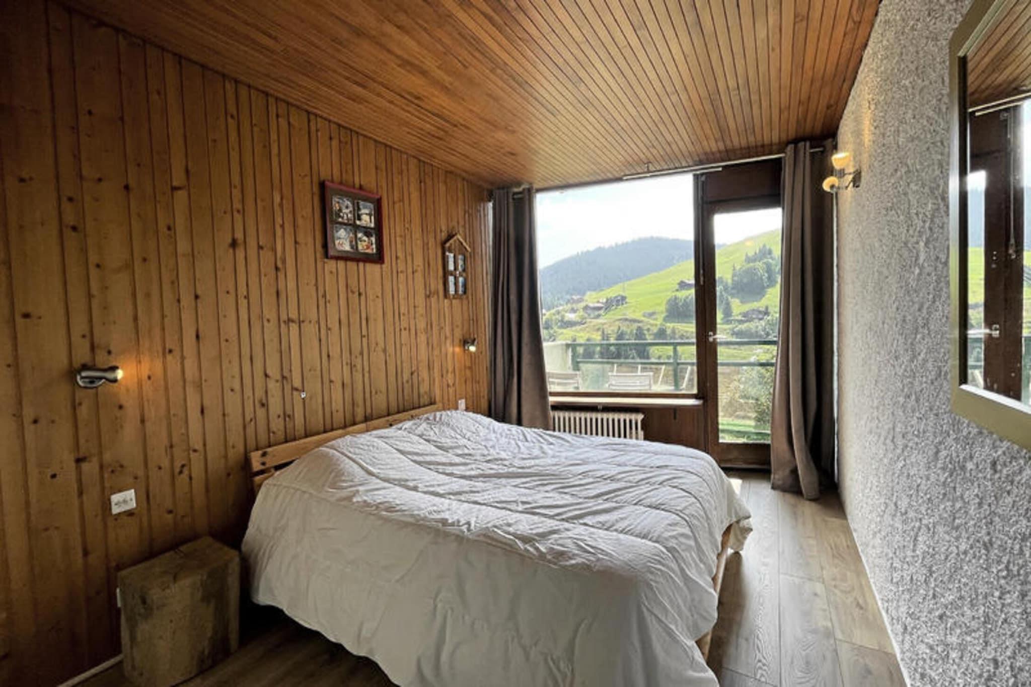 Denne komfortable lejlighed på 49 m², beliggende på første sal i en rolig bolig, kan rumme op til 5 personer og tilbyder et afslappende bjergtilflugtssted. Lejligheden indeholder en stue med sofa og tv, et soveværelse med dobbeltseng og et bjerghjørne med køjesenge og en skuffeseng, perfekt til familier eller mindre grupper. Det har en sydvendt balkon med en fantastisk udsigt over Etale og Beauregard-massivet. En individuel garage og skiskab er inkluderet, hvilket sikrer bekvemmelighed for gæsterne. Yderligere tjenester såsom en mini Wi-Fi-boks, leje af sengetøj og slutrengøring er tilgængelige mod et ekstra gebyr. Kæledyr er ikke tilladt. Boligen er ideelt beliggende kun 50 meter fra skilifterne og tilbyder direkte adgang til Combe des Juments-bakken, hvilket giver nem adgang til stoleliften og Transval. Der ligger et gratis skibusstoppested 150 meter derfra, hvilket forbedrer resortets tilgængelighed. La Clusazs landsbycentrum ligger 3,5 km væk, hvilket sikrer både et roligt miljø og nem adgang til feriestedets aktiviteter. Om sommeren kan gæsterne nyde boligens private opvarmede swimmingpool (24°C), hvilket gør det til en destination året rundt. Lejlighedens køkken er veludstyret med en 4-brænder induktionskomfur, rotisserie, opvaskemaskine, køleskab og en raclettemaskine, der tilbyder alle de nødvendige faciliteter til selvforplejning.