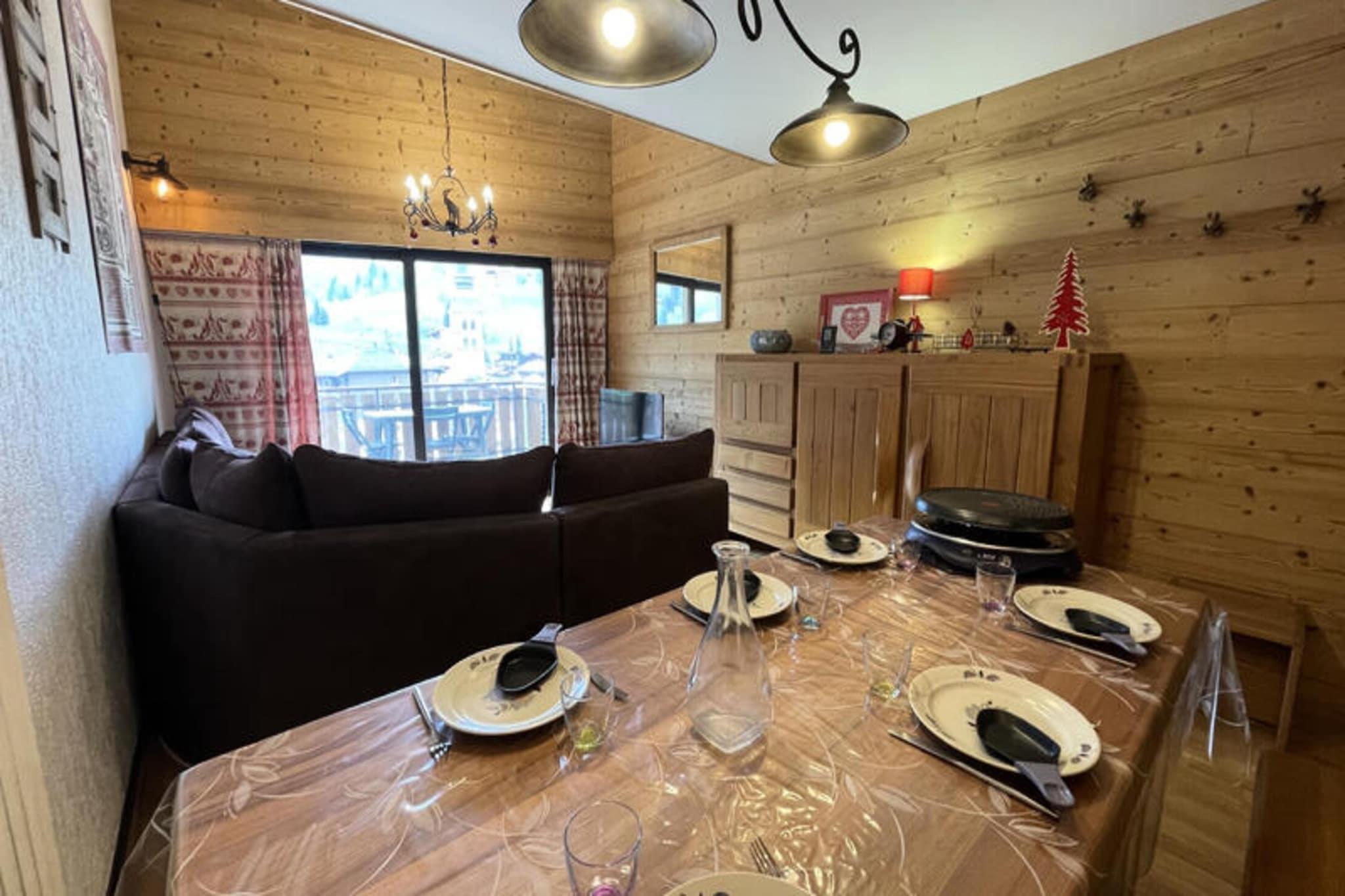 Ejendommen tilbyder sammen med sine bekvemme og komfortable omgivelser indkvartering for op til 6 gæster. Feriehuset har 4 værelser og tilbyder en række faciliteter for at sikre et behageligt ophold. Den har opholdsstue med sofa og lænestole, spiseplads og en sydvendt balkon på 7 m² med udsigt over landsbyen og pisterne. Hjemmet er ikke kæledyrsvenligt, og dyr er ikke tilladt. Derudover kan gæsterne vælge tjenester såsom leje af sengetøj, mini wifi-boks og babyudstyr, som kan forudbestilles inden ankomst. Selvom der ikke tilbydes gratis aktiviteter, giver stedet nem adgang til forskellige udendørs eventyr. Ejendommen er centralt beliggende i nærheden af ??flere attraktioner og faciliteter i La Clusaz. Kun 300 meter væk kan besøgende få adgang til skiløjperne til alpint skiløb og langrend samt ESF-skiskolen og Champ Giguet-afgange. En række butikker, daginstitutioner og børneaktiviteter er inden for gåafstand. Beauregard-gondolen er også tæt på til langrend. De nærmeste transportforbindelser omfatter busser og togstationer, hvilket gør det nemt at nå ejendommen fra andre områder. Beliggenheden byder på fremragende muligheder for både vintersportsentusiaster og dem, der ønsker at udforske det omkringliggende område. Feriehuset er udstyret med et fuldt funktionelt køkken med elektrisk ovn, 4 kogeplader, køleskab med fryser, opvaskemaskine, mikroovn, filterkaffemaskine og raclettemaskine. Ejendommen inkluderer også væsentlige forsyninger såsom centralvarme, vand og elektricitet, alt inkluderet i prisen. Gæsterne får et velkomstsæt, der indeholder grundlæggende forsyninger som toiletpapir, affaldsposer og en svamp. Yderligere tjenester, såsom slutrengøring og adgang til skiskabe, er også tilgængelige mod et ekstra gebyr. Med sit veludstyrede køkken og praktiske faciliteter er ejendommen velegnet til både korte ophold og længere besøg.