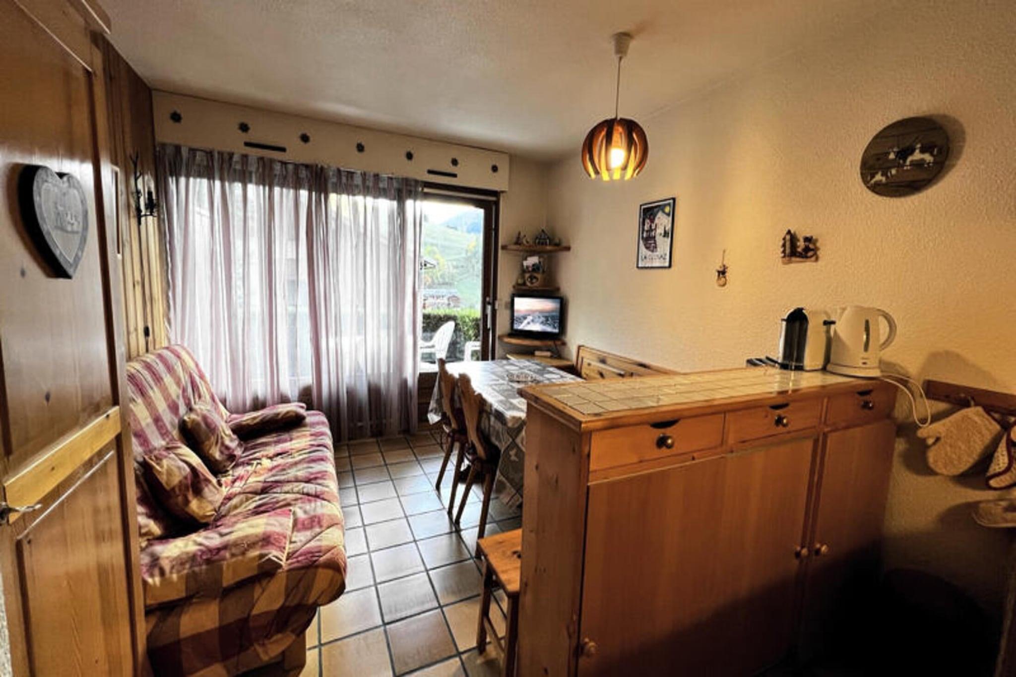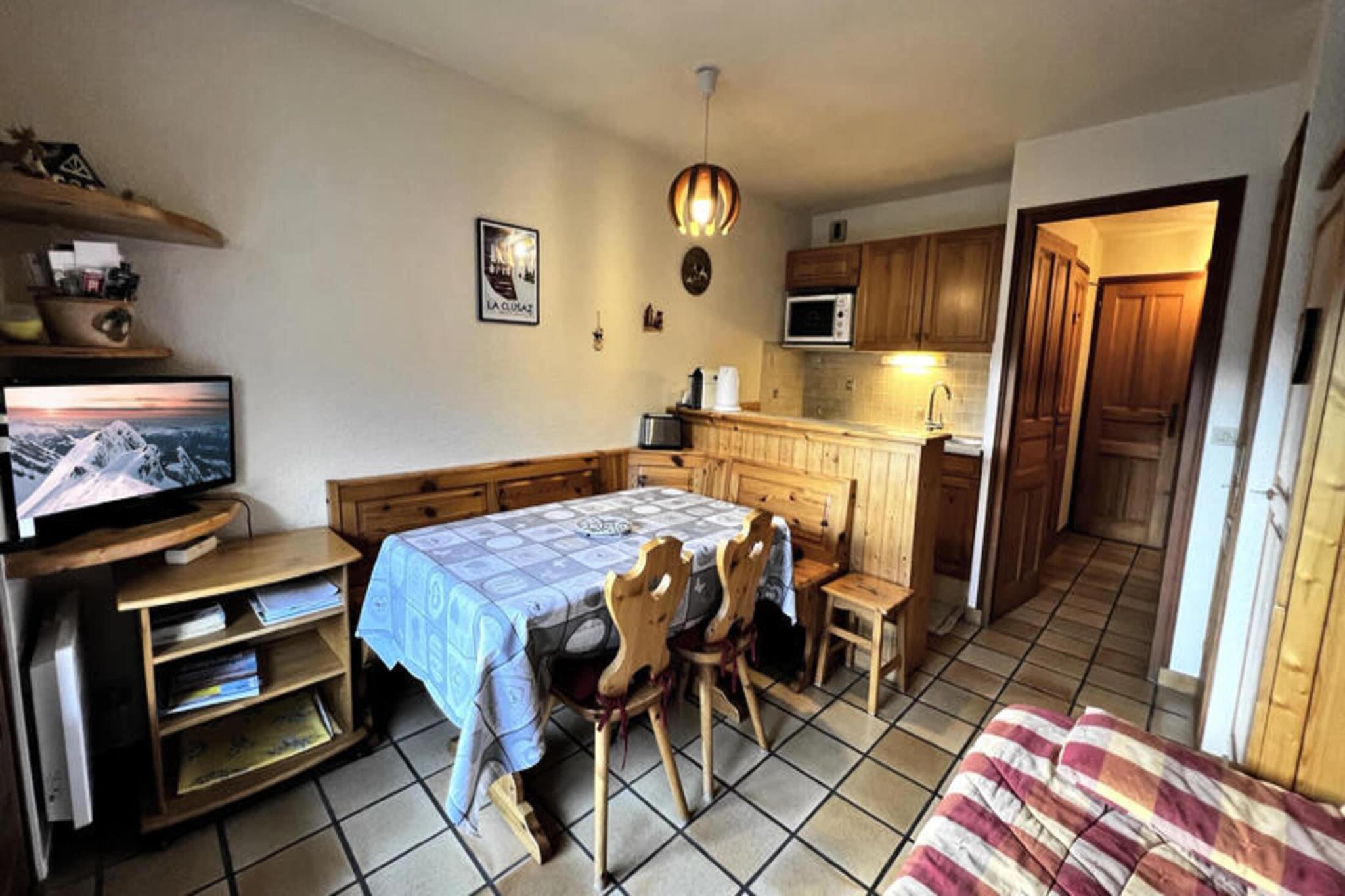 Denne charmerende lejlighed kan rumme op til 4 personer og er beliggende på haveniveauet i en ny bolig med 15 lejligheder. Det har et soveværelse med dobbeltseng, en køjeseng i natområdet og en hyggelig stue med fladskærms-tv og sofa. Lejligheden har en sydvendt terrasse med havemøbler, der tilbyder uhindret udsigt over pisterne og Aravis-bjergkæden. Selvom kæledyr ikke er tilladt, er valgfrie tjenester såsom en mini Wi-Fi-boks, leje af sengetøj og babyudstyr tilgængelige mod et gebyr. En privat garage og skiskab er også inkluderet for ekstra bekvemmelighed. Ejendommen er beliggende på toppen af ??landsbyen La Clusaz i det fredelige Les Granges-område, kun 300 meter fra Bossonnet-skiløjperne og ESF-mødestedet, hvilket gør det ideelt for vintersportsentusiaster. Butikker er kun 100 meter væk, hvilket giver nem adgang til lokale faciliteter. Boligen byder på et roligt miljø med en fantastisk udsigt over de omkringliggende bjerge, men alligevel i gåafstand fra landsbyens centrum og dens attraktioner. Lejligheden har et fuldt udstyret køkkenhjørne med elektriske kogeplader, et grillspyd, et køleskab, fryser, en opvaskemaskine og både kapsel- og filterkaffemaskiner. Et badeværelse med bruser, håndvask og separat toilet fuldender boligen. Elektrisk opvarmning sikrer komfort hele året rundt, mens et gratis velkomstsæt, inklusive essentielle ting som toiletpapir og opvasketabletter, bidrager til komforten for dit ophold.