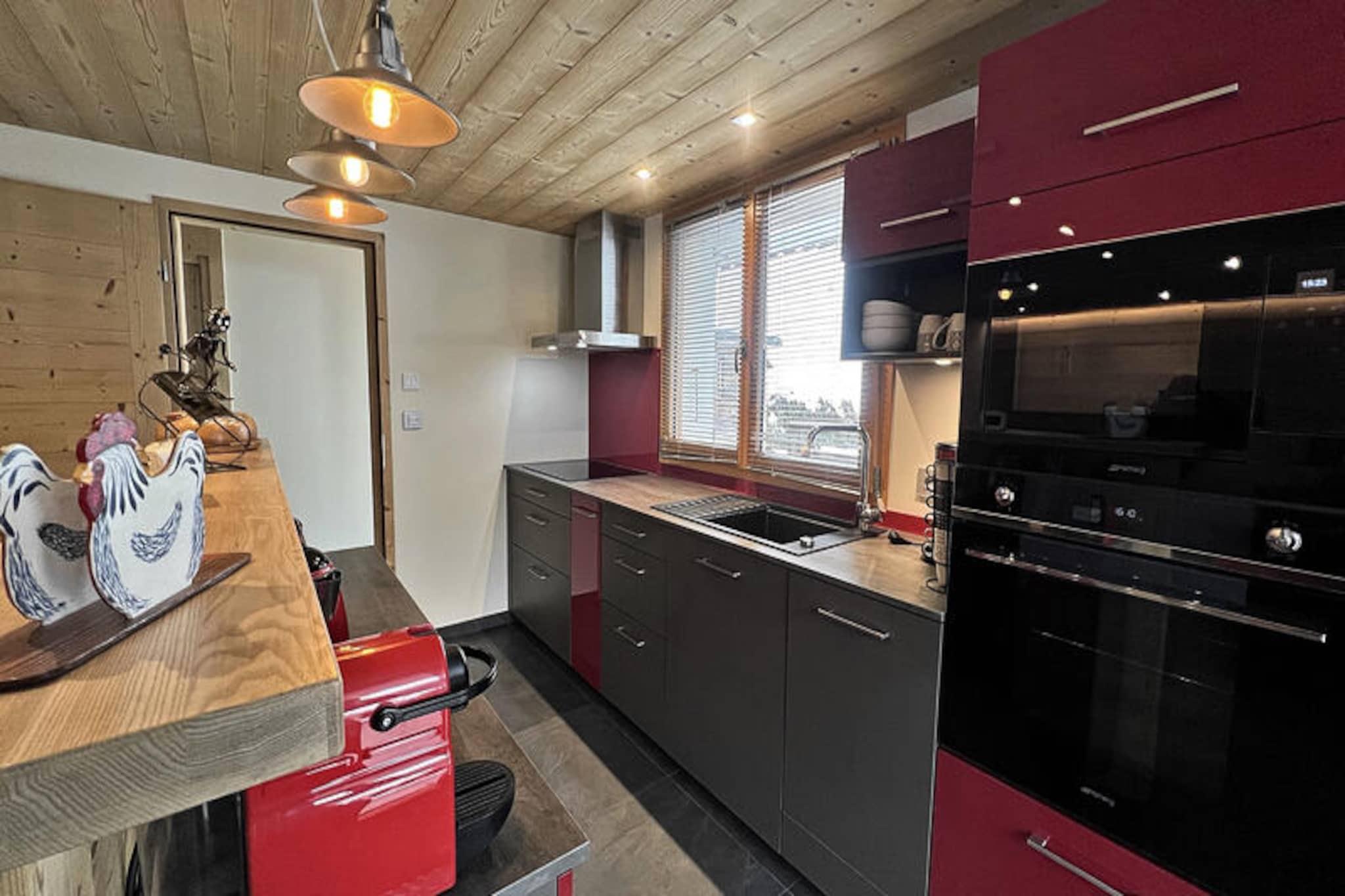 Ejendommen tilbyder sammen med sit rummelige og moderne design komfortabel indkvartering for op til 6 personer. Lejligheden har 3 velindrettede soveværelser, heraf 2 med dobbeltsenge og et med 2 enkeltsenge. Stuen indeholder to konvertible sofaer, hvilket skaber ekstra soveplads, hvis det er nødvendigt. Gæsterne kan slappe af i loungeområdet, mens de nyder fjernsynet, og få adgang til den sydvestvendte balkon, som er møbleret med et barbord og stole til udendørs spisning. Lejligheden er ikke-ryger, og kæledyr er ikke tilladt. Valgfri tjenester såsom leje af sengetøj, slutrengøring og babyudstyr er tilgængelige mod et ekstra gebyr. Wi-Fi-adgang er inkluderet, hvilket gør det nemt at holde forbindelsen. Denne lejlighed har en bekvem beliggenhed kun 600 meter fra Crêt du Merle-pisterne, ideel for skientusiaster. Hytten ligger også 1,4 km fra centrum af landsbyen, hvor gæsterne kan udforske lokale butikker og restauranter. For ekstra bekvemmelighed er der shuttletjenester i nærheden, hvilket giver nem adgang til pisterne og de omkringliggende områder. Med en fantastisk udsigt over Massif de Beauregard og Massif de l'Étale tilbyder ejendommen fredelige rammer for både vinter- og sommerophold med muligheder for vandreture og andre udendørs aktiviteter. De nærmeste bus- og togstationer ligger inden for kort afstand, og området er tilgængeligt i bil, med privat parkering til rådighed ved boligen. Lejlighedens køkken er fuldt udstyret til at imødekomme alle dine madlavningsbehov, og byder på en 4-brænder keramisk kogeplade, ovn, mikroovn, køleskab og opvaskemaskine. Yderligere faciliteter inkluderer et raclette- og fonduesæt, perfekt til at nyde traditionelle bjergmåltider. En vaskemaskine er også tilgængelig på badeværelset for ekstra bekvemmelighed. Gæsterne har adgang til en privat garage og et skiskab til opbevaring af udstyr. Lejligheden opvarmes individuelt, og forsyninger som el og vand er inkluderet, hvilket sikrer et behageligt ophold hele året rundt.