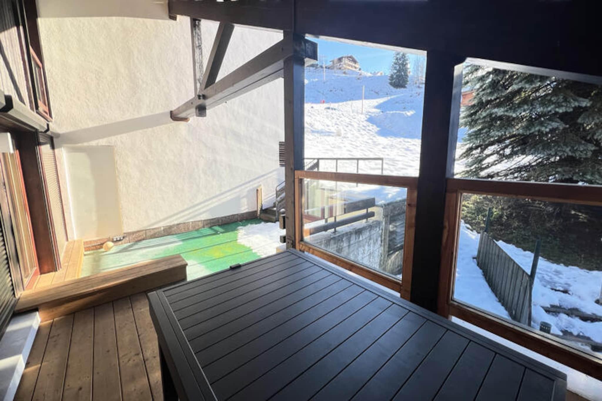 Denne rummelige lejlighed, ideel til 8 til 10 personer, tilbyder 104 m² boligareal plus en 28 m² mezzanin beliggende i hjertet af La Clusaz. Beliggende i en bolig med fem lejligheder, er det tæt på butikker, daginstitutioner og familievenlige aktiviteter som skøjtebanen. Lejligheden ligger en kort gåtur fra Crêt du Merle stoleliften og tæt på langrend ved Beauregard gondolen. Stueetagen har en stor stue med sovesofa, lænestole, tv og en hyggelig ethanolpejs. Den 32,8 m² store terrasse med havemøbler giver et afslappende udendørsområde. Kæledyr er ikke tilladt, og et bankdepositum på EURO 1000 er påkrævet. Lejligheden indeholder tre soveværelser, med et soveværelse med dobbeltseng og to enkeltsenge i det første og andet værelse. Soveværelset på mezzaninen har også to enkeltsenge og et brusebadeværelse med toilet. Der er to badeværelser, det ene med badekar, bruser, dobbelt håndvask og hårtørrer, og det andet med bruser, håndvask og hårtørrer. Til lejligheden hører også et vaskerum med vaskemaskine, tørretumbler og strygeudstyr. Det er tilgængeligt for personer med nedsat mobilitet. Valgfri tjenester såsom leje af sengetøj, slutrengøring og babyudstyr er tilgængelige mod et ekstra gebyr. Yderligere faciliteter inkluderer gratis Wi-Fi, individuel el-opvarmning og væsentlige tjenester såsom et velkomstsæt, skiskab med støvletørrer og en privat garage (til et køretøj op til 1,87 m i højden). Et turistpas, der giver rabat på sommeraktiviteter, er tilgængeligt. Leje af sengetøj, babyudstyr og rengøring skal bestilles på forhånd.