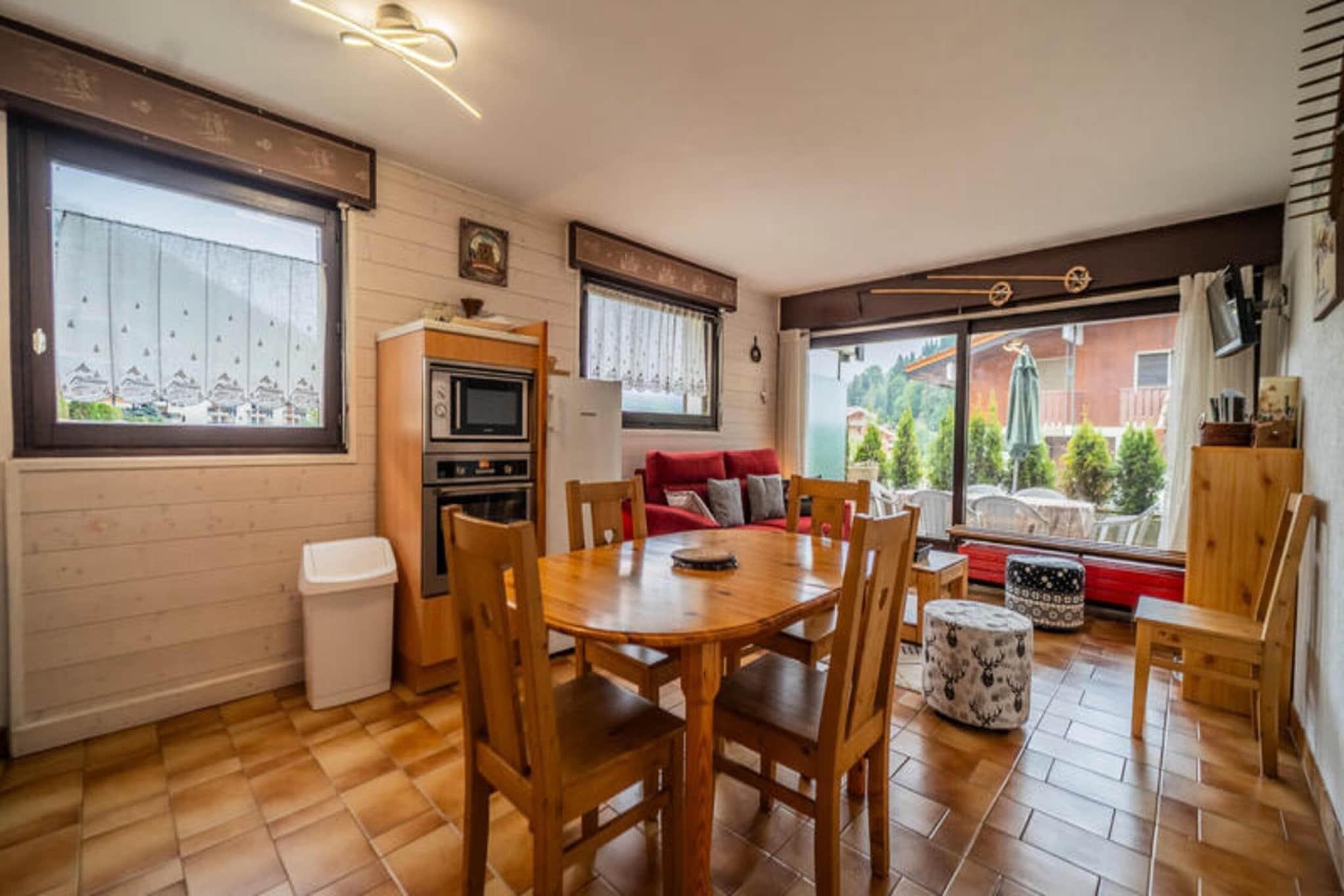 Denne charmerende studiohytte på 33 m² er beliggende i den øvre del af landsbyen ved "Les Granges", kun 50 meter fra Bossonnet-skiløjperne og ESF-mødestedet. Med nem adgang til både pisterne og nærliggende butikker er denne bolig perfekt til vinterentusiaster. Lejligheden er beliggende i den hævede stueetage og har en sydvendt terrasse, ideel til at nyde udsigten over bjergene og boligen. Under dit ophold kan du nyde nem adgang til pisterne samt det nærliggende vandområde (lukket for renovering i sommeren 2024). Den charmerende landsby byder på en række butikker, restauranter og afterski-aktiviteter. Lejligheden kan rumme op til 4 gæster, og byder på en kahyt med to køjesenge (øverste køje kun for børn over 6 år) og en lys stue med en 2-personers rapido sovesofa, fjernsyn og et fransk vindue, der fører til terrassen. Det åbne køkken er fuldt udstyret med Senseo kaffemaskine, keramiske kogeplader, ovn, mikroovn, køleskab, fryser og opvaskemaskine. Badeværelset har badekar, håndvask og toilet. Yderligere faciliteter omfatter centralvarme, skiskab, parkeringsplads og mulighed for at leje lagner og linned. Wi-Fi kan lejes (begrænset lager). Boligen ligger 34 km fra SNCF-togstationen og 800 m fra busstationen Book dit ophold hos i dag!