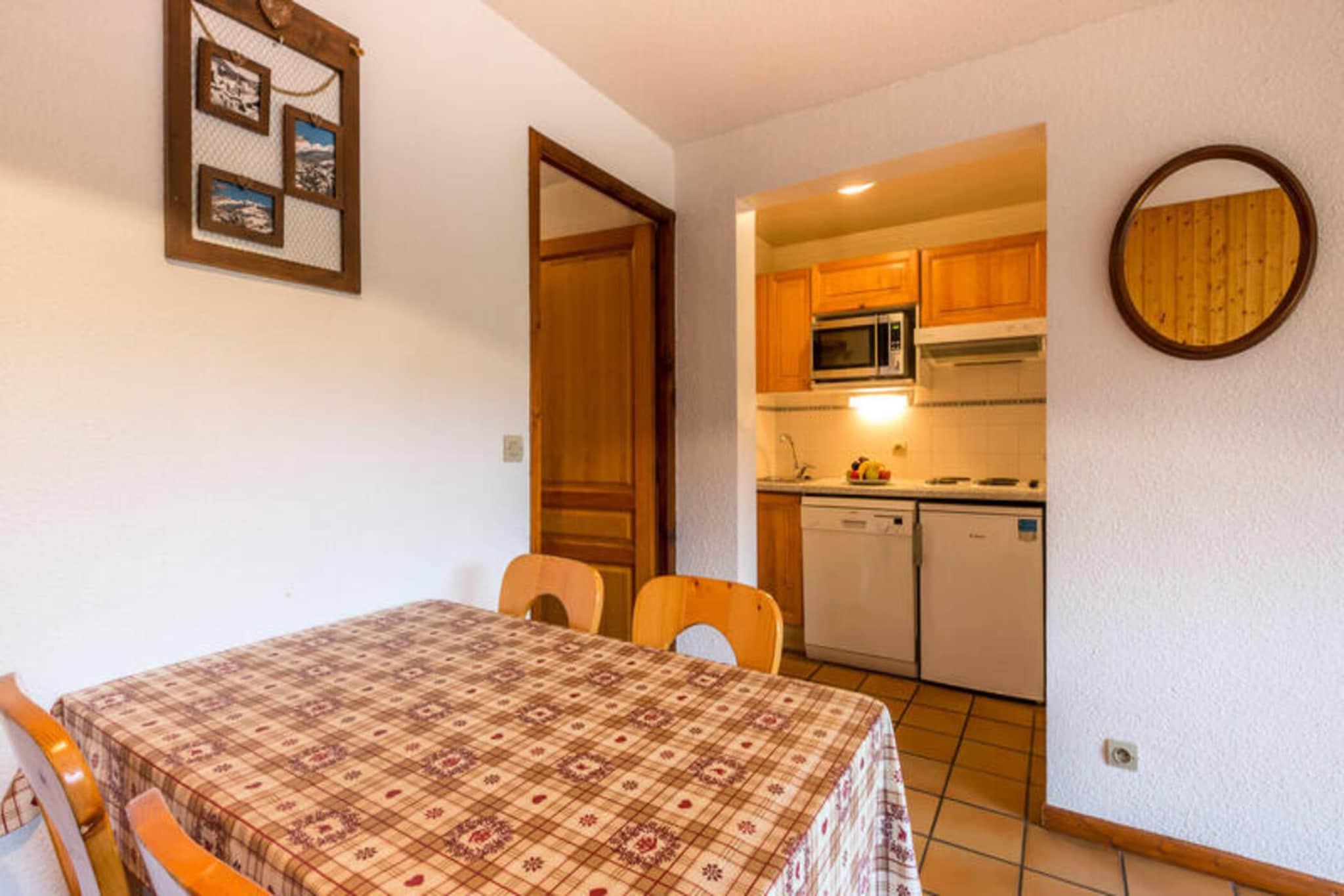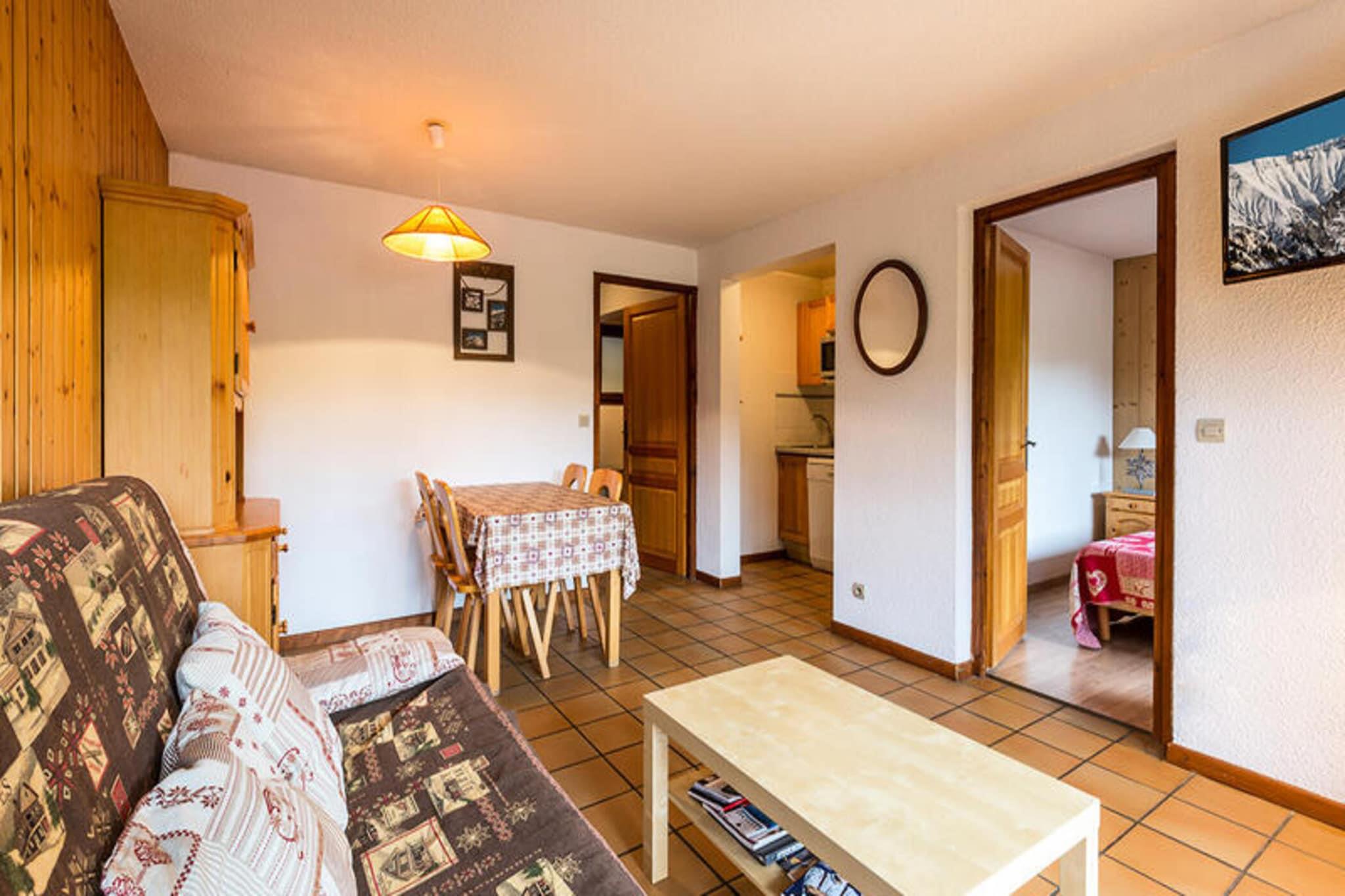 Ejendommen er sammen med dens fredelige og naturskønne omgivelser ideel til små familier eller grupper, og tilbyder et komfortabelt feriehus for 4 til 6 personer. Lejligheden indeholder et soveværelse med dobbeltseng, et separat soveværelse med køjesenge (øverste køje er begrænset til børn over 6 år) og en stue med en sovesofa til to. Den sydvendte balkon, som giver en fantastisk udsigt over Aravis-bjergene, er et nøgleelement i boligarealet, komplet med havemøbler. Kæledyr er tilladt efter forudgående godkendelse fra bureauet, og et tillæg kan forekomme. Yderligere tjenester omfatter muligheden for at leje lagner og linned, mens Wi-Fi ikke er inkluderet, men kan lejes med et begrænset lager af kasser. Der er også et skiskab og en garageplads, hvilket sikrer bekvemmelighed for vinter- og sommergæster. Boligen ligger kun 150 meter fra Bossonnet-skiløjperne, med nem adgang til ESF-mødestedet, hvilket gør det til et fremragende valg for skientusiaster. Den fantastiske udsigt over Aravis-bjergene tilføjer lokationen ved beliggenheden, mens de nærliggende butikker imødekommer gæsternes daglige behov. Busstationen ligger kun 1 km væk, og den nærmeste SNCF-togstation ligger 33 km fra ejendommen. Denne bekvemme beliggenhed giver også besøgende mulighed for at nyde den rolige atmosfære i området, mens de stadig er inden for rækkevidde af populære aktiviteter i den omkringliggende region. I sommeren 2024 vil der være anlægsarbejder i gang på det nærliggende vandområde, hvilket kan påvirke adgangen til svømmehallen, men boligen er stadig et godt udgangspunkt for at udforske området. Lejligheden er udstyret med et funktionelt køkken, herunder en elektrisk kogeplade, en kombineret mikroovn og ovn, et køleskab og en opvaskemaskine, så gæsterne kan tilberede deres egne måltider. Stuen er hyggelig og har et tv, hvilket gør det til et behageligt sted at slappe af efter en dag med skiløb eller vandreture. Badeværelset er udstyret med badekar, og der er separat toilet for ekstra bekvemmelighed. Ejendommen opvarmes med elektrisk gulvvarme, hvilket giver et varmt og behageligt miljø. Garagepladsen, som er let tilgængelig, tilbyder sikker parkering for gæster, der rejser i bil. Disse faciliteter sikrer et praktisk og behageligt ophold for besøgende hele året rundt.