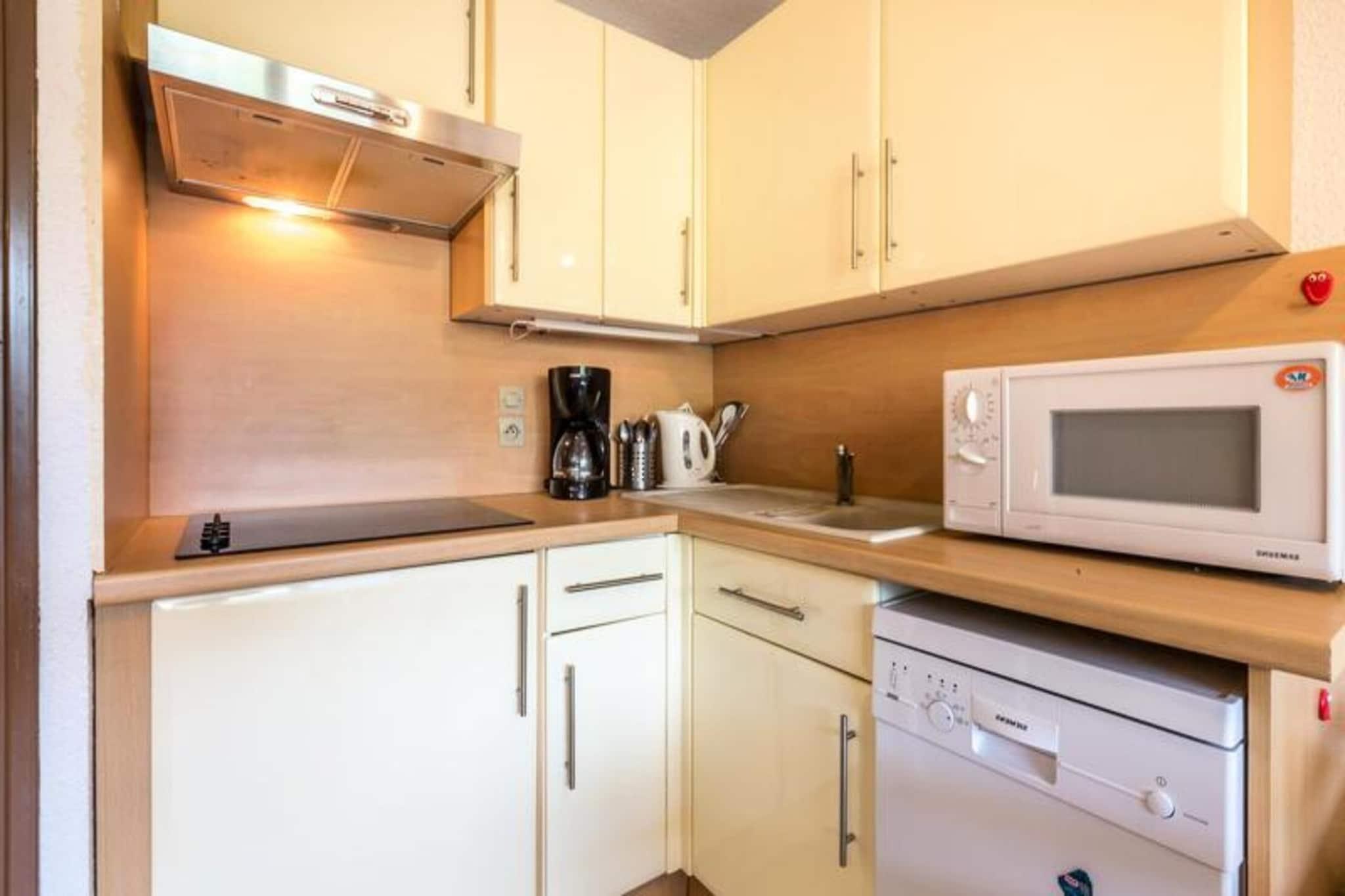 En dejlig ejendom, der tilbyder et hyggeligt alpint tilflugtssted, denne studiolejlighed er ideel til op til fire gæster. Det har et soveværelse med to køjesenge (begrænset til børn under seks på den øverste køje) og en stue med en komfortabel sovesofa, tv og dvd-afspiller. Den sydvendte balkon giver en betagende udsigt over Aravis-bjergene og er møbleret til udendørs afslapning. Lejligheden inkluderer bekvemt et skiskab, garage og mulighed for at leje lagner og sengetøj. Kæledyr er velkomne med forudgående godkendelse og et ekstra gebyr, hvilket sikrer et alsidigt ophold til forskellige behov. Ejendommen er perfekt beliggende, kun 250 meter fra Bossonnet-skiløjperne og ESF-mødestedet, med nærliggende butikker og et skibusstoppested for nem adgang til pisterne. Lejlighedens nærhed til de omkringliggende faciliteter gør den til et praktisk valg for skientusiaster og besøgende, der ønsker at udforske det pulserende alpine område. Uanset om du er på eventyr på pisterne eller slentrer gennem den maleriske lokalitet, er denne bolig ideelt beliggende for både afslapning og bekvemmelighed. Yderligere funktioner omfatter et fuldt udstyret køkken med keramisk kogeplade, mikroovn, køleskab og opvaskemaskine, suppleret med et badeværelse med badekar og separat toilet. Lejligheden blev bygget i 1989 og kombinerer moderne bekvemmeligheder med en fredelig atmosfære. Dette charmerende studie leverer den perfekte balance mellem komfort og praktisk, hvilket gør det til en fremragende base for en mindeværdig alpine flugt.