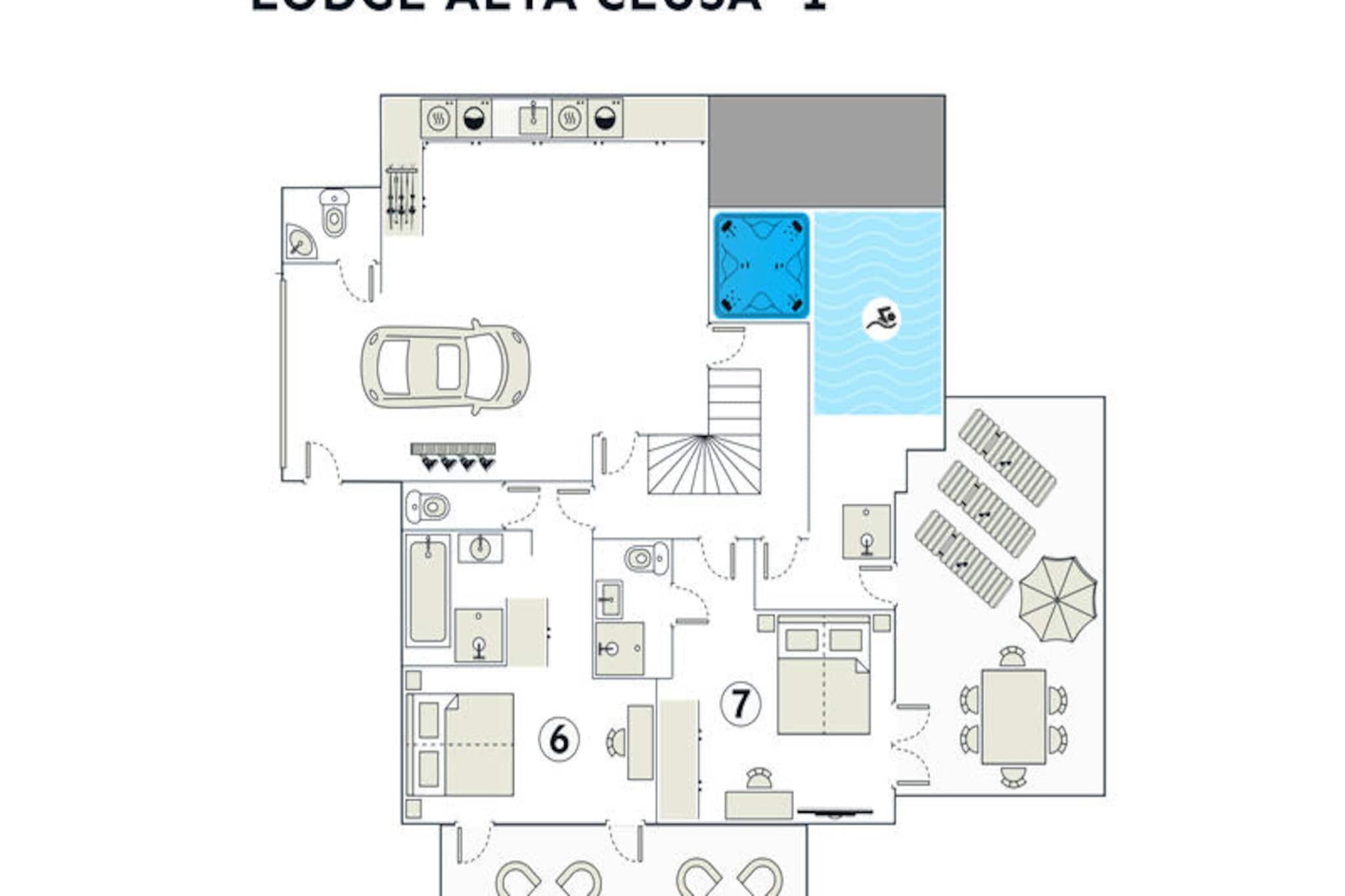 Højt over den maleriske landsby La Clusaz tilbyder Lodge Alta Clusa et luksuriøst alpint tilflugtssted ulig noget andet. Med sine 1.187 meter over havets overflade bader denne prestigefyldte 5-stjernede hytte i sollys takket være sin sydvendte beliggenhed, hvilket skaber en varm og indbydende atmosfære. Forestil dig at vågne op til en betagende udsigt over de omkringliggende tinder, træde ud på den store 85 m² store panoramaterrasse og indånde den friske bjergluft, mens du planlægger din dag i hjertet af de franske alper. Uanset om du søger eventyr eller ro, er denne hytte den perfekte ramme for uforglemmelige øjeblikke. \n\nLodge Alta Clusa strækker sig over imponerende 375 m² fordelt på fire etager og har komfortabel plads til op til 15 gæster i sine syv smukt indrettede soveværelser, hver med eget badeværelse. Det åbne køkken er udstyret med førsteklasses apparater, herunder en Nespresso-kaffemaskine og raclette-sæt, ideelt til at tilberede solide alpine måltider. Spisestuen med sit store bord til 15 personer og de hyggelige opholdsrum med pejs og SONOS-lydsystem er perfekte til at samles med dine kære. For afslapning kan du nyde den opvarmede indendørs pool med modstrømssvømning eller spille et livligt bordfodboldspil. Udenfor inviterer den 1.000 m² store have og sommergrillområdet dig til at nyde Alpernes naturlige skønhed. Lodge Alta Clusa har en bekvem beliggenhed kun 1,5 km fra pisterne og landsbyens centrum, med en skibus kun 40 meter væk, og sikrer nem adgang til skiløb i verdensklasse og charmerende lokale faciliteter. Om sommeren kan du udforske vandrestier, mountainbikeruter og de fredfyldte alpine landskaber, der omgiver dig. La Clusaz' pulserende landsbyliv med butikker, restauranter og skiskole ligger kun få minutter væk og tilbyder en perfekt blanding af eventyr og kultur. Uanset om du er her for at sno dig gennem uberørte pister, slappe af ved pejsen eller nyde de franske alpers skønhed, lover Lodge Alta Clusa et virkelig exceptionelt ophold. Lad denne elegante hytte være dit hjem væk fra hjemmet, hvor hver eneste detalje er designet til at skabe dyrebare minder.