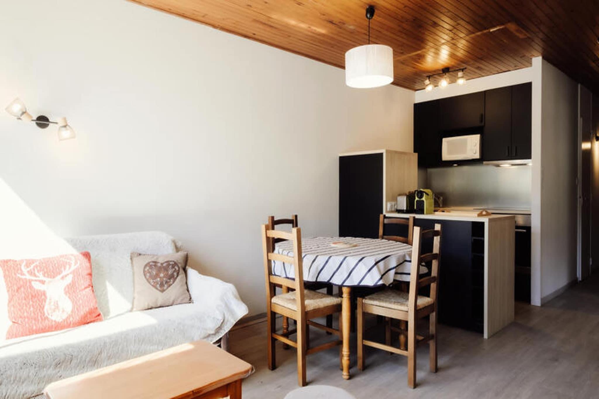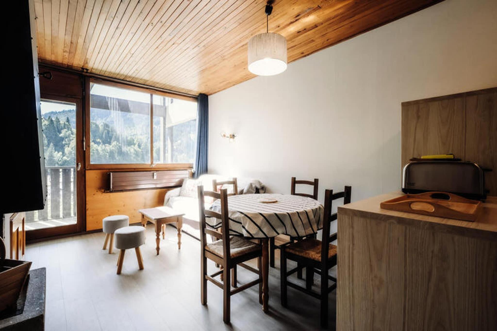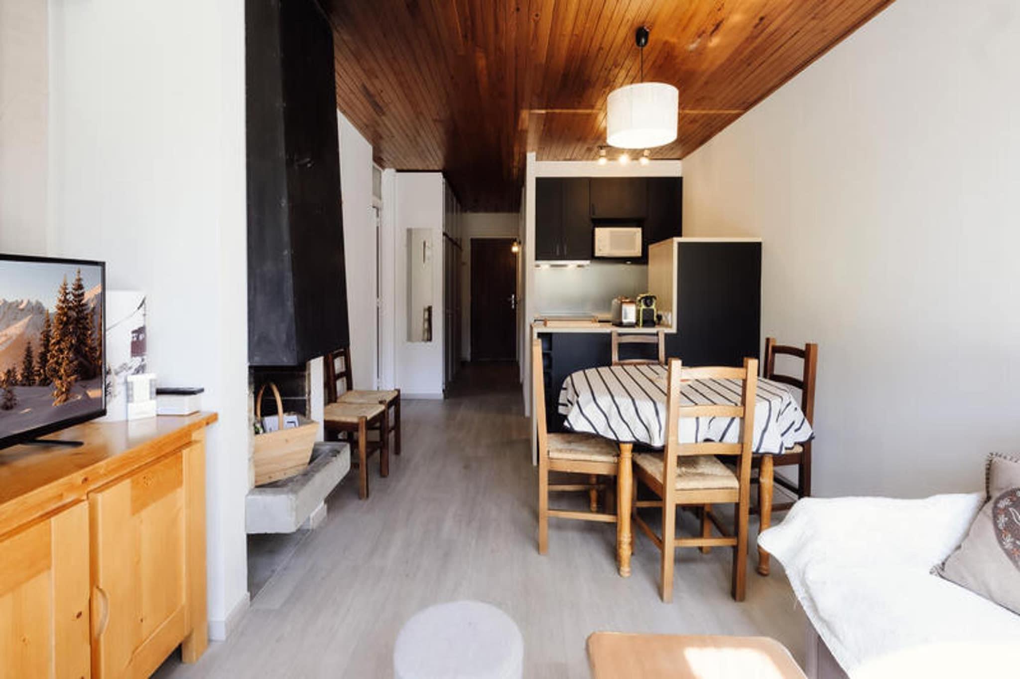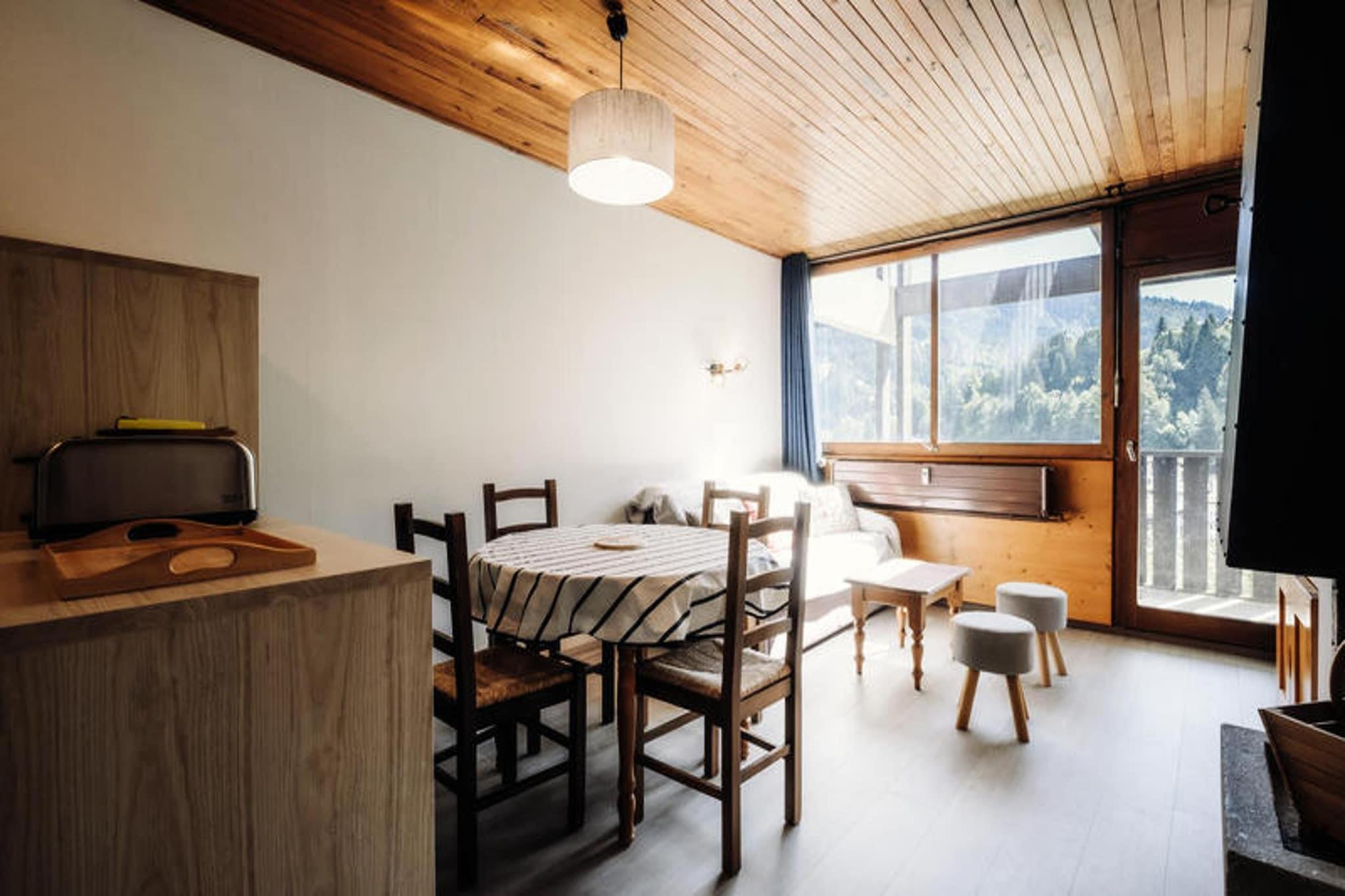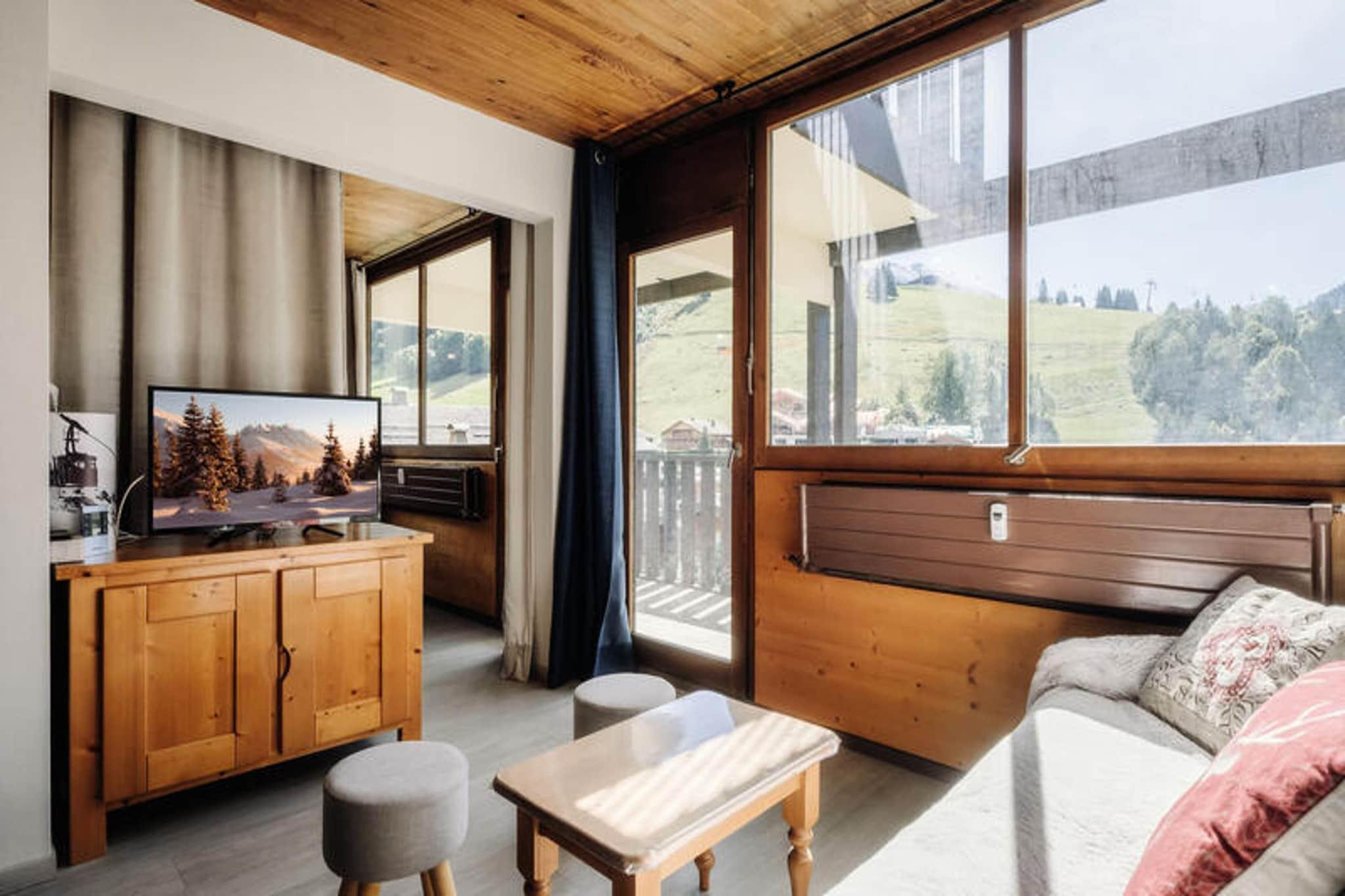 Denne 3-stjernede bolig er beliggende i den øvre landsby, kun 330 meter fra Telemix- og Bossonnet-stolelifterne, som tilbyder nem adgang til skiløjperne og skiskolerne. Boligen ligger også 100 meter fra lokale butikker, med en shuttle-stop 20 meter væk om vinteren og 200 meter væk om sommeren. Lejligheden er velegnet til op til 6 rejsende med et samlet areal på 46 m². Det omfatter et soveværelse med dobbeltseng og køjesenge, et sovehjørne med endnu en dobbeltseng, en stue med en dekorativ pejs, fladskærms-tv og en sydvestvendt balkon med naturskøn udsigt. Lejligheden er ikke-ryger, og kæledyr er ikke tilladt. Lejligheden er veludstyret med tekøkken, herunder køleskab, mikroovn, ovn, induktionskomfur, opvaskemaskine og Nespresso-maskine. Stuen og soveværelserne er rummelige og tilbyder komfortabel indkvartering. Gæsterne kan nyde et sydvendt fransk vindue med udgang til altanen, mens badeværelset har en håndklædetørrer. Lejligheden tilbyder sengetøj, dyner og pudebetræk. Et skiskab er tilgængeligt for nemheds skyld, og centralvarme sikrer et behageligt ophold. Ideelt beliggende for udendørsentusiaster, er boligen beliggende 33 km fra Annecy SNCF-togstationen og kun 900 meter fra La Clusaz-busstationen. Bemærk venligst, at lejligheden ikke er tilgængelig for personer med nedsat mobilitet, og der kræves et depositum på 500 euro.