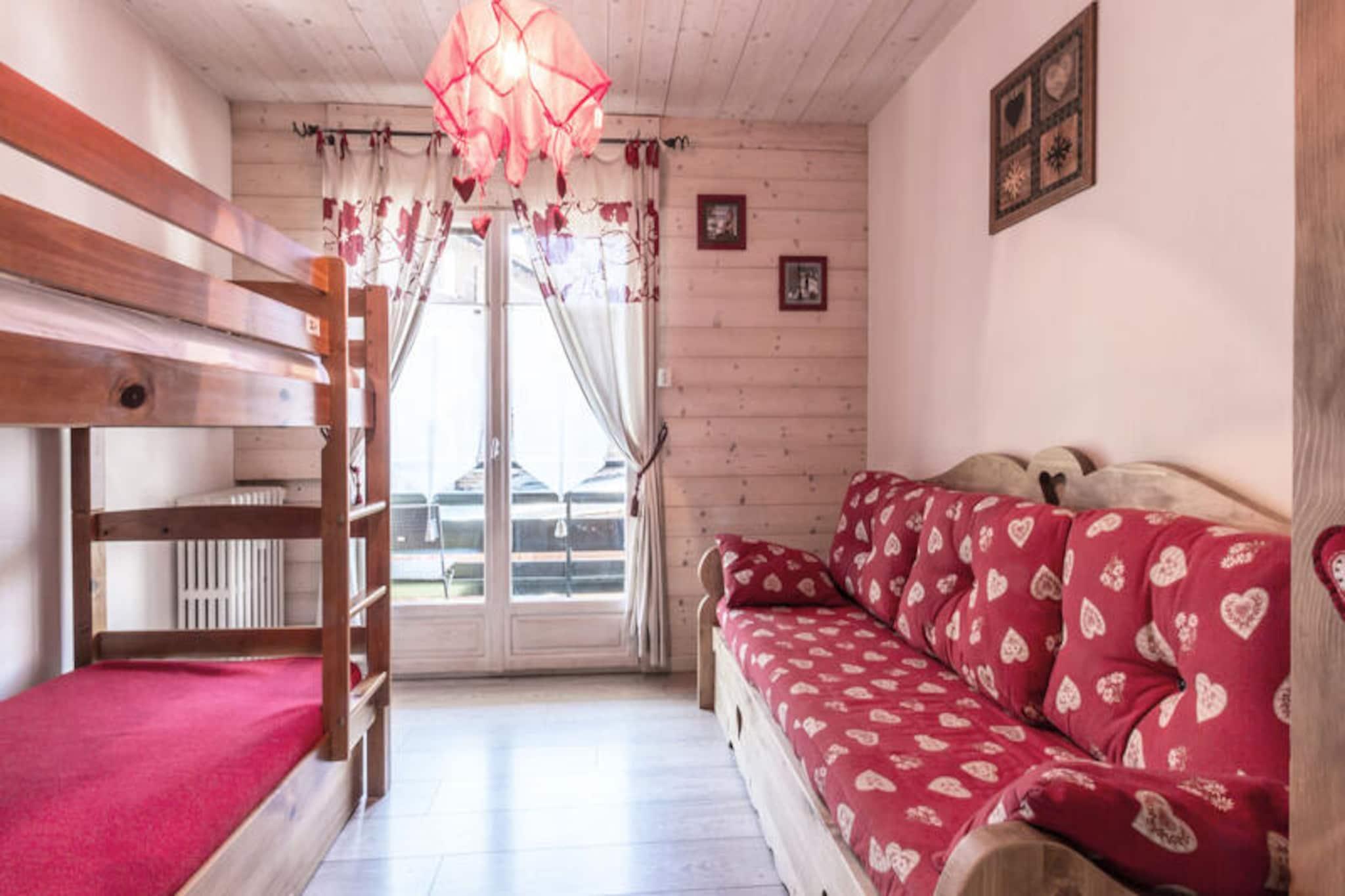 Denne charmerende 3-værelses lejlighed tilbyder både komfort og bekvemmelighed for op til 5 rejsende. Beliggende kun 350 meter fra Bossonnet Telemix, stoleliften og skiløjperne, er det ideelt for skientusiaster. Boligen er også tæt på butikker og et shuttlestop, hvilket gør adgangen til alle resortets faciliteter let. Nærliggende attraktioner omfatter det pulserende landsbycenter, vinbar og malerisk udsigt over bjergene. Boligen ligger også kun 800 meter fra busstationen for nem adgang til andre nærliggende destinationer. Den 67 m² store lejlighed er beliggende i stueetagen med en vestvendt altan, der giver en dejlig udsigt over det omkringliggende område. Indvendigt har lejligheden et veludstyret amerikansk køkken med moderne apparater, herunder induktionskomfur, ovn, mikroovn, opvaskemaskine og en Nespresso kaffemaskine. Den rummelige stue har fladskærms-tv og dvd-afspiller. Der er to soveværelser: et med dobbeltseng og et andet med enkeltseng, udtræksseng og køjesenge (øverste seng er ikke egnet til børn under 6 år). Lejligheden byder også på et badeværelse med dobbelt håndvask, bruser, vaskemaskine og separat toilet. Et skiskab og opvarmet skiopbevaring er til rådighed for din bekvemmelighed.