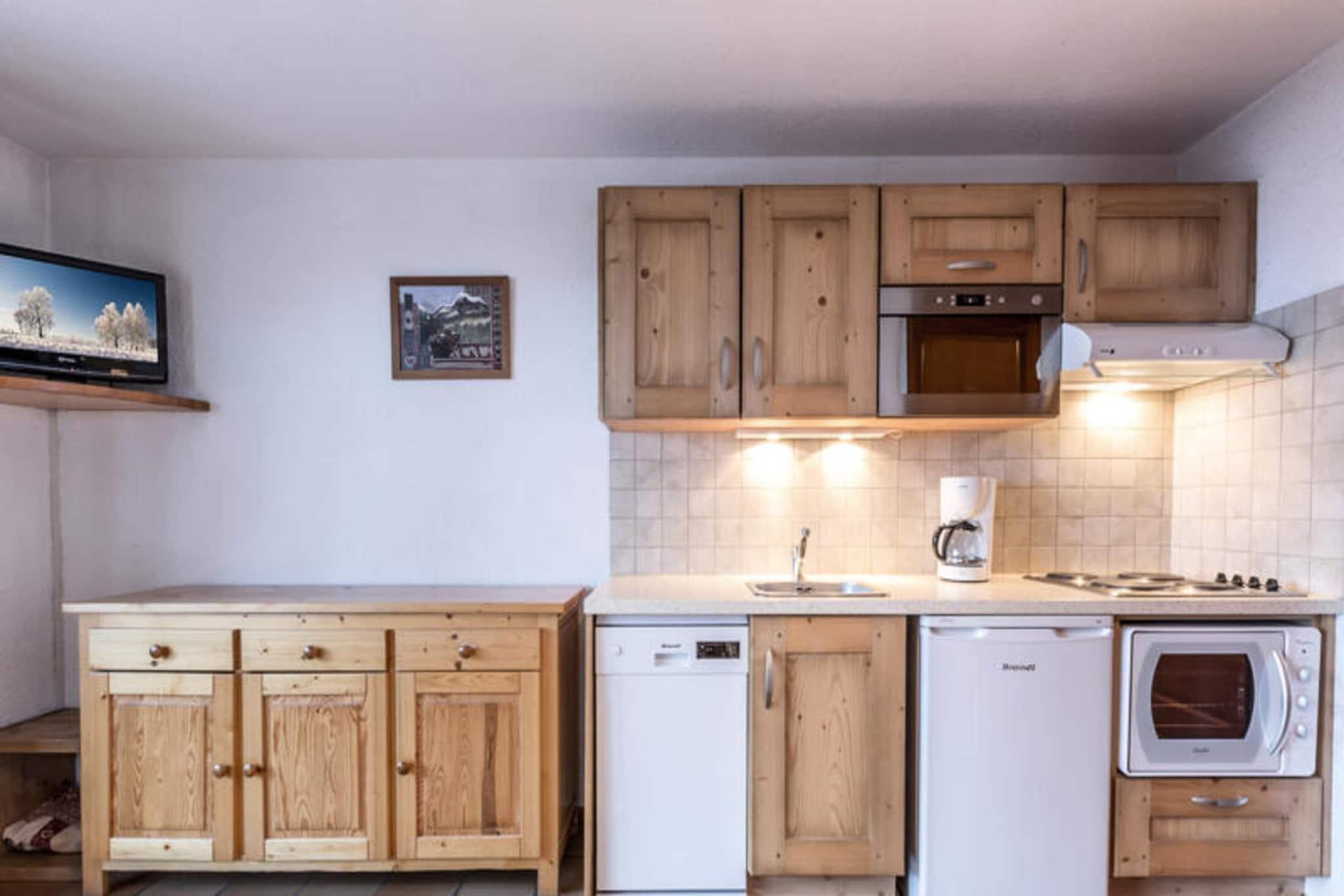 Beliggende på toppen af ??landsbyen er dette 26 m² store studie med et bjerghjørne ideel til op til 4 rejsende. Beliggende kun 250 meter fra Bossonnet Telemix stoleliften og skiløjperne, tilbyder boligen nem adgang til skiløb og snowboarding. Det har også en shuttle-stop foran om vinteren og er en kort gåtur fra butikkerne og skiskolerne. Studiet ligger i den hævede stueetage og har en sydvendt balkon med smuk udsigt over feriestedet og bjergene. Det omfatter en BZ-sovesofa, en enkeltseng og en skuffeseng samt grundlæggende køkkenfaciliteter såsom køleskab, mikroovn, ovn, elektrisk kogeplade og opvaskemaskine. Lejligheden indeholder et badeværelse med badekar, et separat toilet og et praktisk tekøkken. Stuen er lys med fladskærms-tv og store vinduer, der byder på naturskøn udsigt. Sengetøj, inklusive dynebetræk, lagner og pudebetræk, er til rådighed, hvilket gør det til et problemfrit ophold. Ejendommen er ikke-ryger, og kæledyr er ikke tilladt. Det er ikke tilgængeligt for bevægelseshæmmede. Yderligere faciliteter inkluderer et skiskab, en udvendig garageplads og elektrisk opvarmning med gulvvarme for komfort.