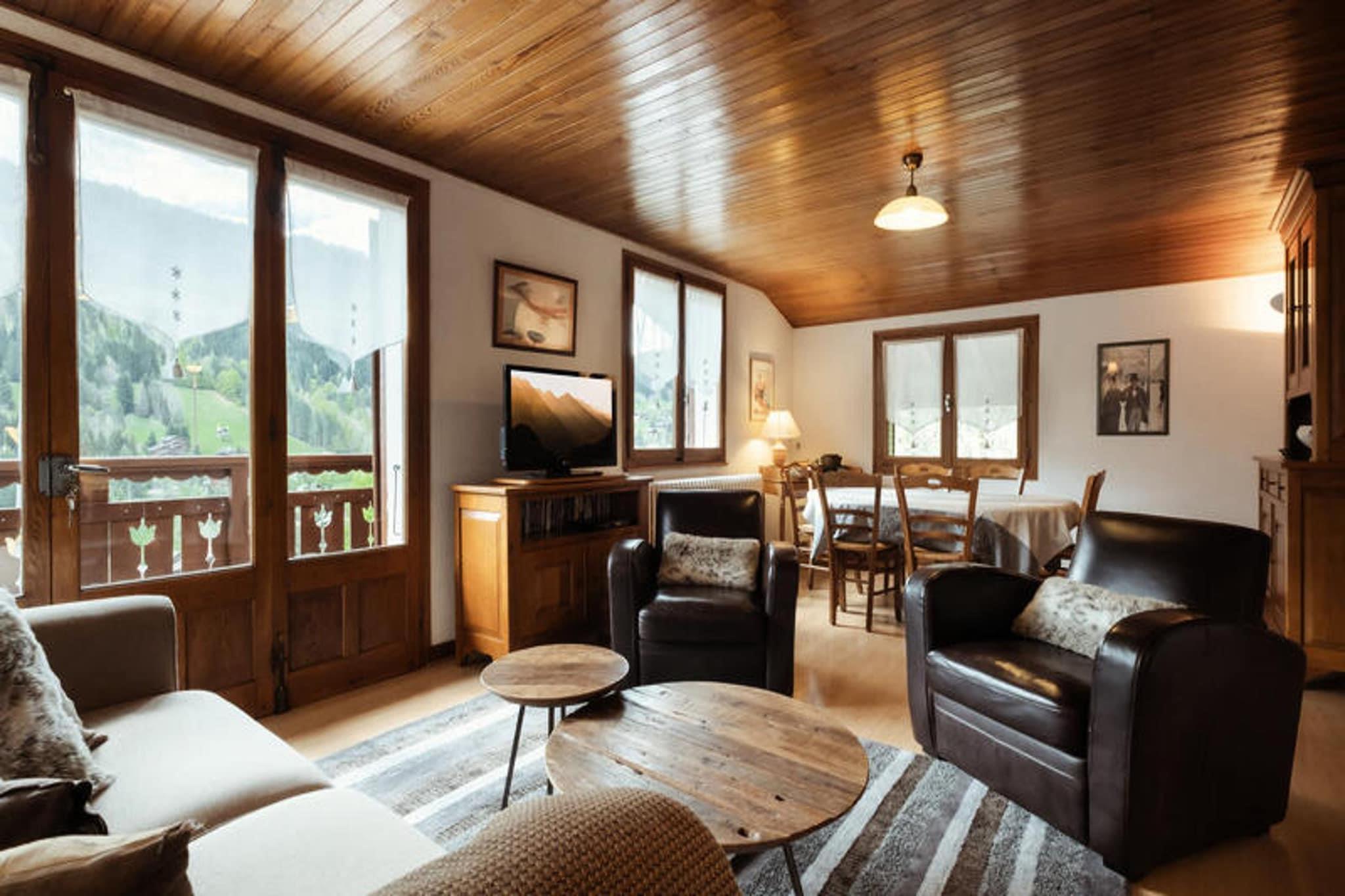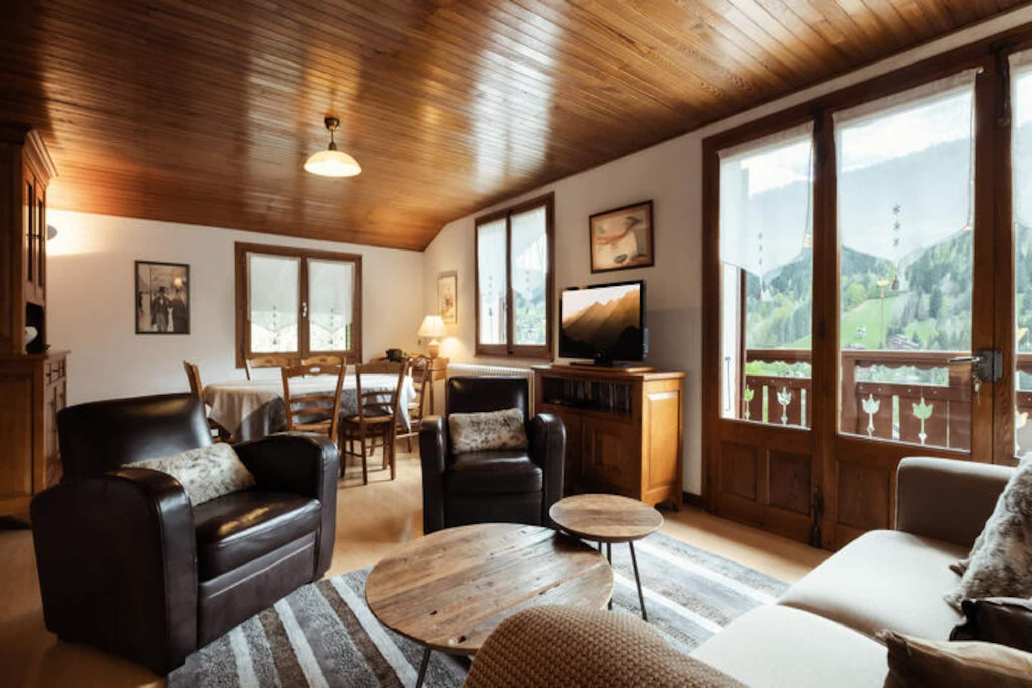 Denne rummelige lejlighed på 80 m² i hjertet af Aravis-dalen tilbyder et perfekt tilflugtssted for op til 6 rejsende. Lejligheden ligger på 1. sal i en bolig bygget i 1963 og har en vestvendt balkon med smuk udsigt over Col des Aravis-vejen og de omkringliggende bjerge. Indkvarteringen omfatter to hyggelige soveværelser: det ene med en dobbeltseng og en håndvask, og det andet med to sæt køjesenge (bemærk venligst, øverste senge er ikke egnet til børn under 6 år). Stuen er generøs størrelse med spiseplads, loungeområde og fladskærms-tv, hvilket skaber et behageligt sted at slappe af efter en dag med udendørs eventyr. Beliggende kun 500 meter fra Ruade-skiløjperne og en kort shuttle-tur til landsbyens centrum (1,8 km), er denne lejlighed perfekt til vintersportsentusiaster. I de varmere måneder kan du nyde vandreture og udforske det fantastiske alpine landskab. Den charmerende landsby La Clusaz, kun en kort afstand, byder på lokale butikker, restauranter og en række rekreative aktiviteter. Det fuldt udstyrede køkken har køleskab, glaskeramisk komfur, ovn, mikroovn, opvaskemaskine og Nespresso-maskine, hvilket gør det ideelt til at tilberede måltider. Lejligheden har også et brusebad med en håndklædetørrer radiator og et separat toilet. Gæsterne kan drage fordel af bekvemme faciliteter såsom en vaskemaskine, ski- og cykelopbevaring og internetadgang. Parkering er tilgængelig på stedet for ekstra bekvemmelighed.