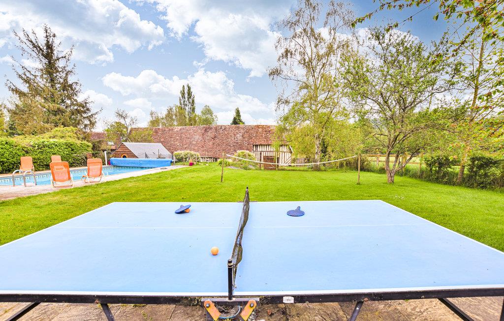 Nyd en vidunderlig pause fra den travle hverdag i dette smukke gamle bondegård. Kom med familien og slap af midt i de fantastiske naturlige omgivelser. Det charmerende bindingsværkshus tilbyder en hyggelig atmosfære indenfor. Der er masser af plads til, at alle kan finde deres yndlingssted. Men udendørsområdet er særligt indbydende. Feriegæster i alle aldre kan have en vidunderlig tid her. Snup et spil et spil badminton eller bordtennis med jeres venner, inden I tager en forfriskende dukkert i den store pool og derefter tørrer jer i solen på græsplænen. Ren afslapning venter.