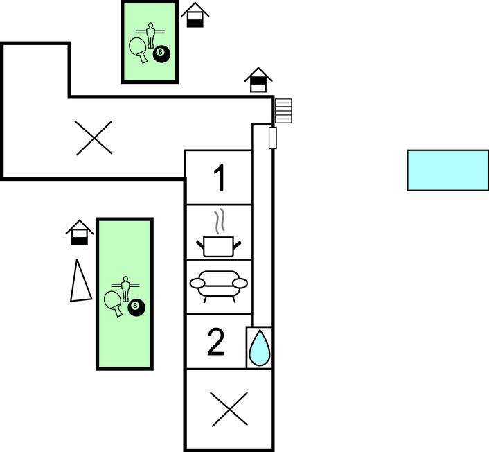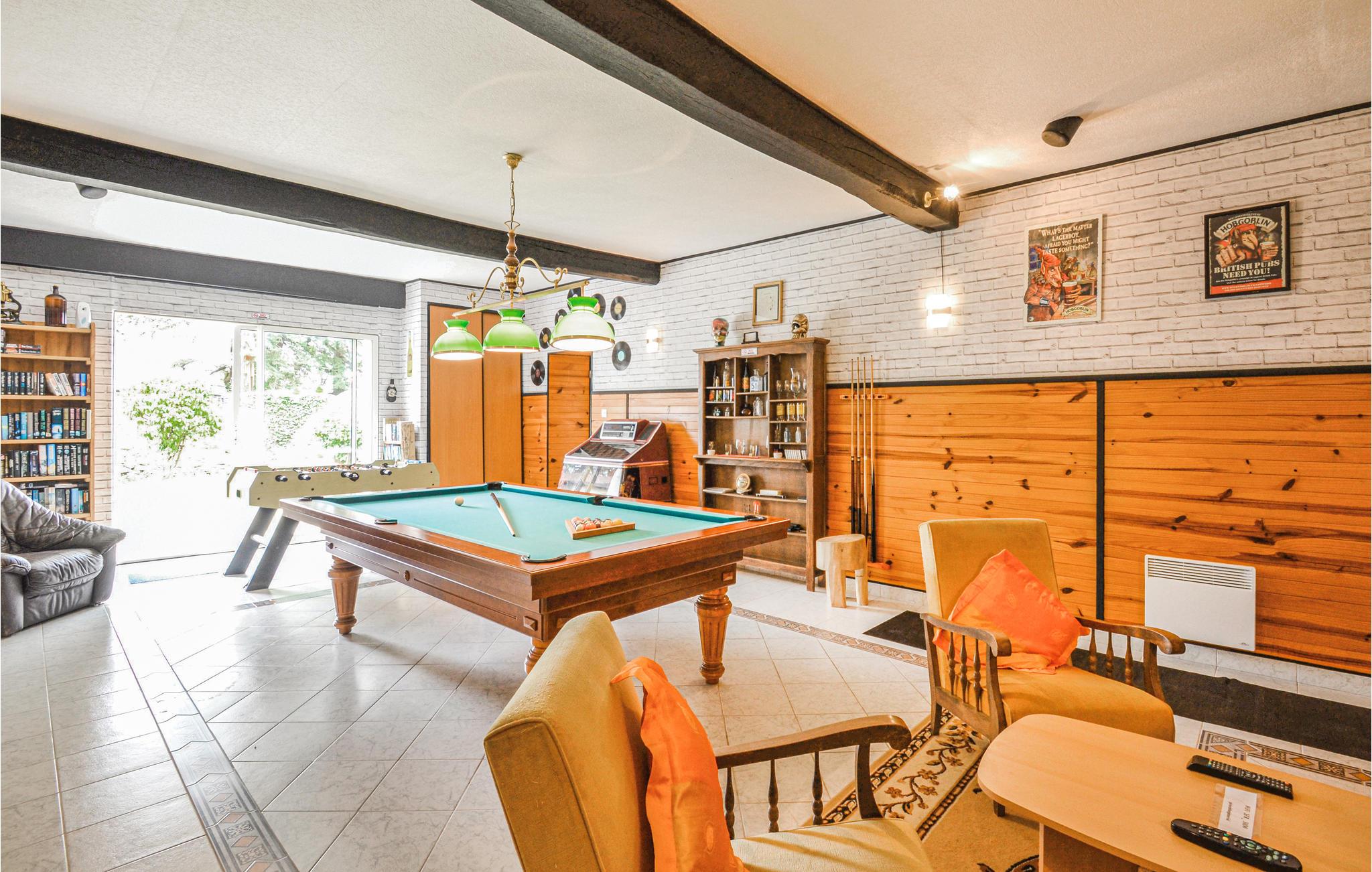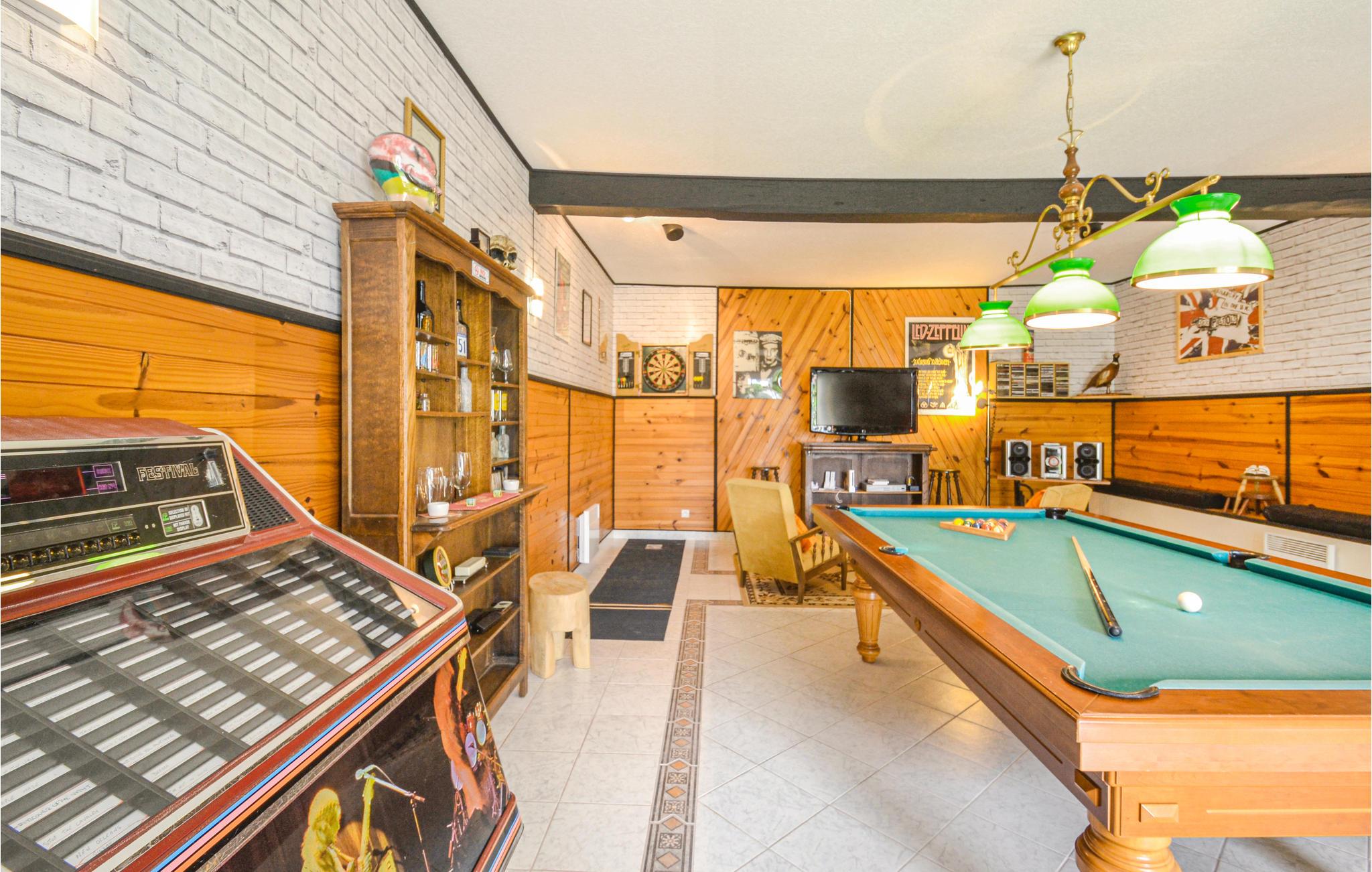 Jeres ferielejlighed tilbyder masser af plads, hvilket gør den ideel til familier. Gør jer til rette i opholdsstuen, der er møbleret med sofa, lænestole og tv. Brug det smukke køkken med et praktisk møbleret spisebord til at tilberede jeres måltider i en hyggelig atmosfære. Oplev de to store aktivitetsrum i stueetagen. Spil billard, bordtennis, bordfodbold eller dart, og se samlingen af bøger, cd'er og dvd'er. Tilbring en varieret tid uanset vejret og nyd en aktiv fritid.