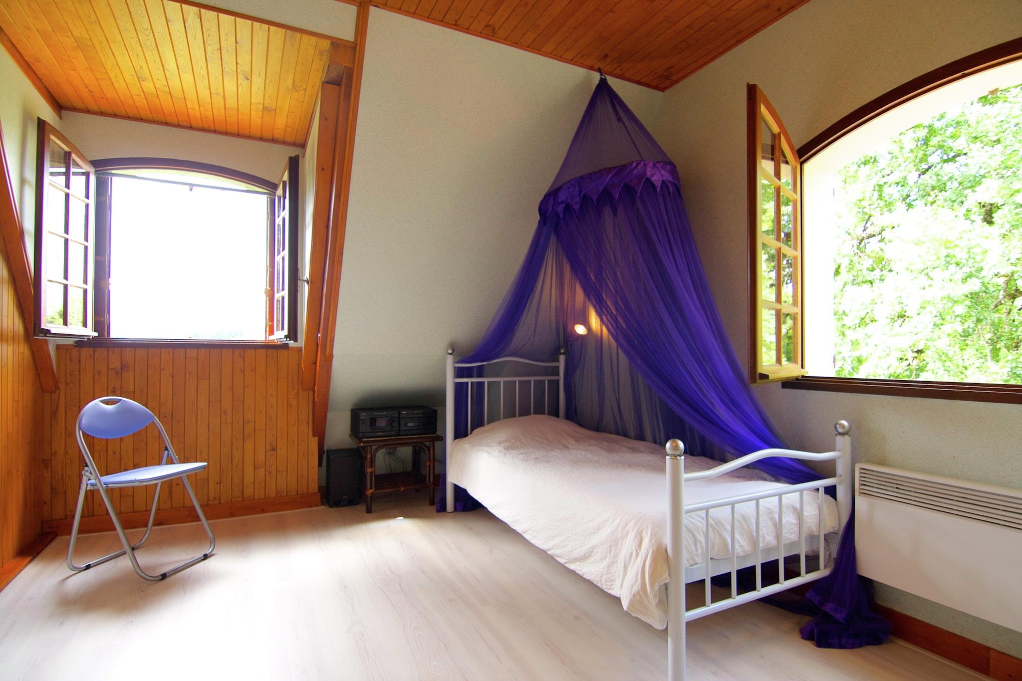 Dette dejlige landlige sommerhus ligger på en bakke og er omgivet af en have på 9000 m2. Der er en privat swimmingpool i haven (tilbyder privatlivets fred). Feriehjemmet ligger mellem Limoges, hovedstaden i Limousin-regionen, med sin store katedral og mange butikker og den smukke middelalderlige by Périgueux. Det er et dejligt område med et landskab af rullende bakker og enge omgivet af skove. Den storslåede gamle kloster på bredden af floden Dronne er et besøg værd, og du kan kano der. Byen Châlus ligger 15 km væk. Det har en gammel fæstning og en go-cart spor. Søen ved St. Saud, 15 km væk, er god til svømning. Byerne St Jacques og Tiviers er begge 20 km væk. Der er markeder på lørdag morgen med regionale produkter. Dette sommerhus og området har meget at byde på.