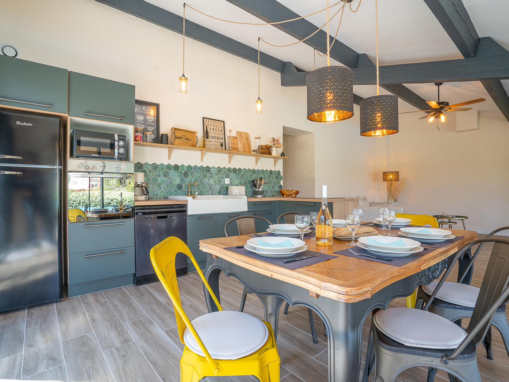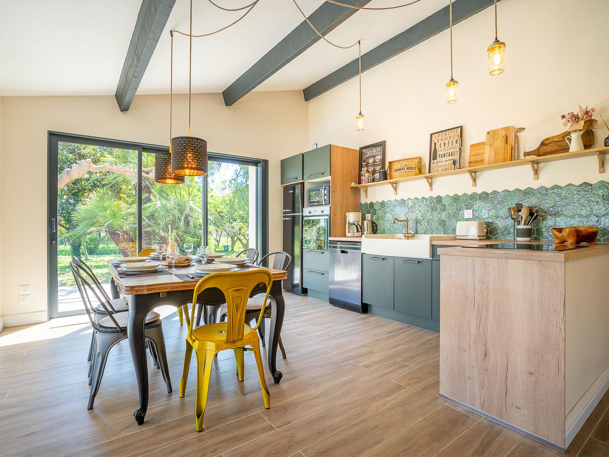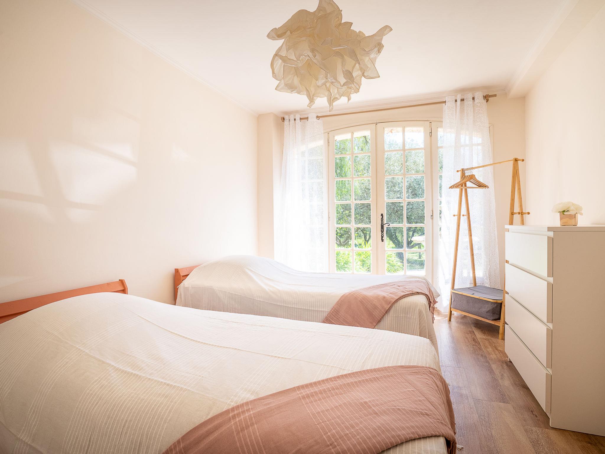 4-room apartment 140 m2, on the ground floor. Spacious, beautiful and stylish furnishings: living/dining room with TV (flat screen), fan. Exit to the terrace, to the swimming pool. 1 room with 2 beds (90 cm, length 190 cm). Exit to the terrace. 1 room with Dressing room with 1 french bed (160 cm, length 190 cm). Exit to the terrace. 1 room with 1 french bed (140 cm, length 190 cm). Open kitchen (oven, dishwasher, 4 induction hot plates, toaster, kettle, microwave, freezer, electric coffee machine). Exit to the terrace, to the swimming pool. Bathroom, shower/WC, sep. WC, double hand-basin. Electric heating. Terrace 20 m2, large garden, porch. Terrace furniture. Beautiful view of the garden. Facilities: washing machine. Internet (WiFi). Parking (fenced 1 car) at the house. Please note: TV only FR. Smoke alarm. Offer by a private individual according to Art. 155, IV of CGI.