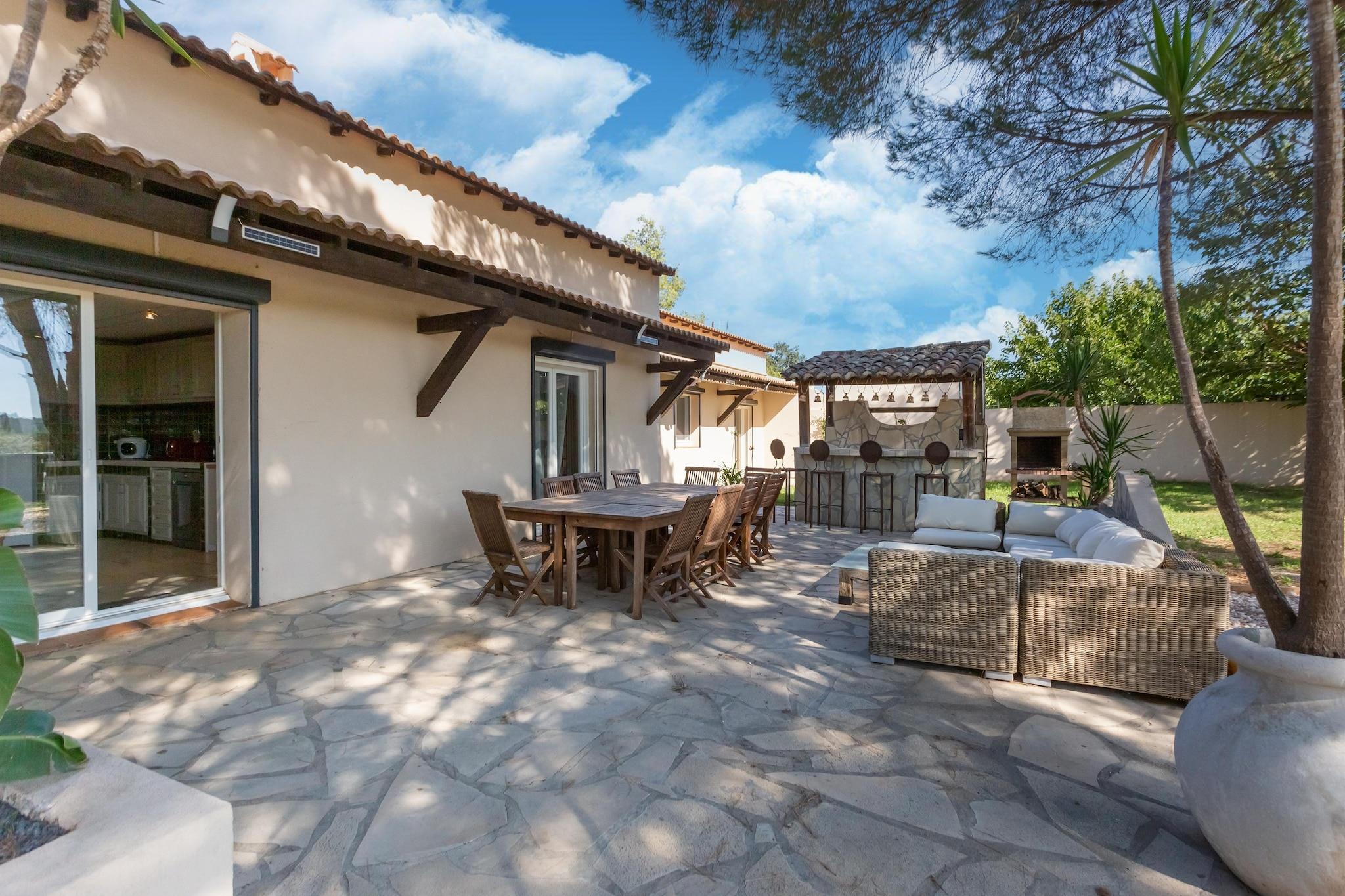Interiøret er særdeles godt indrettet, så du straks føler dig hjemme og godt tilpas med alle værelser på ét plan, det åbne køkken, der åbner ud til stue og spisestue, soveværelserne, de 2 badeværelser, bad og 2 separate toiletter. Terrassen udgør et rigtigt opholdsrum med terrassen og dens teakmøbler, grillen og baren. Villa La Navarre er beliggende mellem vinmarker og oliventræer ved foden af massiverne, som udgør et ideelt terræn for joggere, cyklister og vandrere uden at blive forstyrret af biler og derfor i fuldstændig ro. Den automatiske port giver dig adgang til jorden med rigelig plads til at parkere omkring ti biler. Spisebordet forvandles til et poolbord, alle åbninger er forsynet med myggenet og når man skal afsted skal man bare lukke alle de elektriske skodder. En overjordisk swimmingpool, en petanque- og fodboldbane samt et bordtennisbord er til rådighed. Med er en uforglemmelig ferie garanteret. Vi tilbyder en bred vifte af unikke sommerhuse, der vil gøre din sommerferie, weekendophold eller skiferie ekstra speciel. Vores sortiment omfatter mere end 40.000 sommerhuse i 20 europæiske lande. Uanset om du leder efter et autentisk landsted med pool i Frankrig, et charmerende hus i Toscana eller en hyggelig hytte i Alperne - hos os finder du den perfekte bolig til din familie, som et par eller en stor gruppe. Vores sommerhuse ligger skønne steder, det være sig ved kysten, højt oppe i bjergene eller midt i byen. Hvert hus er unikt og afspejler de regionale karakteristika. Hos nyder du absolut frihed og privatliv. Du kan spise morgenmad i din pyjamas eller snakke uforstyrret om aftenen uden at skulle bekymre dig om udgangsforbud. I dit eget feriehus kan du tilberede lækre måltider med lokale råvarer eller til enhver tid tage en afslappende pause. Du bor blandt de lokale og oplever den autentiske atmosfære i regionen på første hånd. Vores husejere