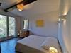 Bedroom 2 with a large French bed and en-suite bathroom with WC. Direct access to the south-facing terrace.