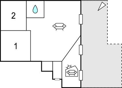 Soveværelse (nr. 1) - 1 Soveplads. (Enkeltseng(e)). 2 Sovepladser. (Dobbeltseng(e)).