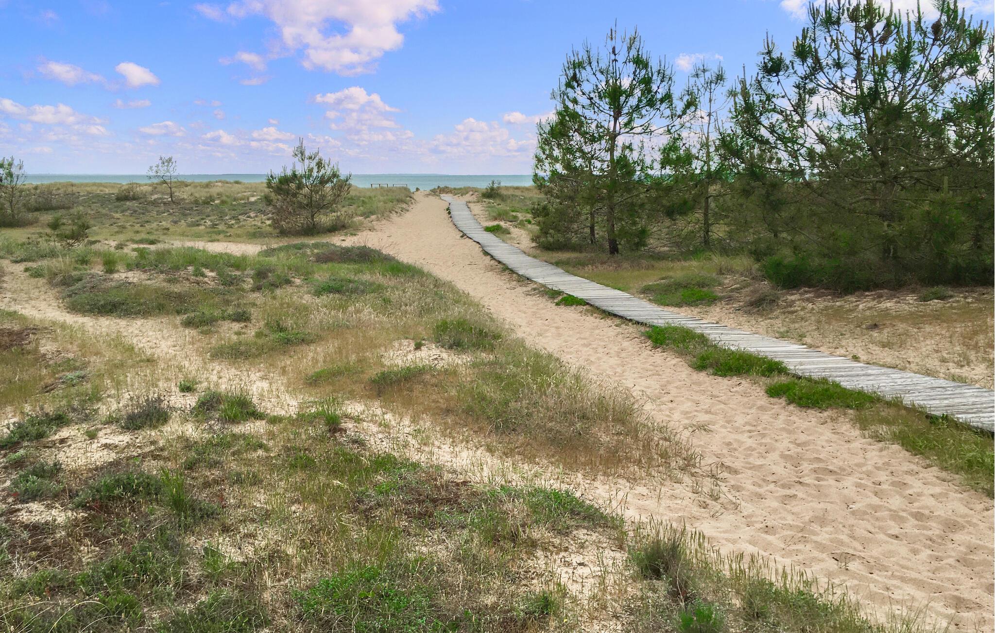 Slentr afslappet ned til stranden, og bad i Atlanterhavets bølger. Tag på spændende udflugter i klatreparken, eller tilbring en oplevelsesrig dag i vandparken O'Gliss i sommermånederne, hvor hele familien kan have det sjovt. Udforsk også den charmerende badeby La Tranche-sur-Mer eller den historiske by La Rochelle med sin maleriske havn, de markante tårne og et imponerende akvarium.