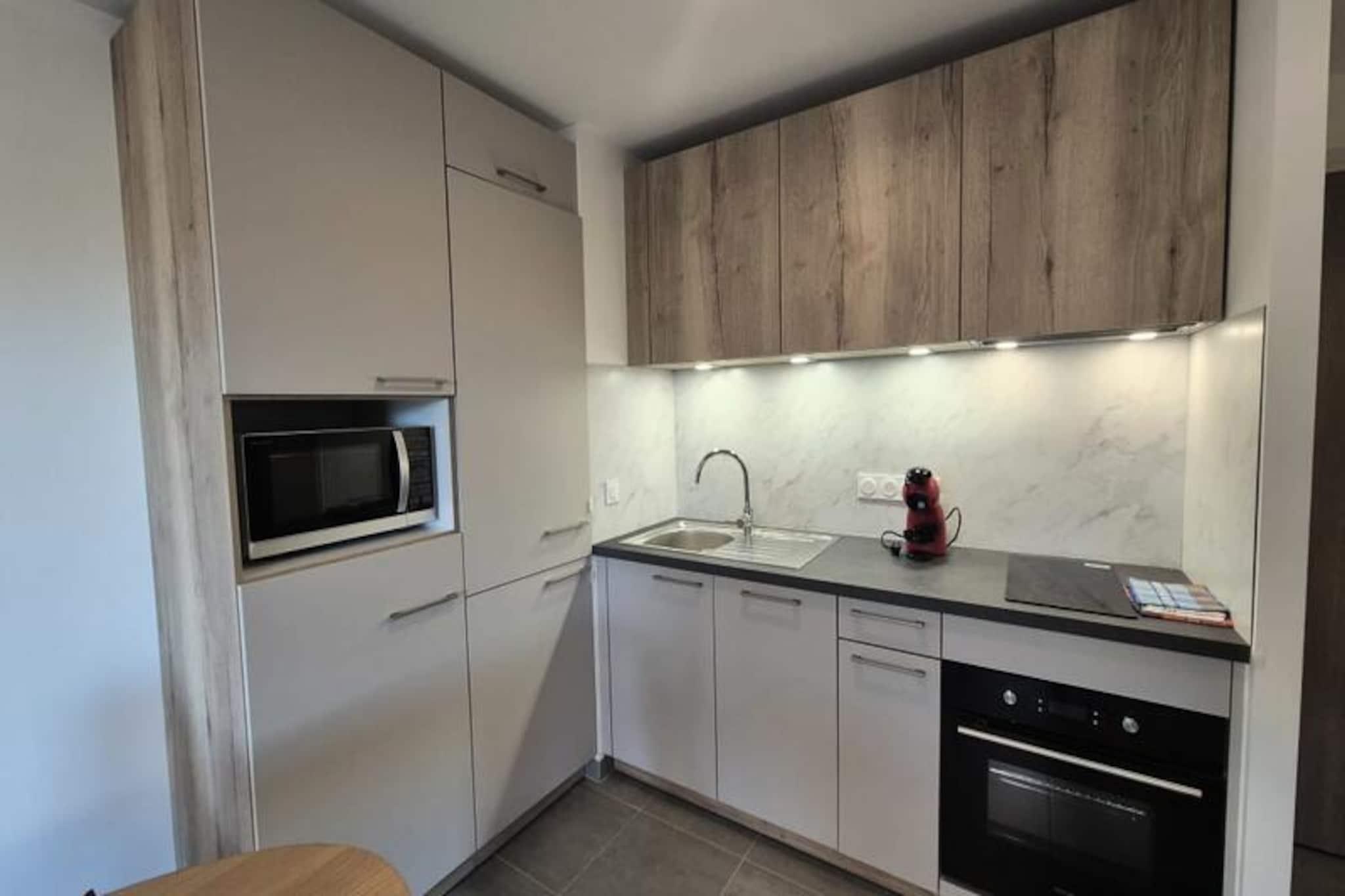 Højt over de fredfyldte landskaber i La Féclaz tilbyder denne charmerende lejlighed i Altitude 1327 Residence den perfekte blanding af komfort og bekvemmelighed for par eller familier. Forestil dig at vågne op til det bløde morgenlys, der strømmer ind gennem det store karnapvindue, og træde ud på din private østvendte terrasse for at indånde den friske bjergluft og nyde den betagende udsigt over de omkringliggende tinder. Dette er et paradis for dem, der søger ro og eventyr i lige mål. Indenfor er lejligheden omhyggeligt designet til at give et hyggeligt, men moderne tilflugtssted. Stuen har en komfortabel sovesofa, ideel til to børn, og et tv til afslappede aftener. Det åbne køkken er fuldt udstyret med alt, hvad du behøver, fra opvaskemaskine og stort køleskab til en Dolce Gusto-kaffemaskine og raclette-sæt, der inviterer dig til at tilberede lækre måltider efter en dag på pisterne. Soveværelset lover afslappende nætter med sin bløde dobbeltseng, mens det elegante badeværelse har en bruseniche og vaskemaskine for ekstra bekvemmelighed. Træd udenfor, og du er kun få øjeblikke væk fra skiløjperne takket være lejlighedens ski-in/ski-out-adgang. Et sikkert skirum og en privat overdækket parkeringsplads gør dit ophold endnu mere problemfrit. Ud over boligen tilbyder La Féclaz et væld af aktiviteter, lige fra skiløb og snowboarding om vinteren til vandreture og mountainbiking om sommeren. Lokale butikker og restauranter er inden for rækkevidde, hvilket sikrer, at du har alt, hvad du behøver for en uforglemmelig ferie. Uanset om du er her for at grave dig gennem frisk puddersne eller blot slappe af i den rolige alpine atmosfære, er denne lejlighed din port til en uforglemmelig bjergflugt.