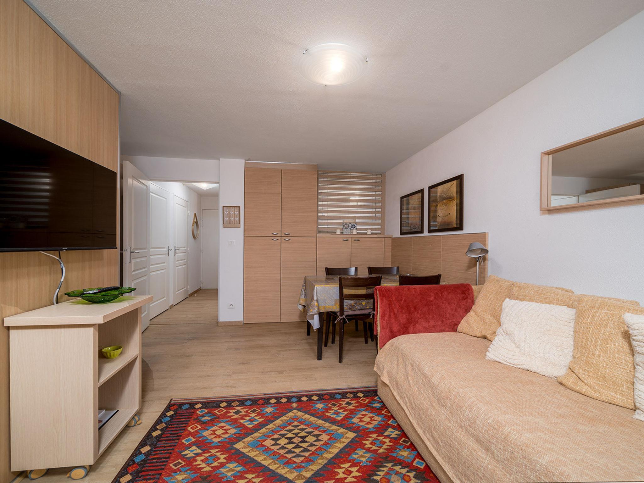 "C. DU Verdon", 2-room apartment 35 m2 on 3rd floor. Object suitable for 6 adults. 1 room with 1 double bed and TV. Living room with 1 sofabed and 2 x 2 bunk beds, 1 pull-out bed. Open kitchen (4 hot plates, oven, kettle, microwave, freezer, electric coffee machine). Bath/WC. Balcony. View of the mountains. Facilities: Internet (WiFi). Please note: non-smokers only. 1 pet/ dog allowed. Offer by a commercial proprietor according to Art. 155, IV, CGI 040060003145T