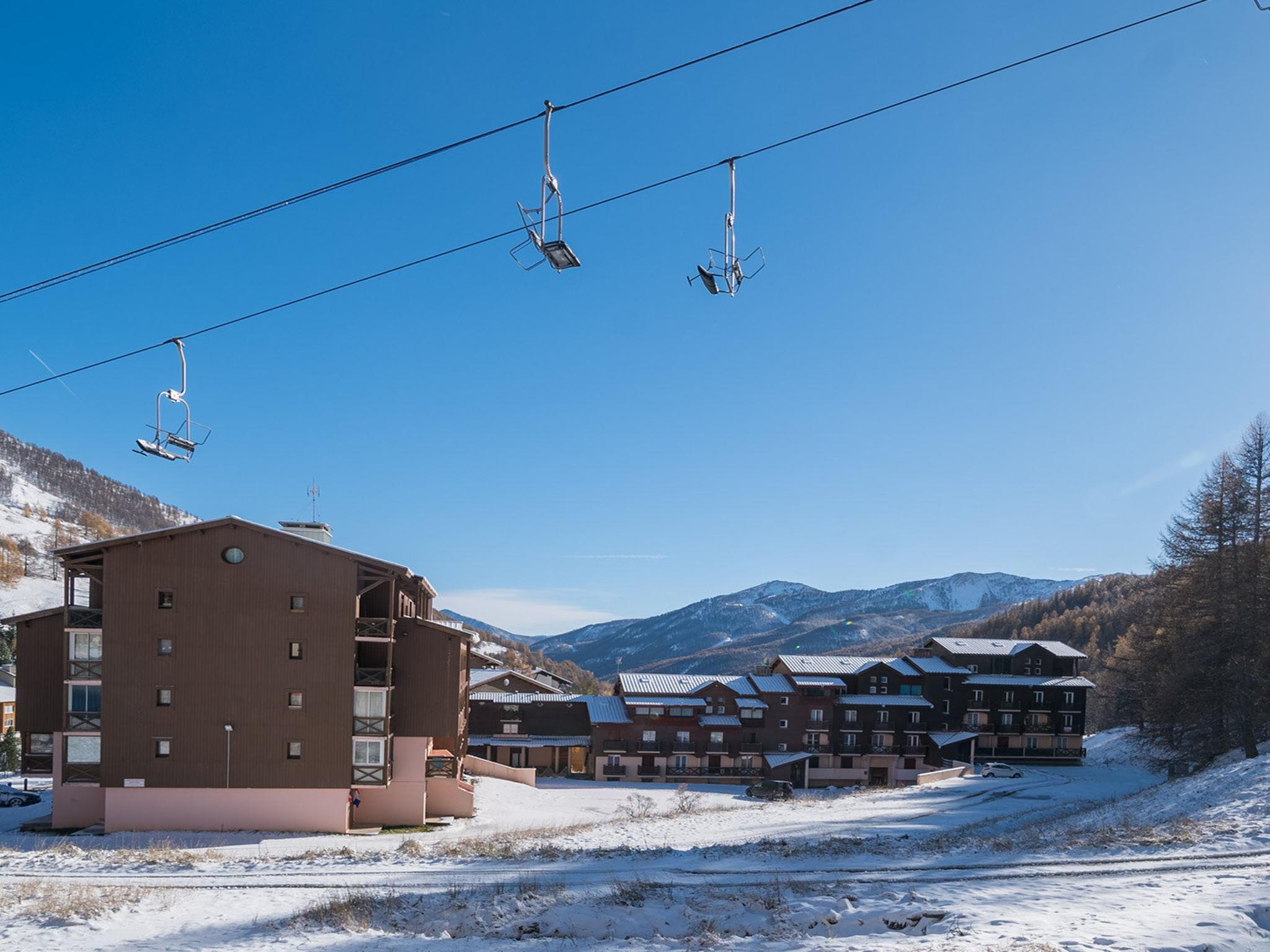 Allos: Apartment block. 0 m directly by the skiing area. For shared use: swimming pool heated. Supermarket.