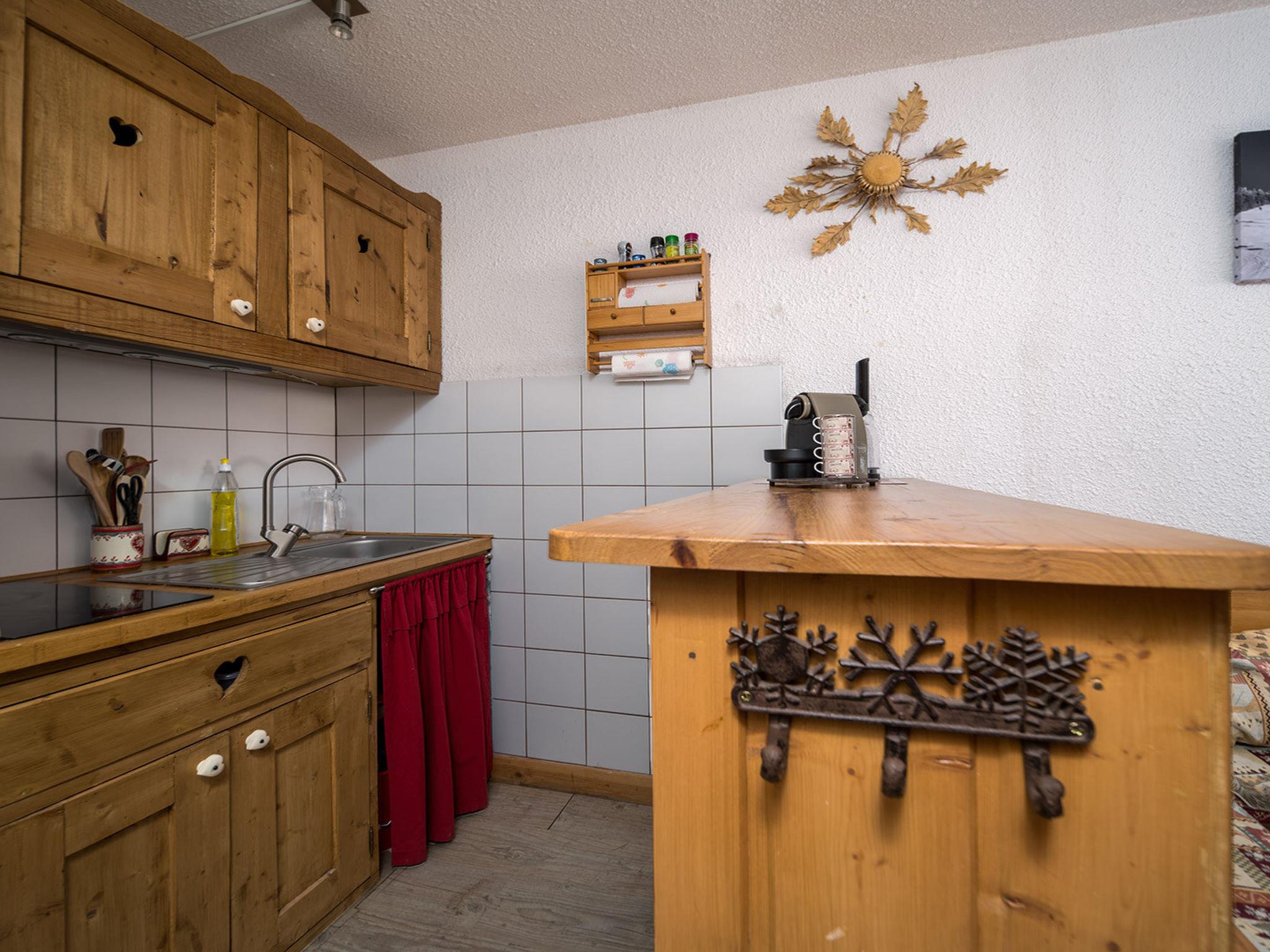 "Les Etoiles D", 1-room studio 24 m2 on 2nd floor. Object suitable for 4 adults. Living room with 1 sofabed and 1 x 2 bunk beds, 1 pull-out bed and TV. Open kitchen (2 hot plates, toaster, microwave, freezer, electric coffee machine). Shower/WC. View of the mountains and the ski run. Please note: non-smokers only. Smoke alarm. Offer by a commercial proprietor according to Art. 155, IV, CGI 040060003945L