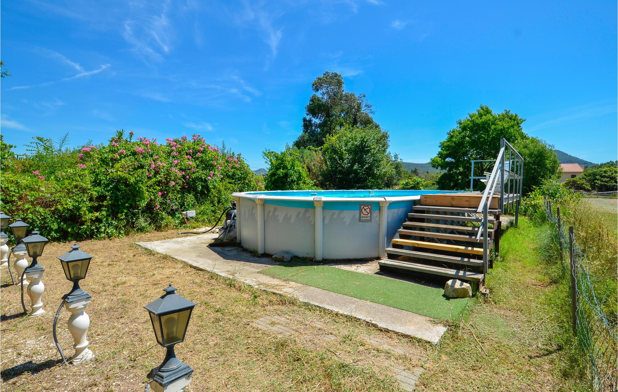 Gå ud på den overdækkede terrasse, som tilbyder skygge til jeres udendørs spisning. Slap af i den velholdte have med liggestole blandt blomstrende planter og skyggefulde træer. Den overjordiske pool deles med det tilstødende anneks og giver afkøling på varme dage. For større grupper er det muligt at booke begge boligenheder sammen.