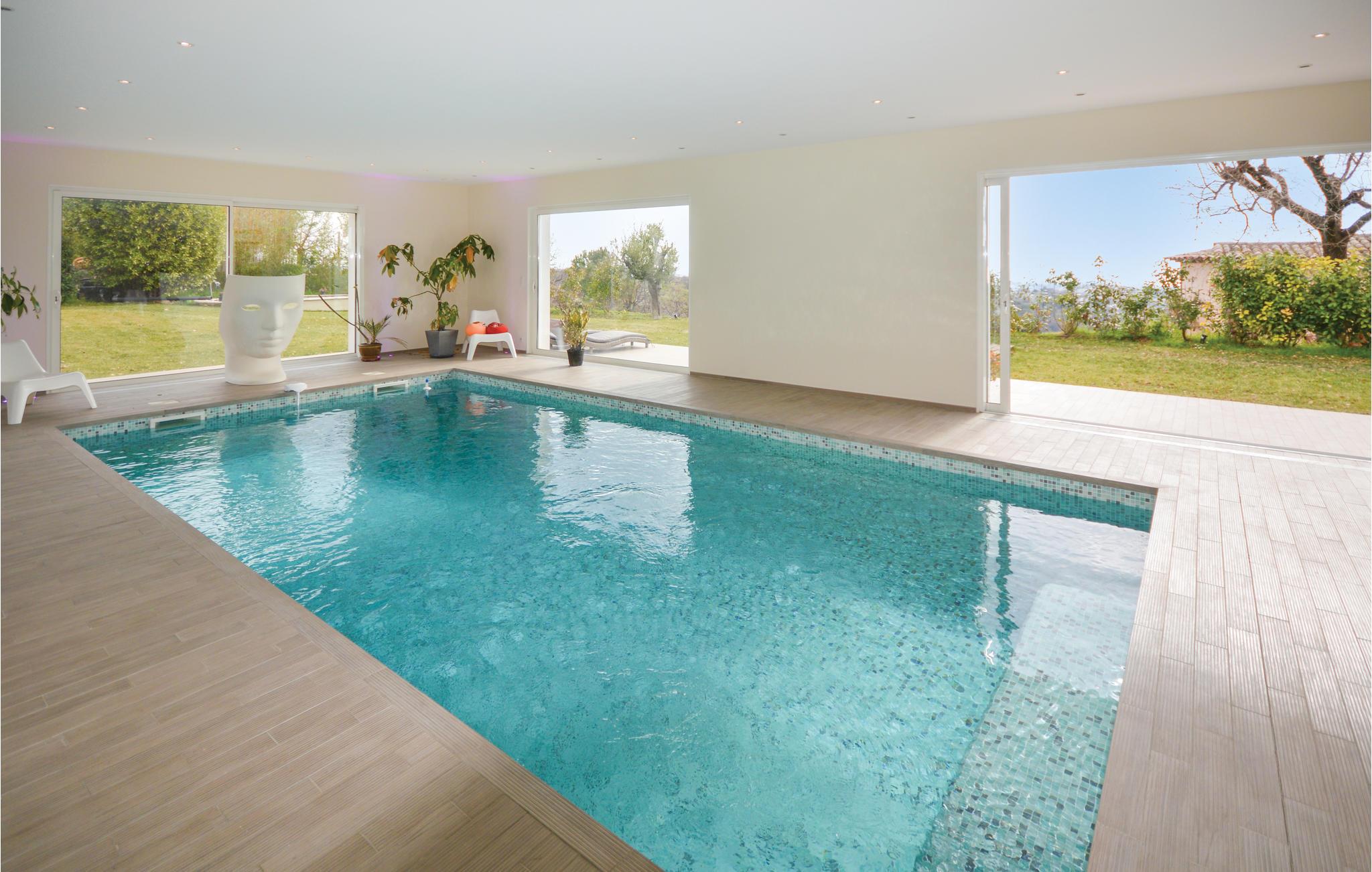Feriehus med en fantastisk indendørs pool og samtidig kun 13 km fra strandene. Denne charmerende ejendom fra 1900 imponerer med sin moderne indretning og forkæler sine gæster med et smukt panorama over havet og bjergene. Du kan slappe af i fred i det indendørs poolområde store glasskydedøre til haven eller udenfor i de højkvalitets havemøbler på den solbeskinnede terrasse Gå en tur gennem Saint-Paul-de-Vences solrige bymidte kun 4 km væk og besøg Fondation Maeght eller et museum med en skulpturhave og samtidskunst, Chapelle des Pénitents Blancs (Kapellet for de hvide angrende munke) eller dens kollegiale kirke eller Collégiale de la Conversion de Saint-Paul Lidt længere væk inviterer Vence dig til at tage en kort gåtur og besøg dets museum for moderne kunst vil også glæde dig med dens bymure, dens Port Vauban marina og Fort Carré. Nice ligger 10 km væk med livlige små gader og masser af provencalsk charme for dine fødder. Gør dine børn glade og tilbring en begivenhedsrig dag med dem i eventyrbadet nær Antibes. Denne smukke bolig med pool tilbyder et idyllisk udgangspunkt for din ferie på Côte d'Azur. Golfbane: 13 km. Poolen er opvarmet og er tilgængelig for gæster hele året rundt.