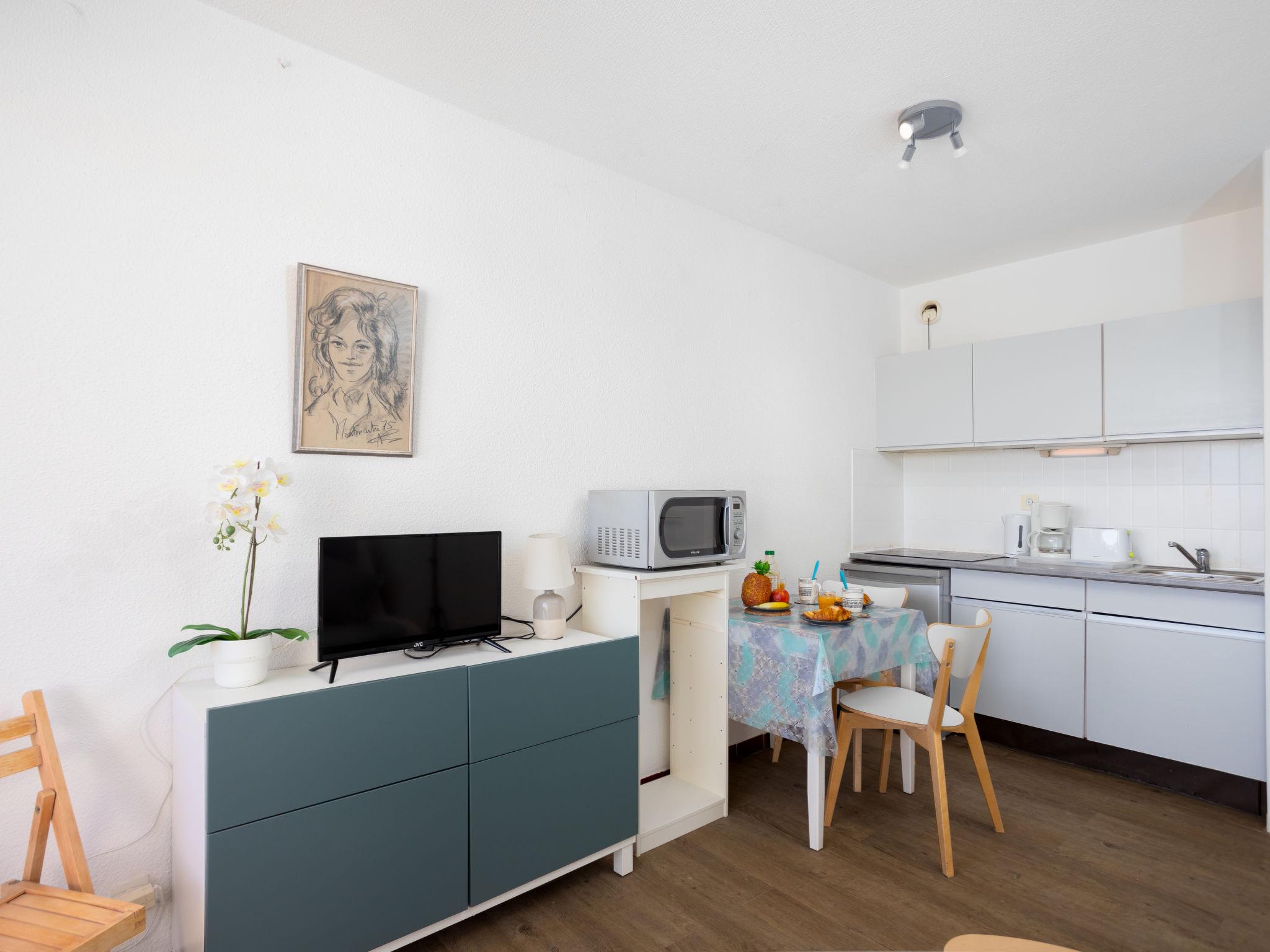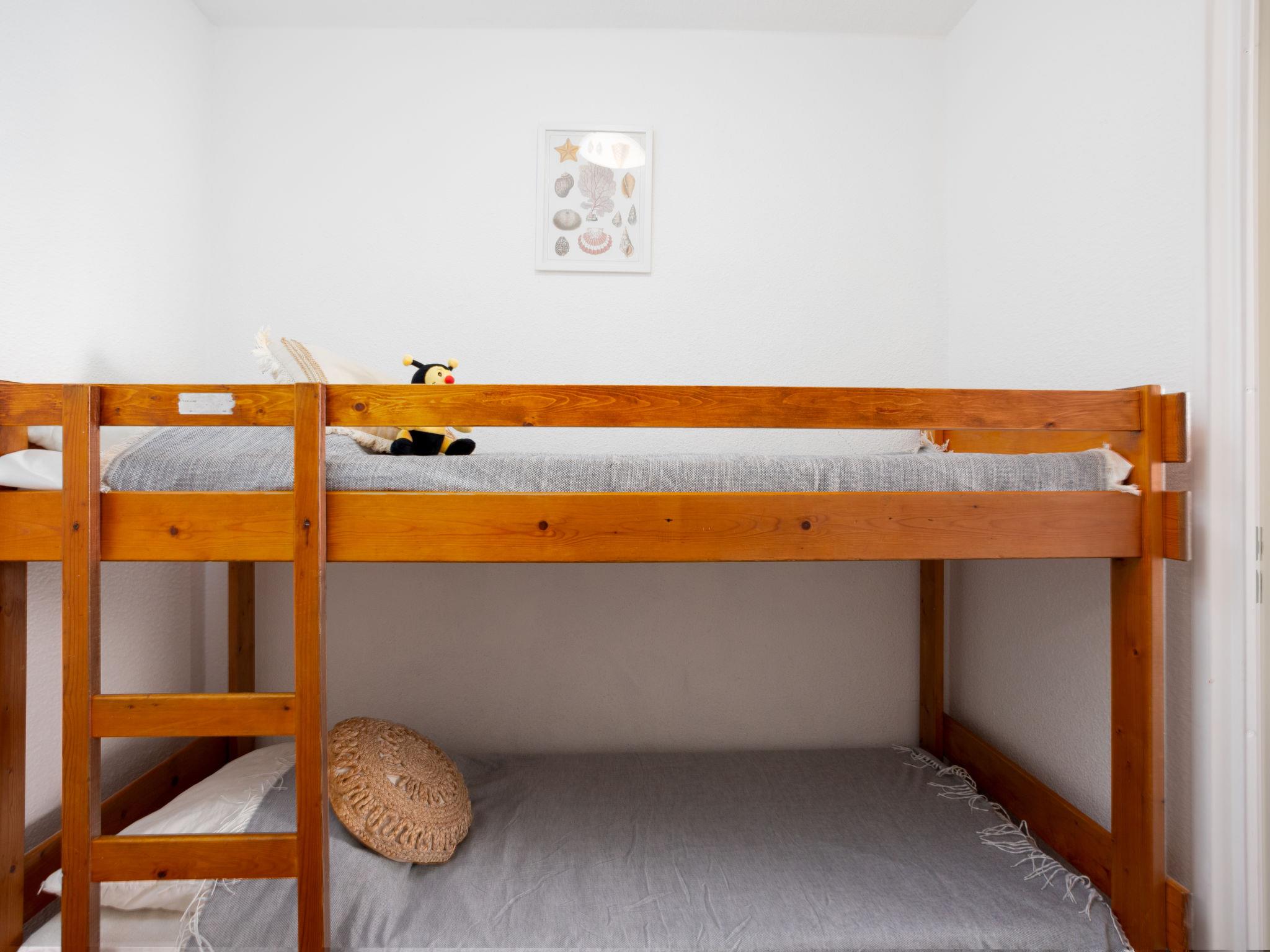 1-room apartment 21 m2 on 2nd floor. Living/dining room with 1 double sofabed (130 cm, length 190 cm), TV (flat screen). Entrance hall with 1 x 2 bunk beds (80 cm, length 190 cm). Kitchenette (3 ceramic glass hob hotplates, toaster, kettle, electric coffee machine, combination microwave). Shower/WC. Terrace 8 m2, south facing position. Terrace furniture. View of the swimming pool. Facilities: Internet (WiFi, extra). Parking. Please note: maximum 1 pet/ dog allowed. Smoke alarm.
