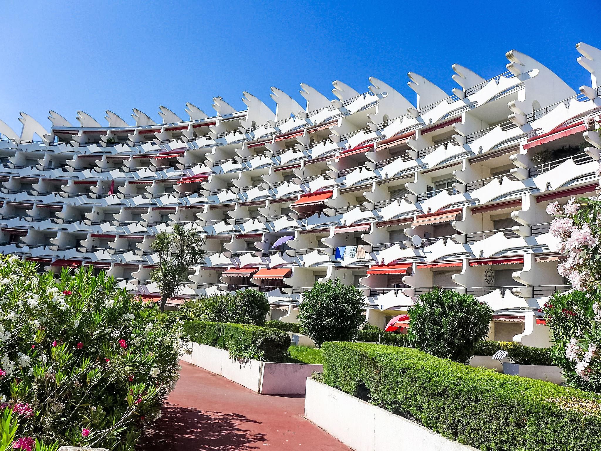 Residence "Du Soleil". In the district of La Motte du Couchant, 1.2 km from the centre, 200 m from the sea, 150 m from the beach. For shared use: swimming pool (21 x 12 m, depth 60 - 190 cm, seasonal availability: 15.Jun. - 15.Sep.). Outdoor shower. In the complex: lift. Public parking on the road extra. Shopping centre, restaurant, bar 100 m, bus stop "De lattre de Tassigny" 250 m, railway station "Montpellier" 25 km, sandy beach 150 m, indoor swimming pool 3 km, thermal baths "Thalasso Spa" 3 km. Sports harbour 900 m, golf course (18 hole) 3.5 km, sailing school 700 m, tennis 3 km, riding stable 1 km. Nearby attractions: Le Seaquarium du Grau Du Roi 10 km, Les Remparts d'Aigues Mortes 12 km, Les Saintes Maries de la Mer 40 km. Please note: airfield close by 20 km from the property. Additional accommodations can be booked.