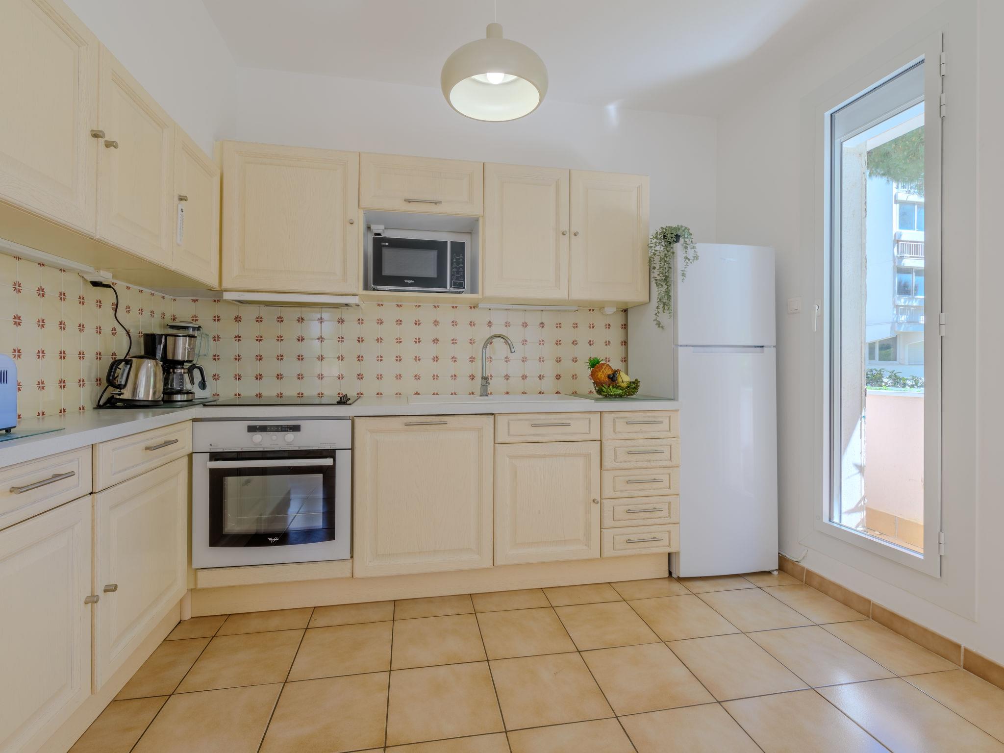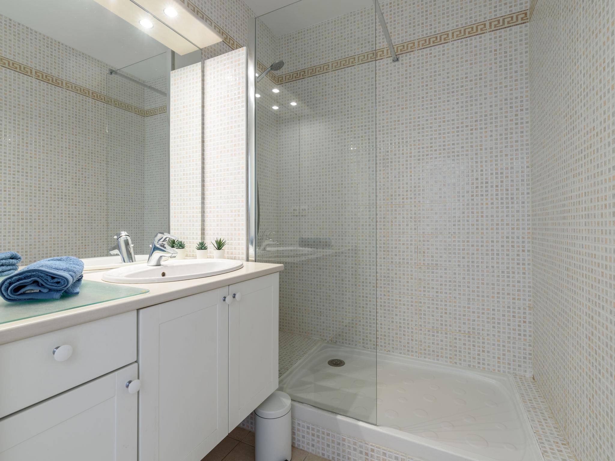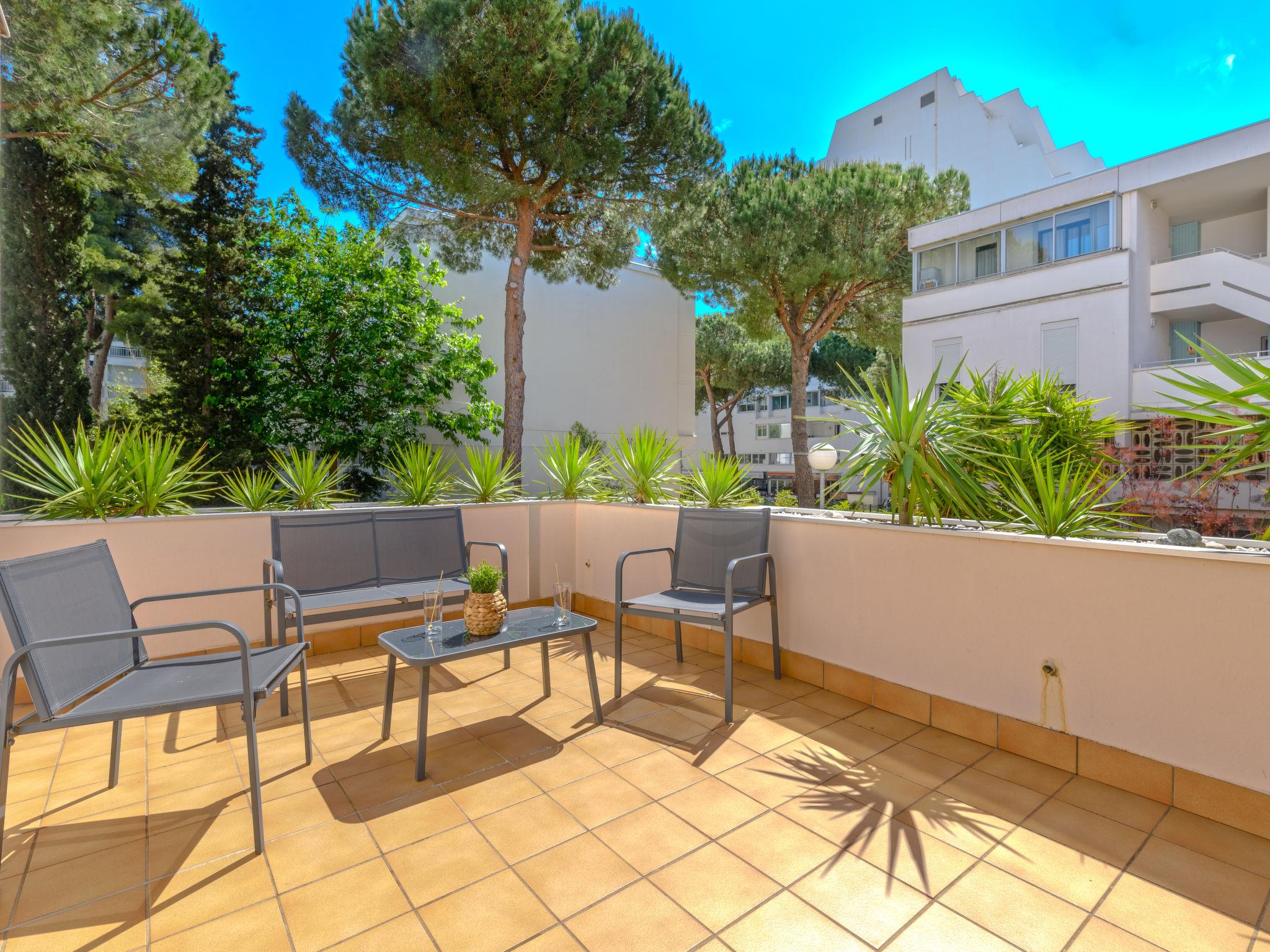 3-room apartment 50 m2 on 1st floor. Living/dining room with TV (flat screen), air conditioning, fan, forced-air heating and electric shutters. 1 room with 1 french bed (140 cm, length 200 cm). Exit to the terrace. 1 room with 1 pull-out bed (2 pers. 2 x 80 cm, length 200 cm). Exit to the terrace. Kitchenette (oven, dishwasher, 4 ceramic glass hob hotplates, toaster, kettle, microwave, freezer, electric coffee machine). Bathroom. Boiler (150 litres). Large terrace 40 m2. Terrace furniture. Facilities: washing machine. Internet (WiFi, free). Please note: apartment courtyard side. Non-smokers only, no parking. Smoke alarm, no lift.