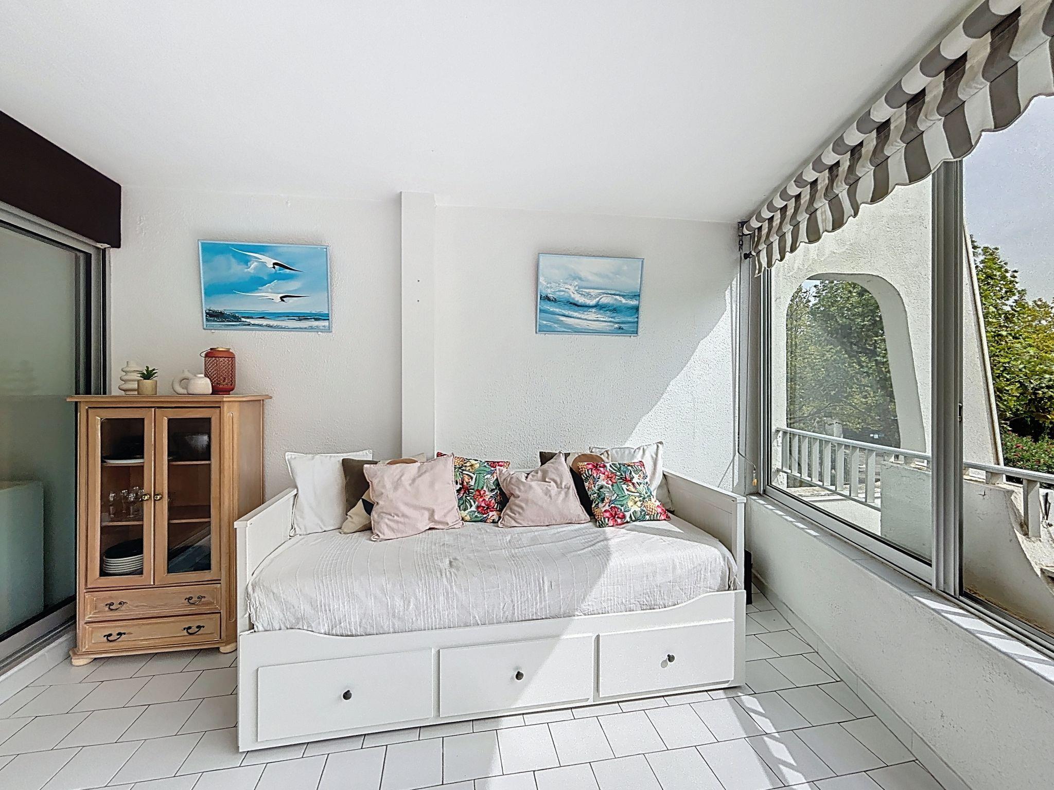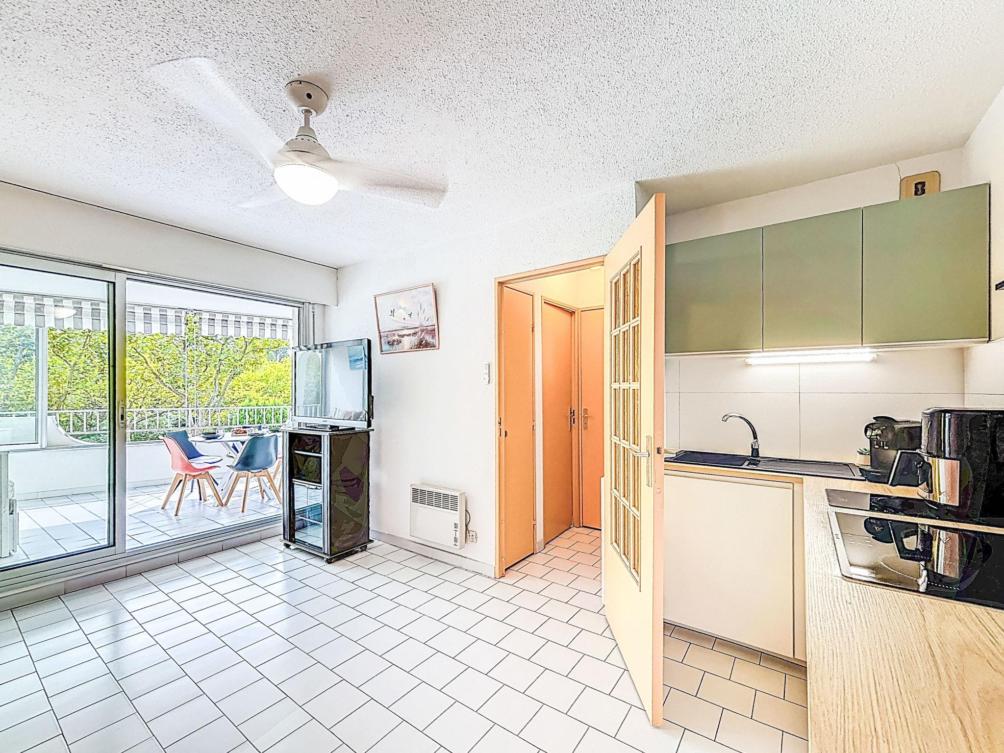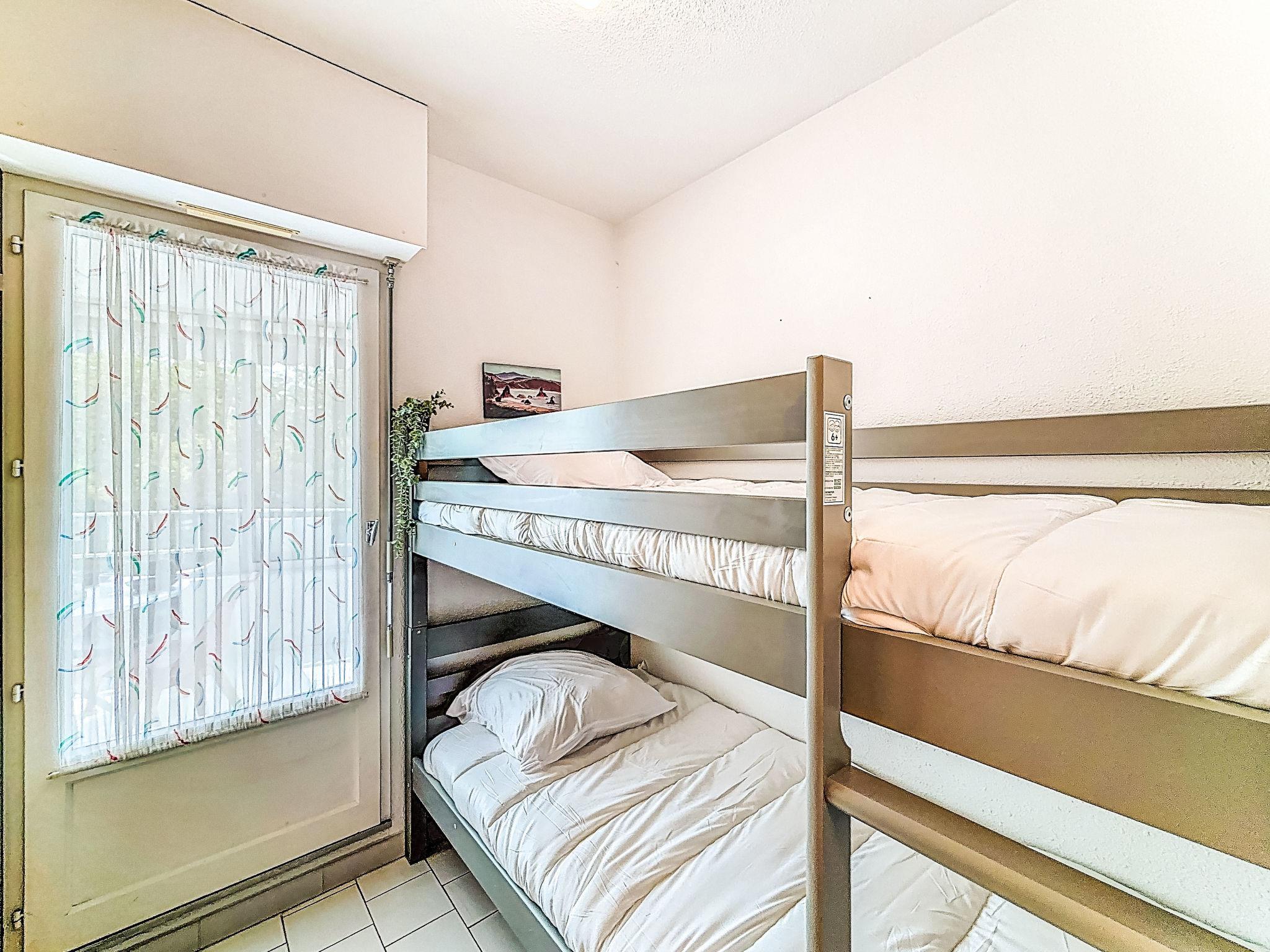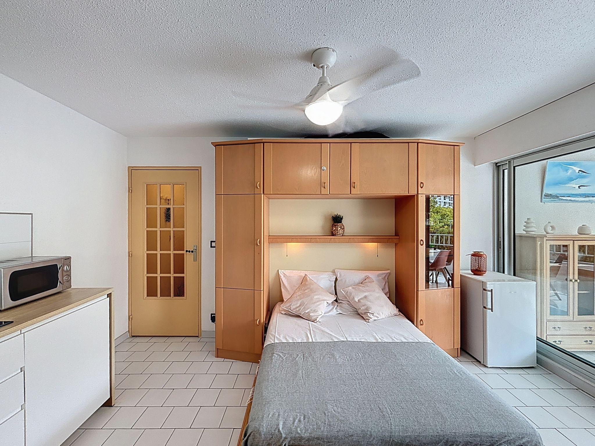 1-room apartment 40 m2. Object suitable for 3 adults + 2 children. Comfortable furnishings: living/dining room with 1 double fold-away bed (140 cm, length 190 cm), TV (flat screen), electric heater. Exit to the loggia, south facing position. Sleeping alcove with 1 double sofabed (160 cm, length 200 cm), air conditioning. Sleeping alcove with 1 x 2 bunk beds (90 cm, length 190 cm). Exit to the loggia. Kitchenette (dishwasher, 3 induction hot plates, toaster, kettle, microwave, freezer, electric coffee machine, Capsules for coffee machine (PHILLIPS) extra). Bathroom, hip bath, sep. WC. Covered balcony. View of the garden. Facilities: Internet (WiFi, extra). Parking space n 132. Please note: non-smokers only. Smoke alarm. Offer by a private individual according to Art. 155, IV of CGI. 06 87 665 378 414