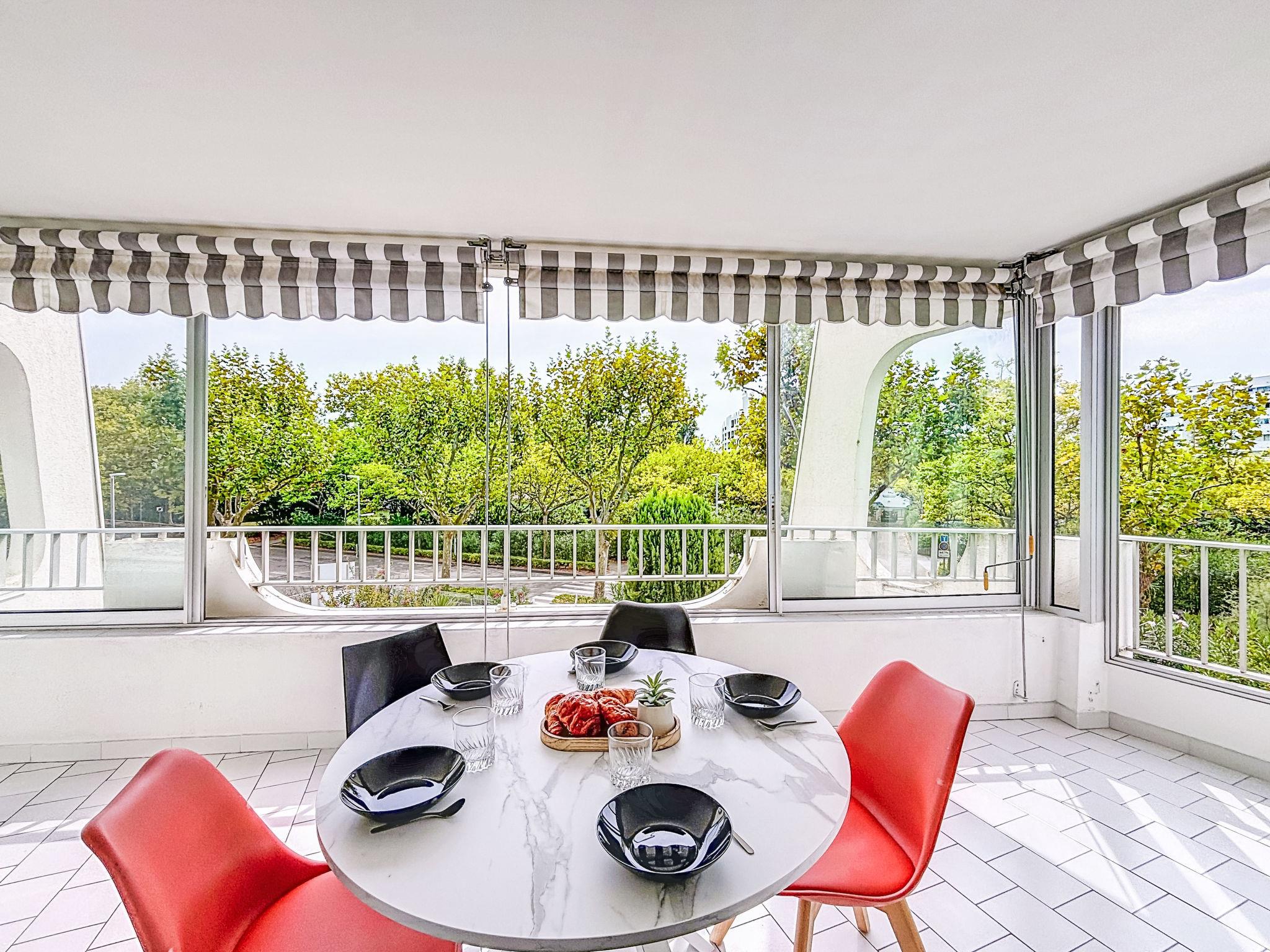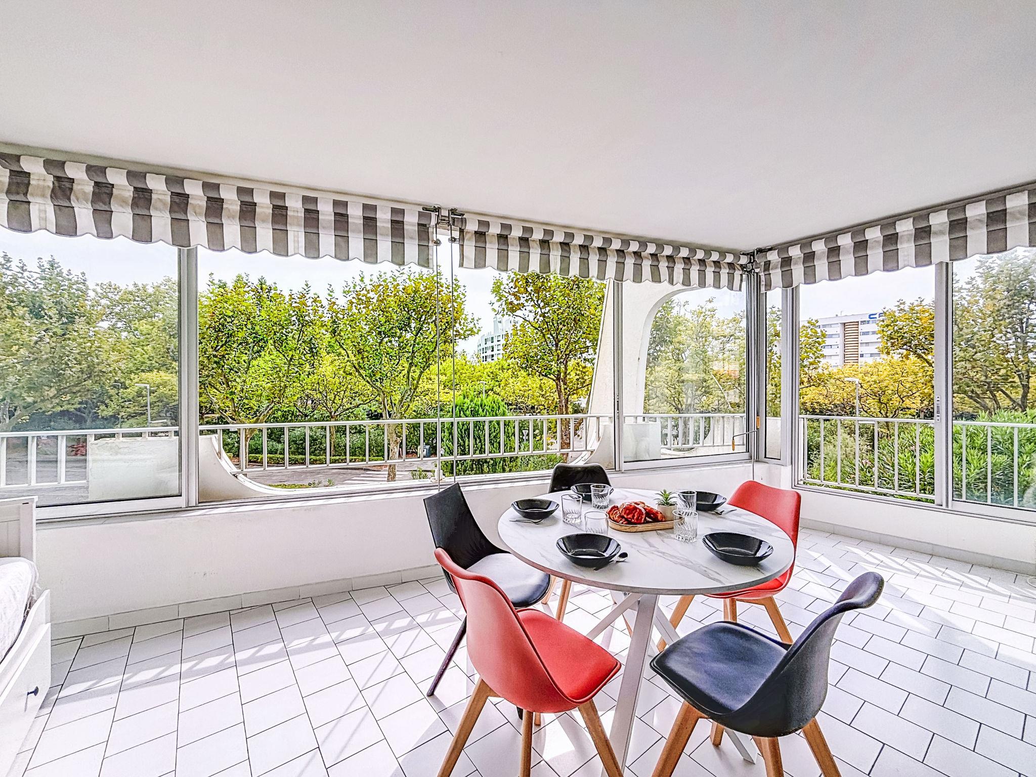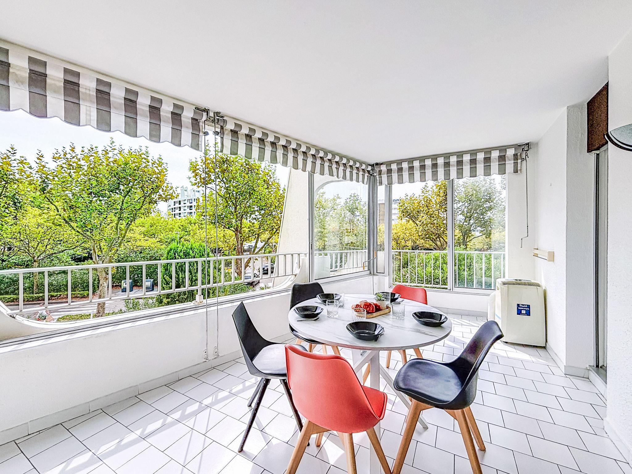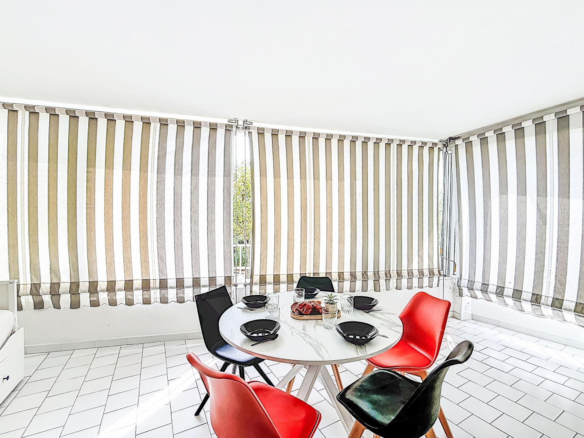 1-room apartment 40 m2. Object suitable for 3 adults + 2 children. Comfortable furnishings: living/dining room with 1 double fold-away bed (140 cm, length 190 cm), TV (flat screen), electric heater. Exit to the loggia, south facing position. Sleeping alcove with 1 double sofabed (160 cm, length 200 cm), air conditioning. Sleeping alcove with 1 x 2 bunk beds (90 cm, length 190 cm). Exit to the loggia. Kitchenette (dishwasher, 3 induction hot plates, toaster, kettle, microwave, freezer, electric coffee machine, Capsules for coffee machine (PHILLIPS) extra). Bathroom, hip bath, sep. WC. Covered balcony. View of the garden. Facilities: Internet (WiFi, extra). Parking space n 132. Please note: non-smokers only. Smoke alarm. Offer by a private individual according to Art. 155, IV of CGI. 06 87 665 378 414