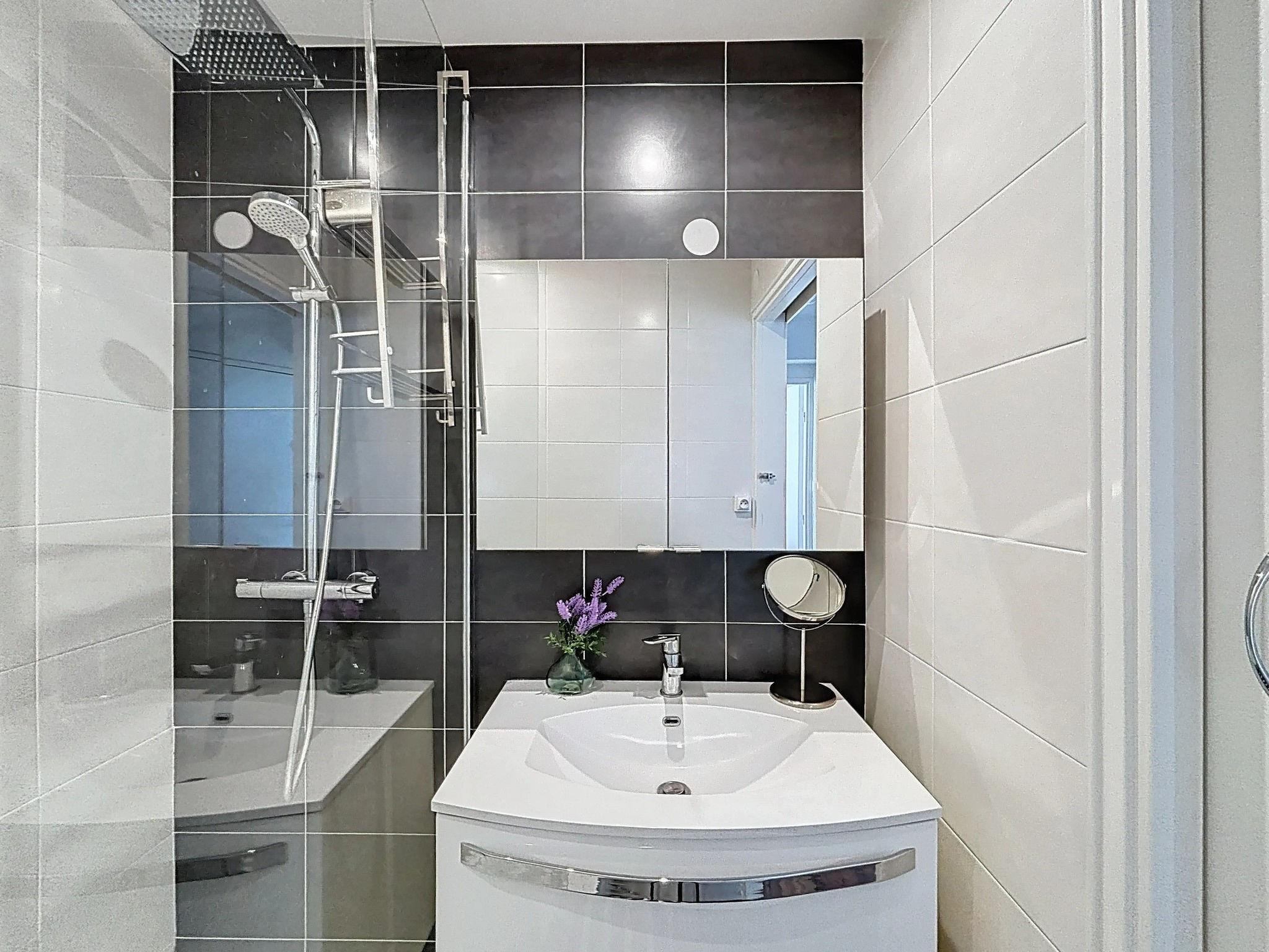 2-room apartment 40 m2 on 6th floor, south-west facing position. Beautiful furnishings: living/dining room with 1 sofabed (140 cm, length 190 cm), TV and air conditioning. Exit to the terrace. 1 room with 1 french bed (1 x 160 cm, length 200 cm). Kitchenette (2 ceramic glass hob hotplates, toaster, kettle, electric coffee machine, Capsules for coffee machine (Nespresso et filtre) extra, combination microwave). Shower, sep. WC. Electric heating, air-conditioning. Large terrace 24 m2, south facing position and west facing position. Terrace furniture, electric barbecue. Panoramic view of the sea and the countryside. Facilities: washing machine. Internet (WiFi, extra). Garage space n 6B6. Please note: non-smokers only. Smoke alarm. Offer by a private individual according to Art. 155, IV of CGI. 0483613403448