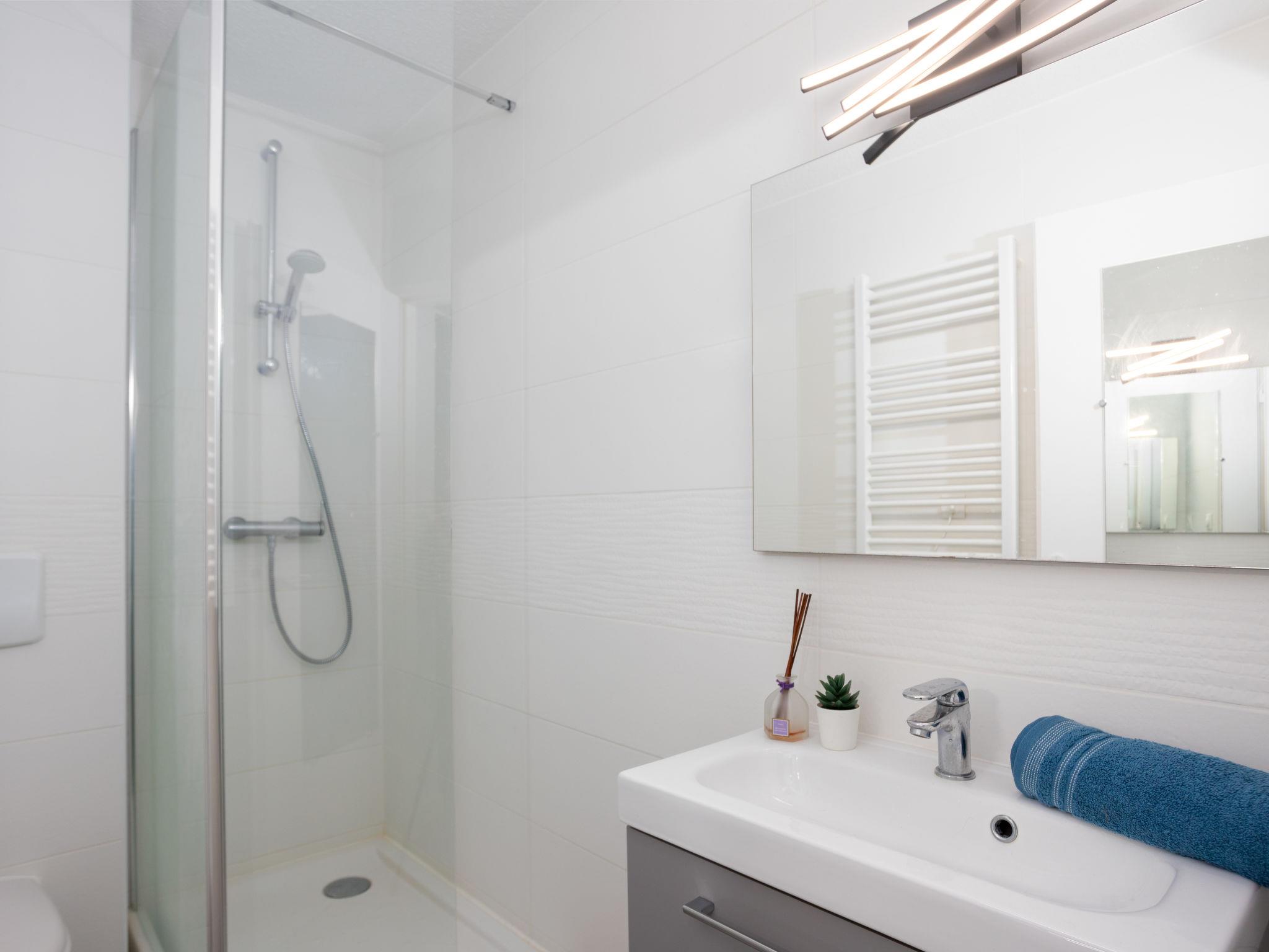"East Land", 1-room apartment 24 m2 on 1st floor. Object suitable for 2 adults + 2 children. Comfortable furnishings: living/dining room with 1 double sofabed (140 cm, length 190 cm), TV (flat screen). Sleeping alcove with 1 x 2 bunk beds (90 cm, length 190 cm). Kitchenette (dishwasher, 2 induction hot plates, toaster, kettle, freezer, electric coffee machine, combination microwave). Shower/WC. Electric heating. Terrace 12 m2, north facing position. Terrace furniture. View of the lake. Facilities: washing machine, dryer, hair dryer. Internet (WiFi, extra). Parking space n 88. Please note: smoke alarm. Offer by a private individual according to Art. 155, IV of CGI.