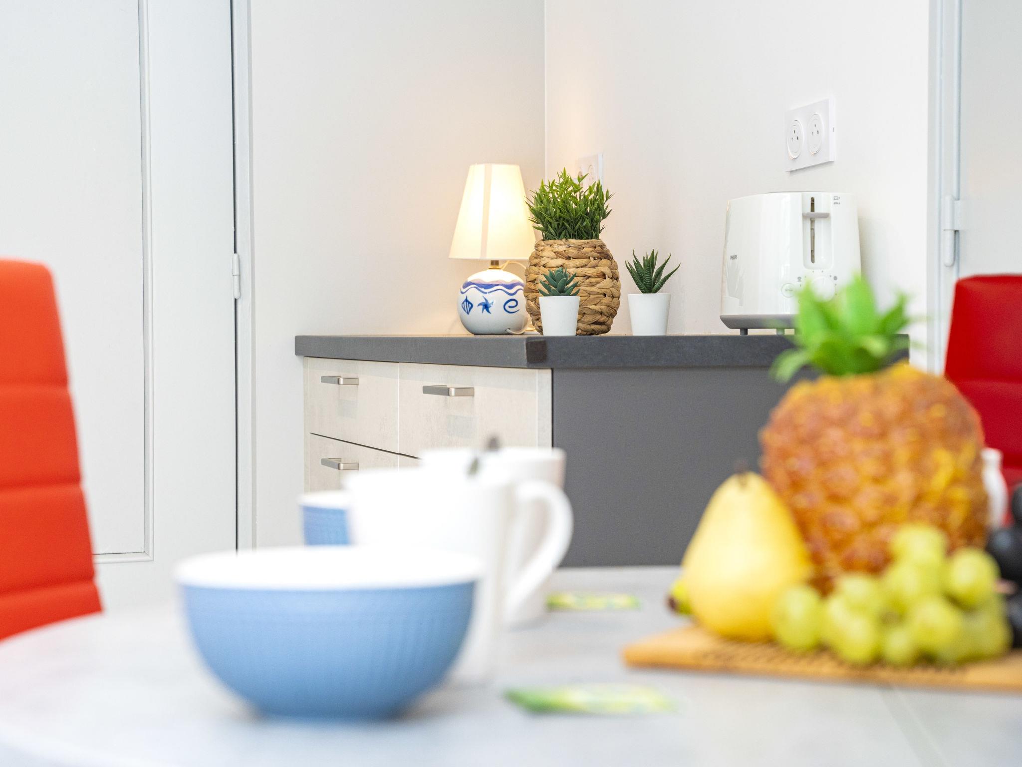 "Le Club", 2-room apartment 30 m2 on 2nd floor, south-west facing position. Renovated in 2024, comfortable furnishings: living/dining room with (140 cm, length 190 cm), TV (flat screen), electric heating and air conditioning. Exit to the loggia. 1 small room with 1 x 2 bunk beds (90 cm, length 200 cm). Open kitchen (oven, dishwasher, 3 induction hot plates, toaster, kettle, microwave, freezer, electric coffee machine, Capsules for coffee machine (SENSEO) extra). Shower/WC. Electric heating. Balcony furniture, covered balcony. Facilities: washing machine, iron. Internet (WiFi, extra). Parking space n 397 (1 car). Please note: non-smokers only. Maximum 1 small pet/ dog allowed. Smoke alarm. Offer by a private individual according to Art. 155, IV of CGI. 10 73 014 216 064