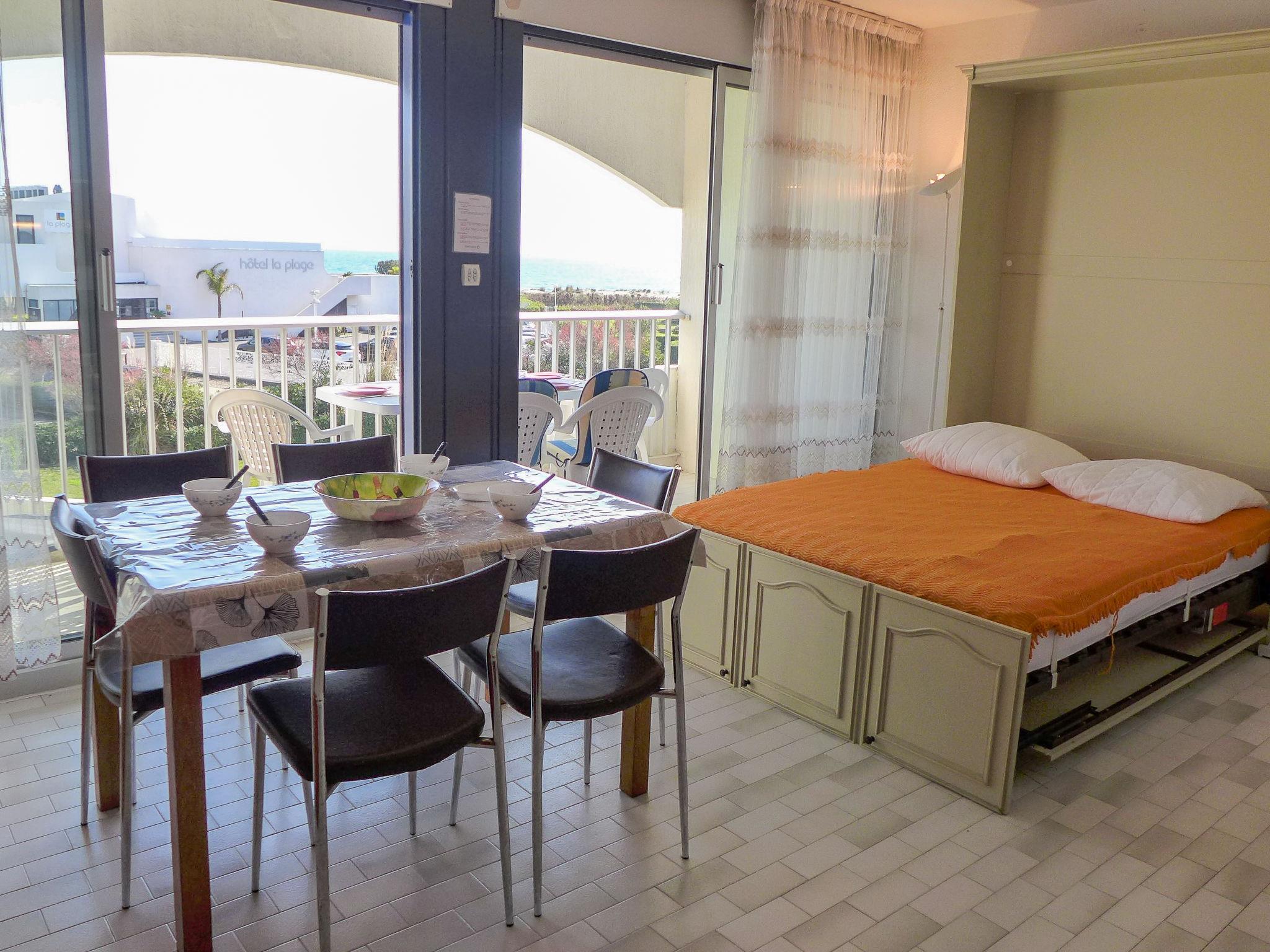 Residence "Les Terrasses de la Mer", 4 storeys. In the district of Point Zéro, 2 km from the centre, 50 m from the sea, 30 m from the beach, direct access to the beach. In the complex: lift. Public parking 50 m on the road extra. Shop 1 km, restaurant 500 m, bus stop "Ponant" 100 m, sandy beach 20 m, outdoor swimming pool 700 m, indoor swimming pool 1 km, thermal baths "Thalasso Spa" 1.2 km. Sports harbour 2.5 km, golf course (18 hole) 1.5 km, sailing school 2.5 km, tennis 1 km, riding stable 3.9 km. Nearby attractions: Le Seaquarium du Grau Du Roi 10 km, Les Remparts d'Aigues Mortes 12 km, Les Saintes Maries de la Mer 40 km. Please note: airfield close by 20 km from the property. Additional accommodations can be booked.