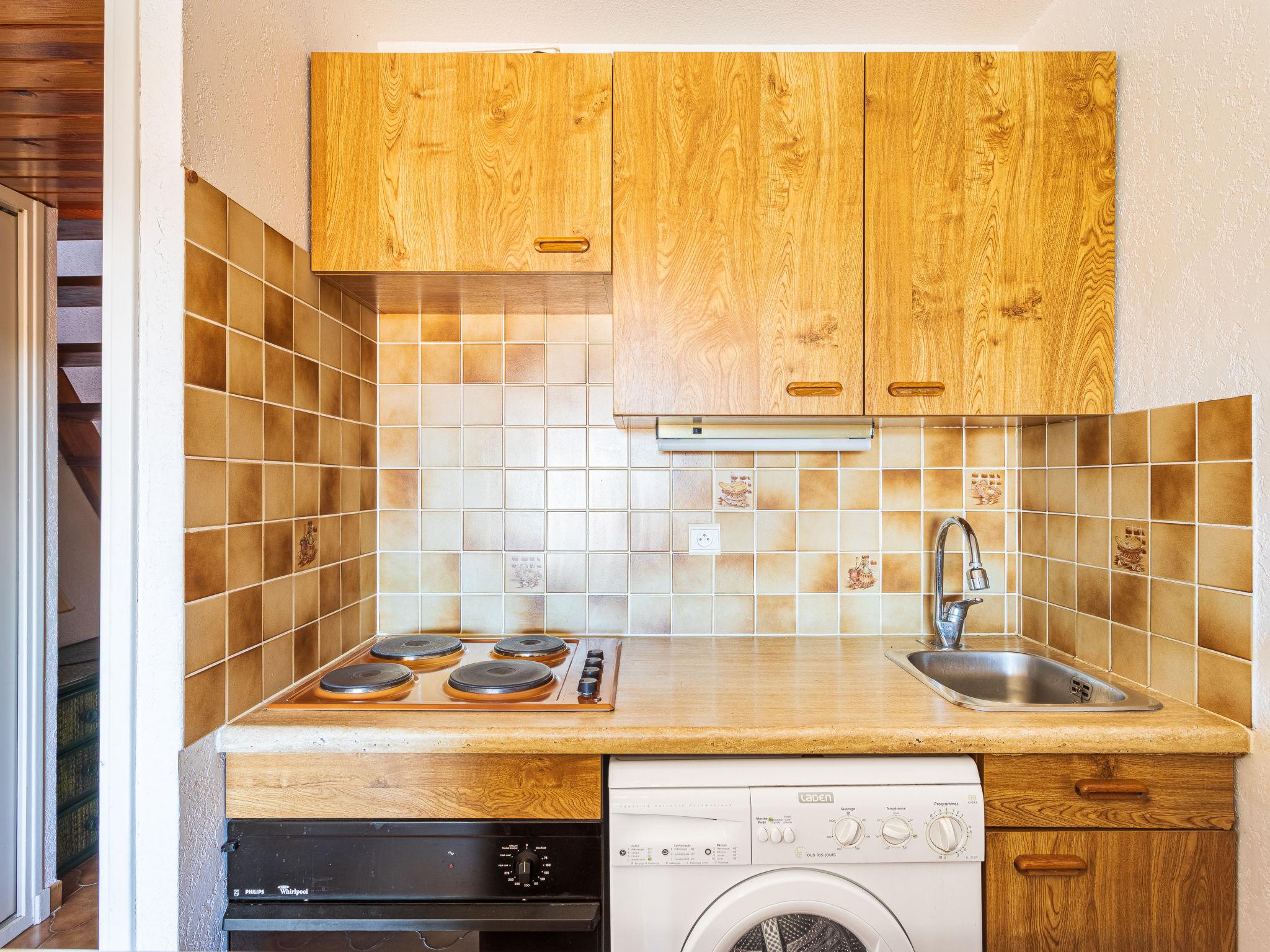 2-room apartment 32 m2 on 3rd floor, west facing position. Comfortable and beautiful furnishings: living/dining room with 1 sofabed (140 cm, length 190 cm), dining table and TV (flat screen), hi-fi system, fan and electric shutters. Exit to the loggia. Kitchenette (4 hot plates, oven, toaster, kettle, microwave, freezer, electric coffee machine). Bathroom, sep. WC. Electric heating. Upper floor: (steep stair), 1 room with sloping ceilings with 1 bed (90 cm, length 190 cm), 1 french bed (160 cm, length 200 cm). Covered balcony. View of the countryside. Facilities: washing machine, iron. Internet (WiFi, extra). Please note: TV only FR. Smoke alarm, no lift. Offer by a private individual according to Art. 155, IV of CGI. 8307100140497