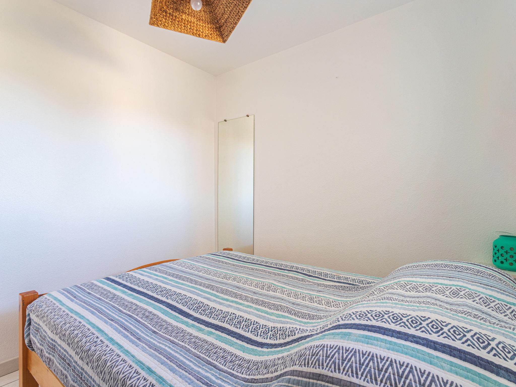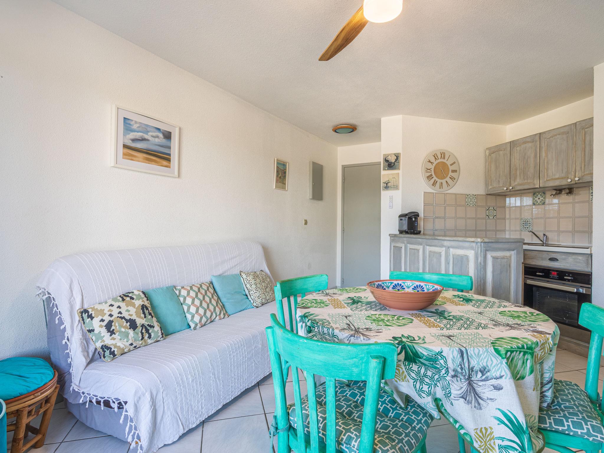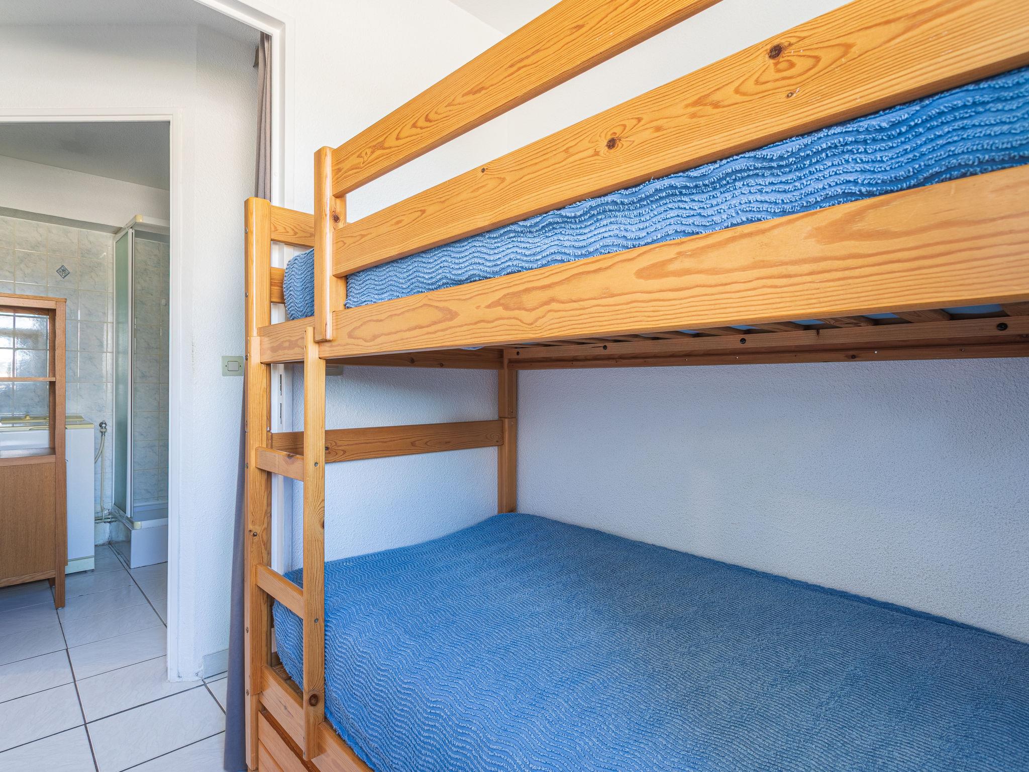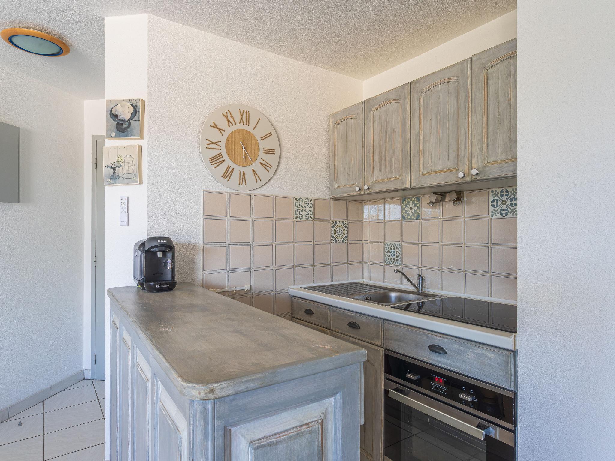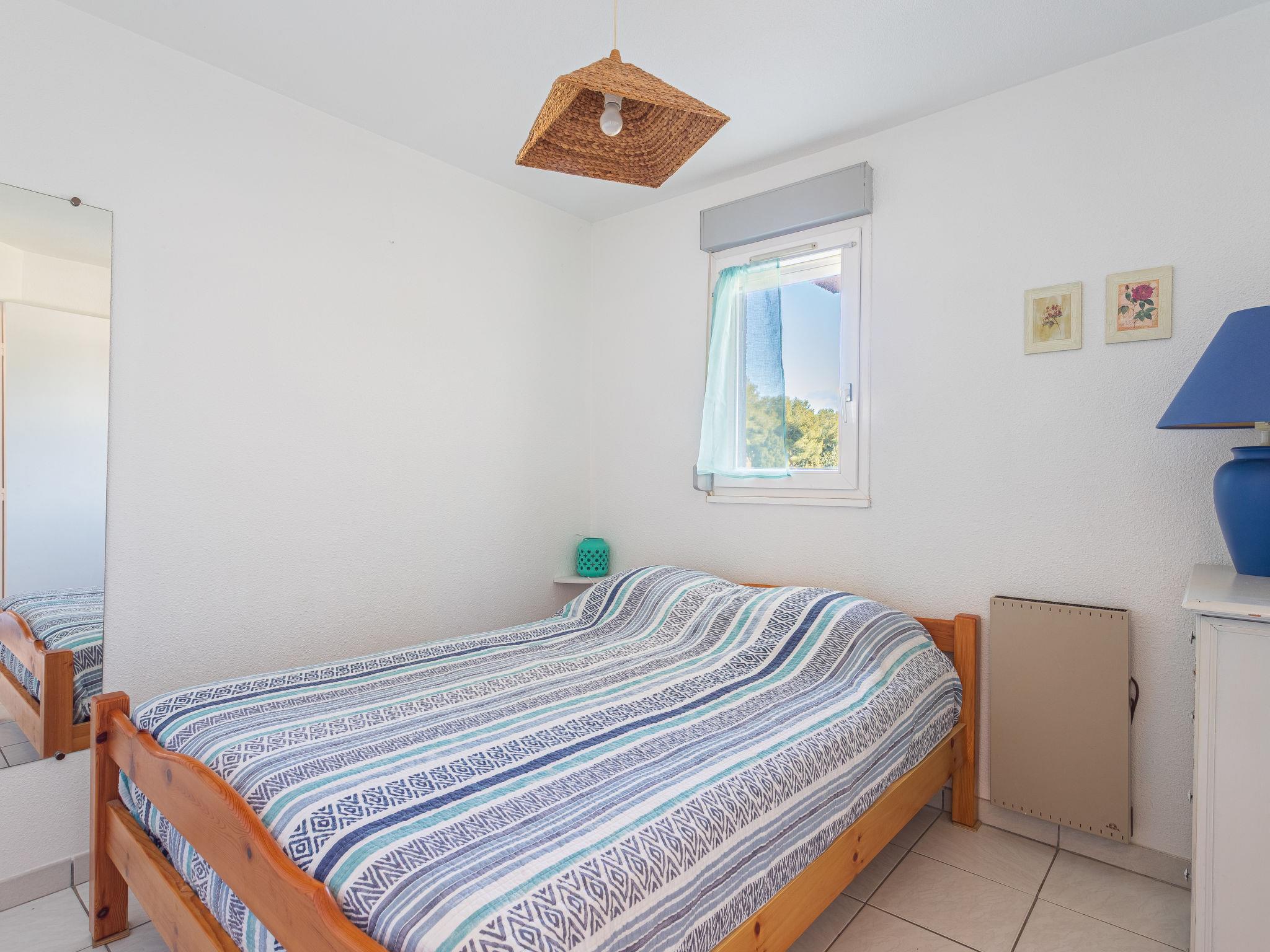 2-room apartment 34 m2 on 1st floor. Bright, comfortable and beautiful furnishings: living/dining room with dining table and TV (flat screen). Exit to the terrace. 1 room with 1 french bed (140 cm, length 190 cm). Sleeping alcove with 1 x 2 bunk beds (90 cm, length 190 cm). Kitchenette (oven, 3 ceramic glass hob hotplates, toaster, kettle, microwave, freezer, electric coffee machine). Shower/WC. Electric heating. Terrace 7 m2, east facing position. Terrace furniture. Facilities: washing machine, iron. Internet (WiFi, extra). Parking space n Non numeroté (fenced). Please note: TV only FR. Smoke alarm, no lift. Offer by a private individual according to Art. 155, IV of CGI. 83071001193D6