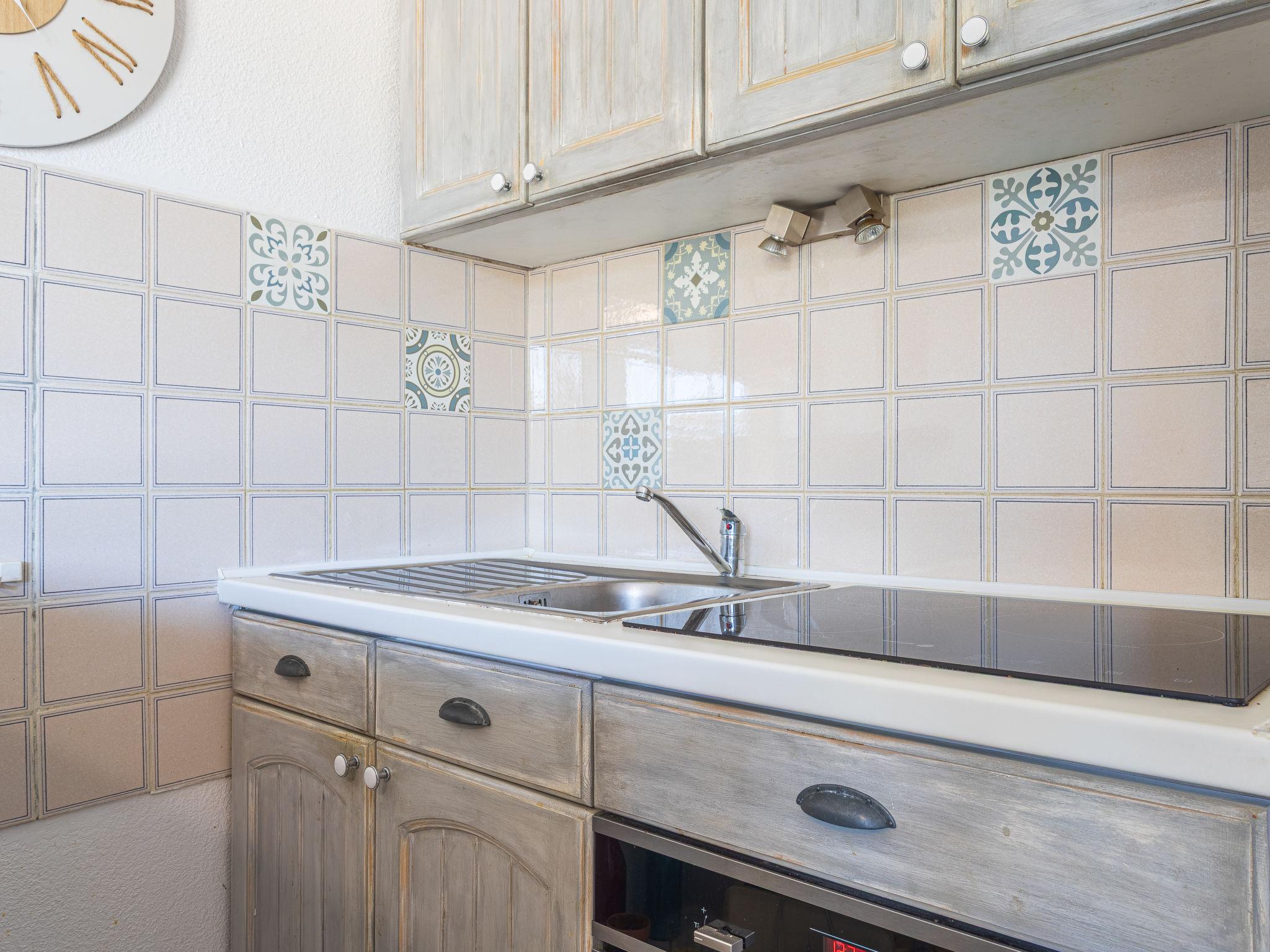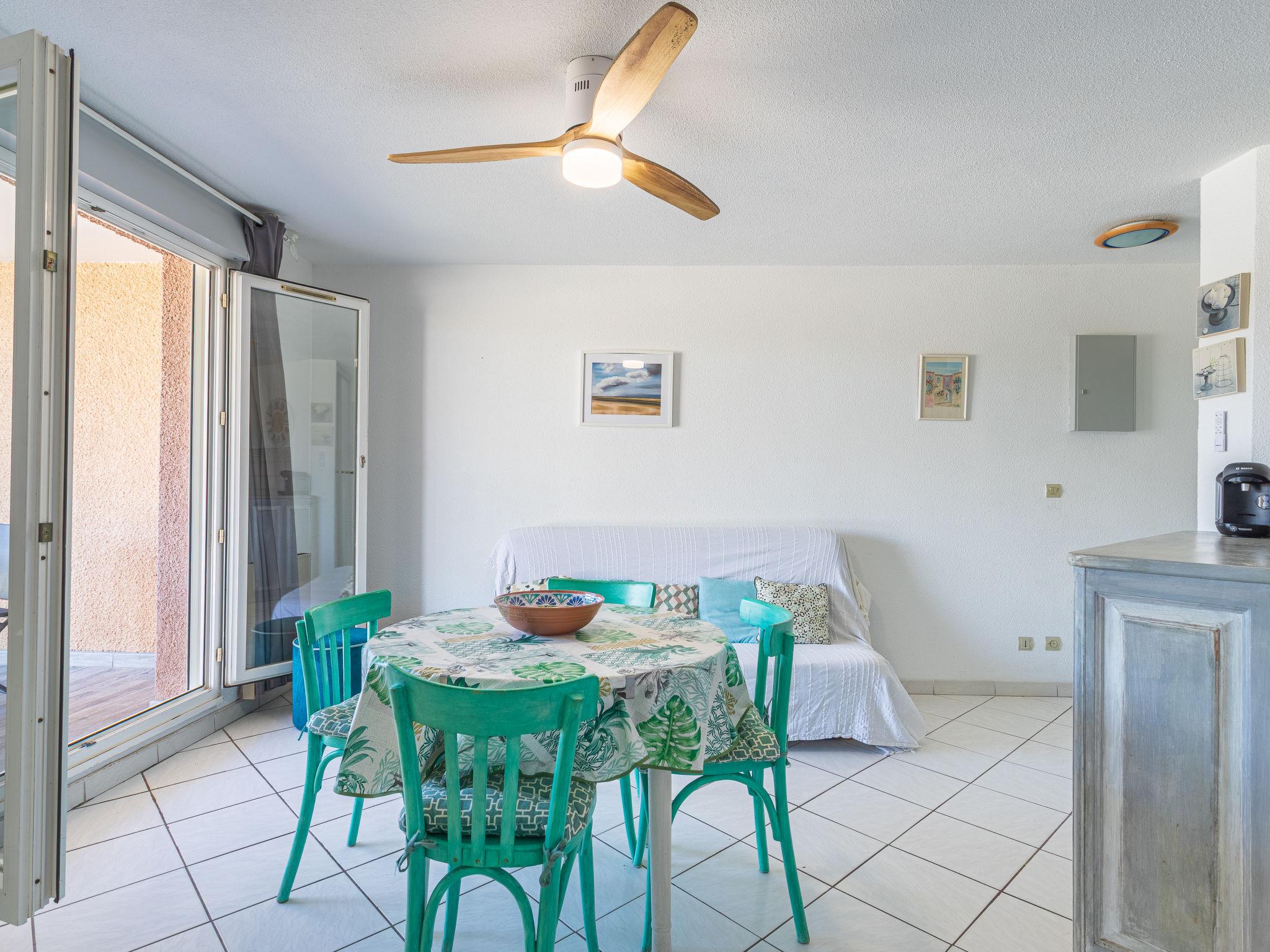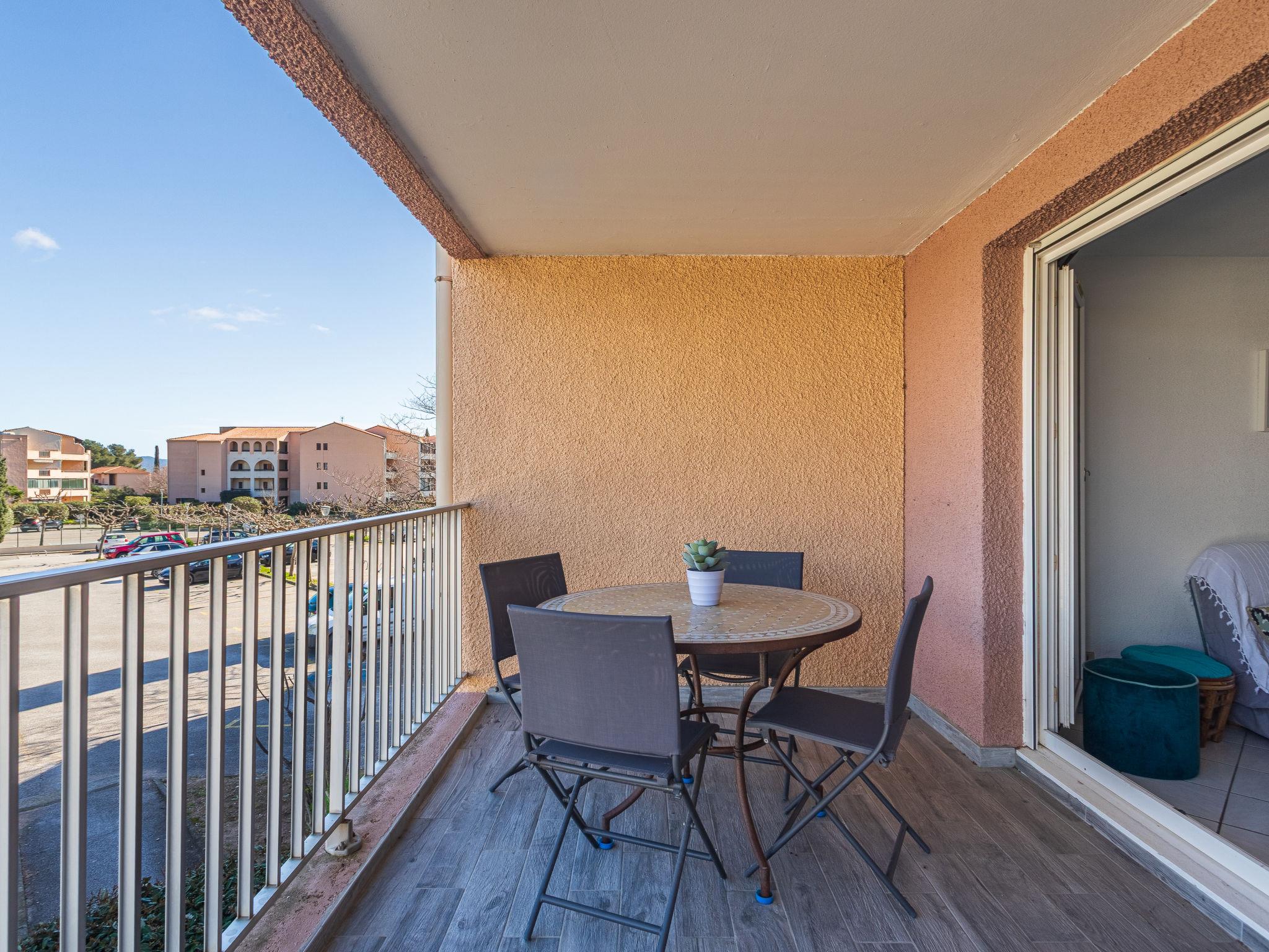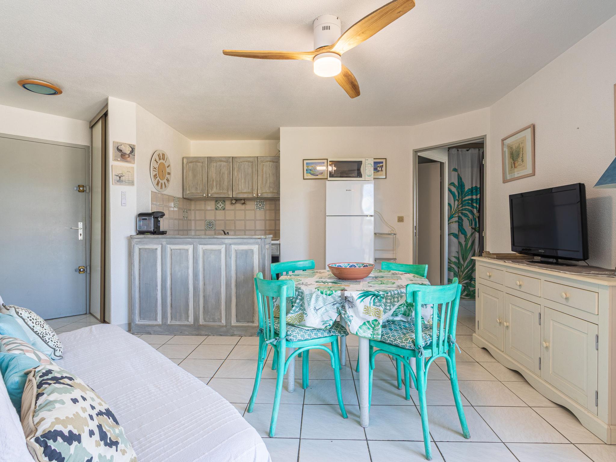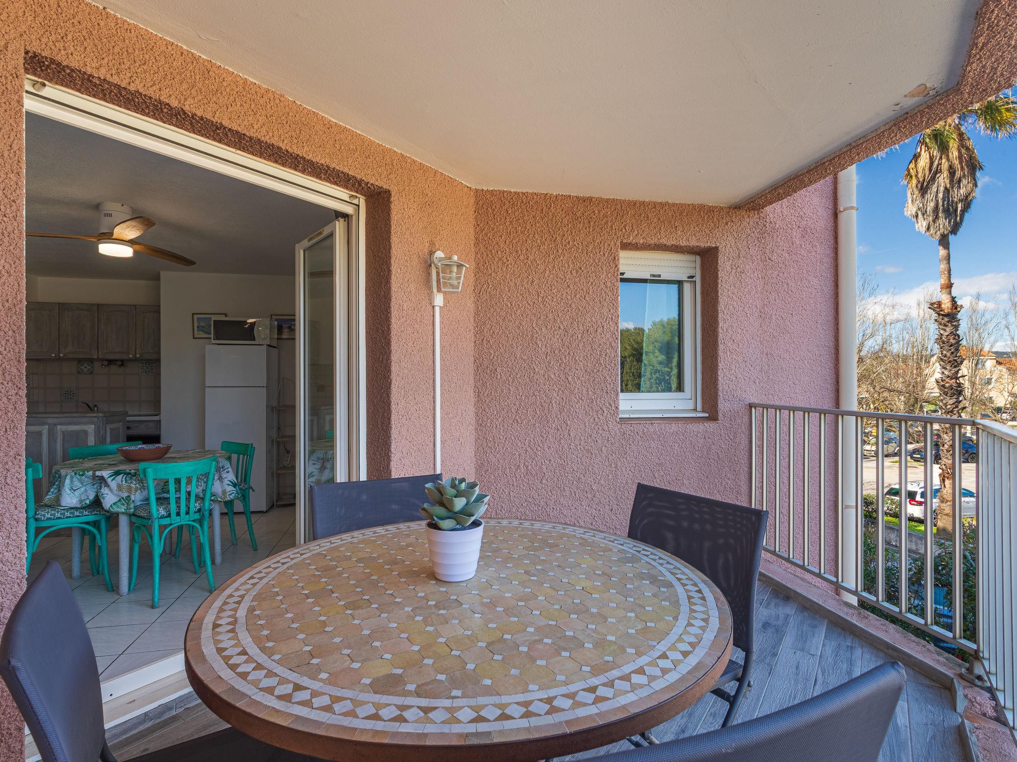 2-room apartment 34 m2 on 1st floor. Bright, comfortable and beautiful furnishings: living/dining room with dining table and TV (flat screen). Exit to the terrace. 1 room with 1 french bed (140 cm, length 190 cm). Sleeping alcove with 1 x 2 bunk beds (90 cm, length 190 cm). Kitchenette (oven, 3 ceramic glass hob hotplates, toaster, kettle, microwave, freezer, electric coffee machine). Shower/WC. Electric heating. Terrace 7 m2, east facing position. Terrace furniture. Facilities: washing machine, iron. Internet (WiFi, extra). Parking space n Non numeroté (fenced). Please note: TV only FR. Smoke alarm, no lift. Offer by a private individual according to Art. 155, IV of CGI. 83071001193D6