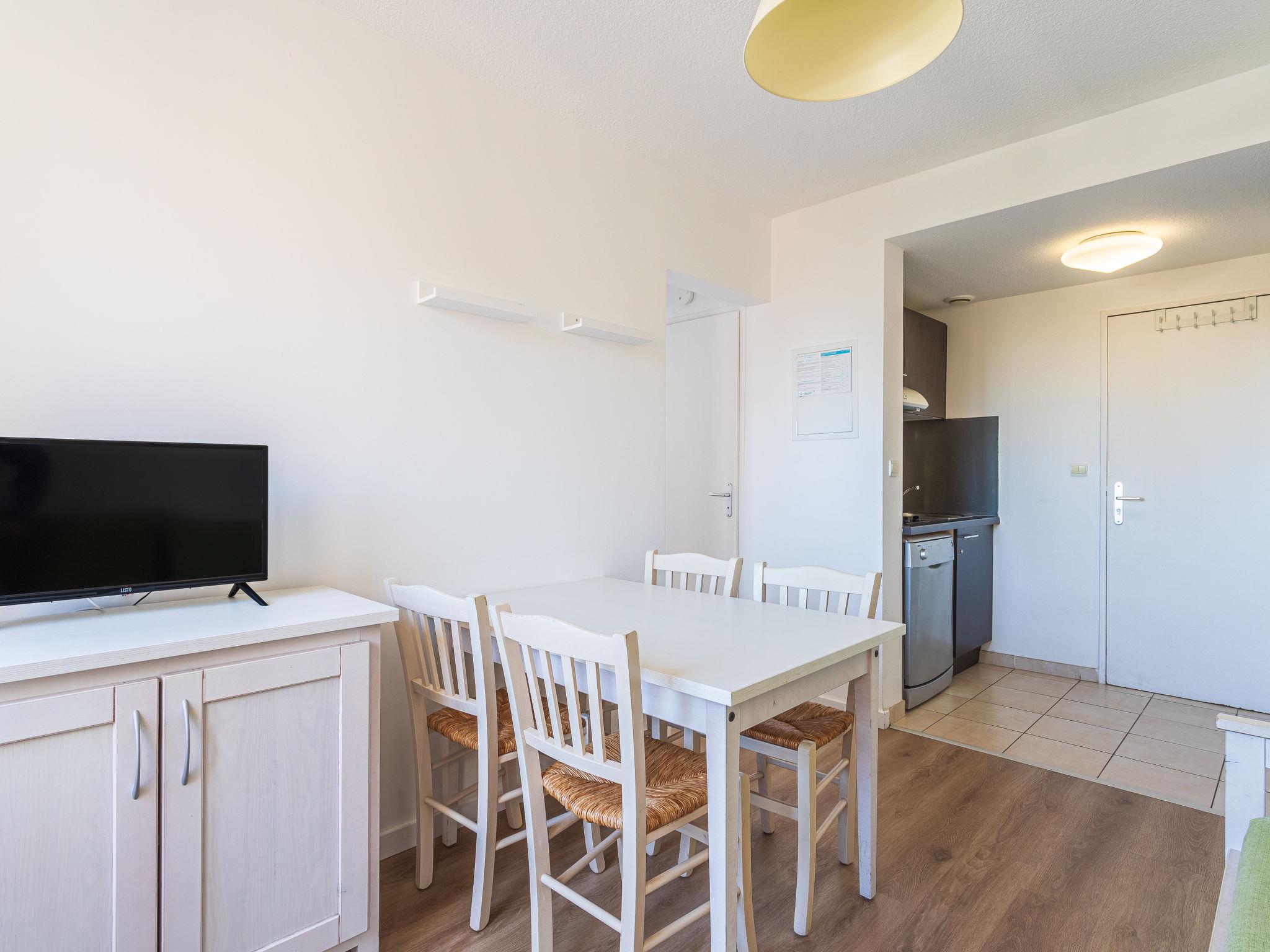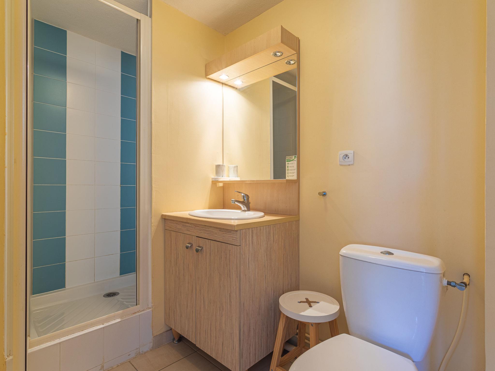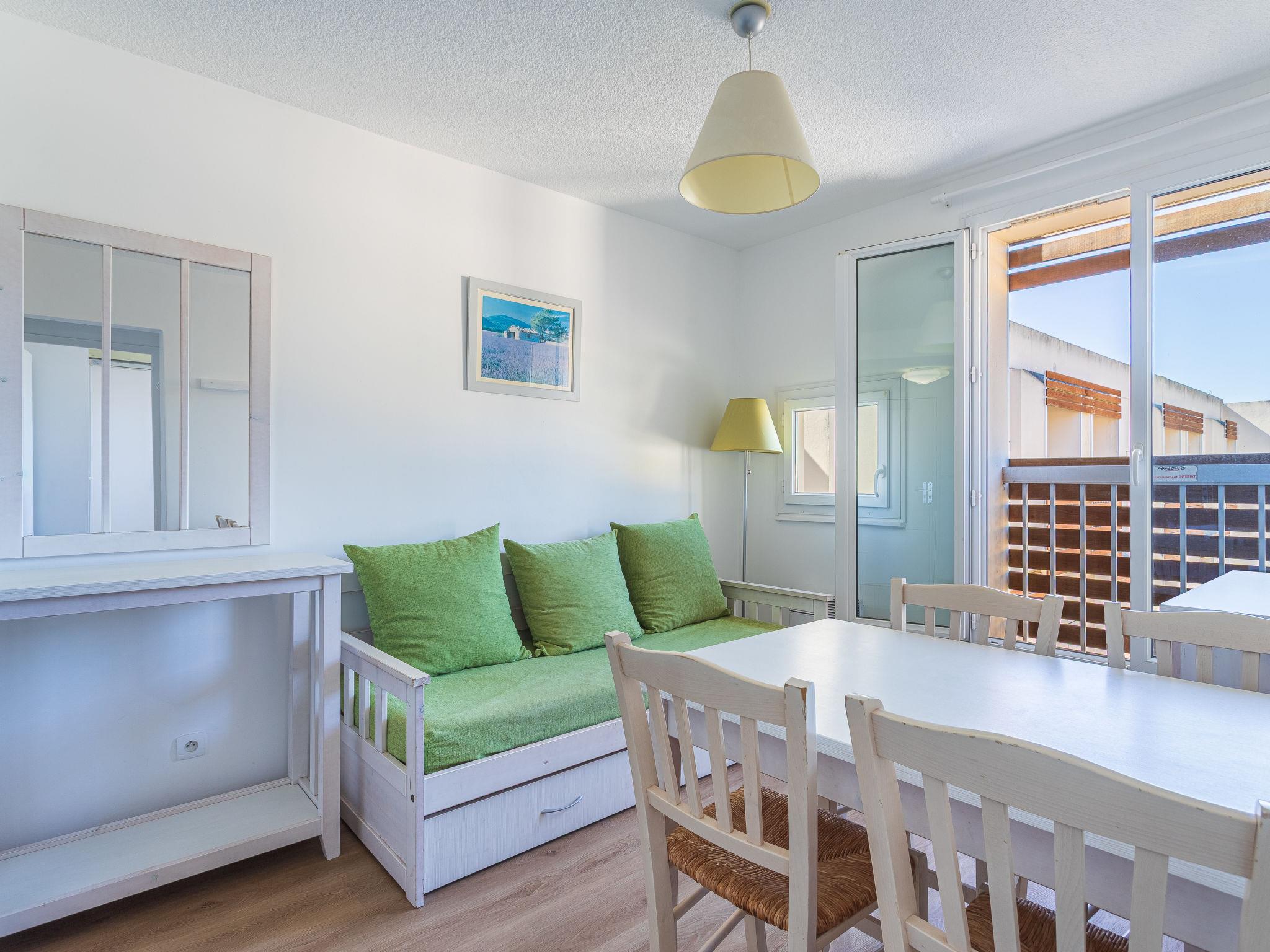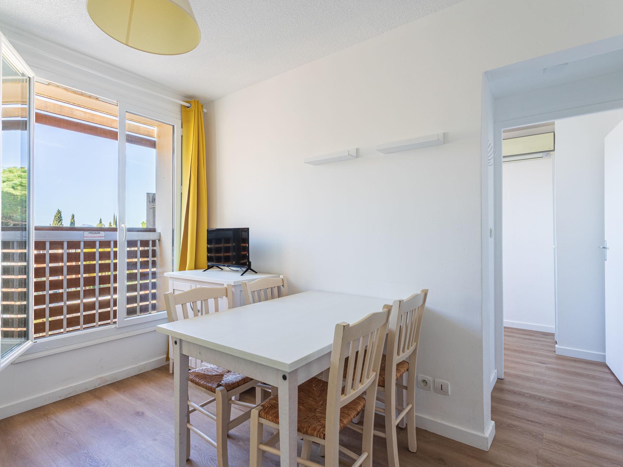2-room apartment 27 m2 on 3rd floor, south-west facing position. Bright, comfortable and beautiful furnishings: living/dining room with 1 pull-out bed (2 pers. 2 x 90 cm, length 190 cm), dining table and TV (flat screen). 1 room with Dressing room with 1 french bed (140 cm, length 190 cm), air conditioning. Kitchenette (dishwasher, 2 induction hot plates, toaster, kettle, microwave, freezer, electric coffee machine). Shower/WC. Electric heating. Facilities: washing machine, iron. Internet (WiFi, extra). Please note: suitable for families. TV only FR. Smoke alarm, no lift. Offer by a private individual according to Art. 155, IV of CGI. 83071000535K