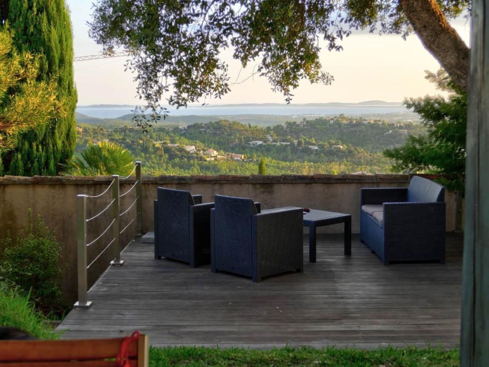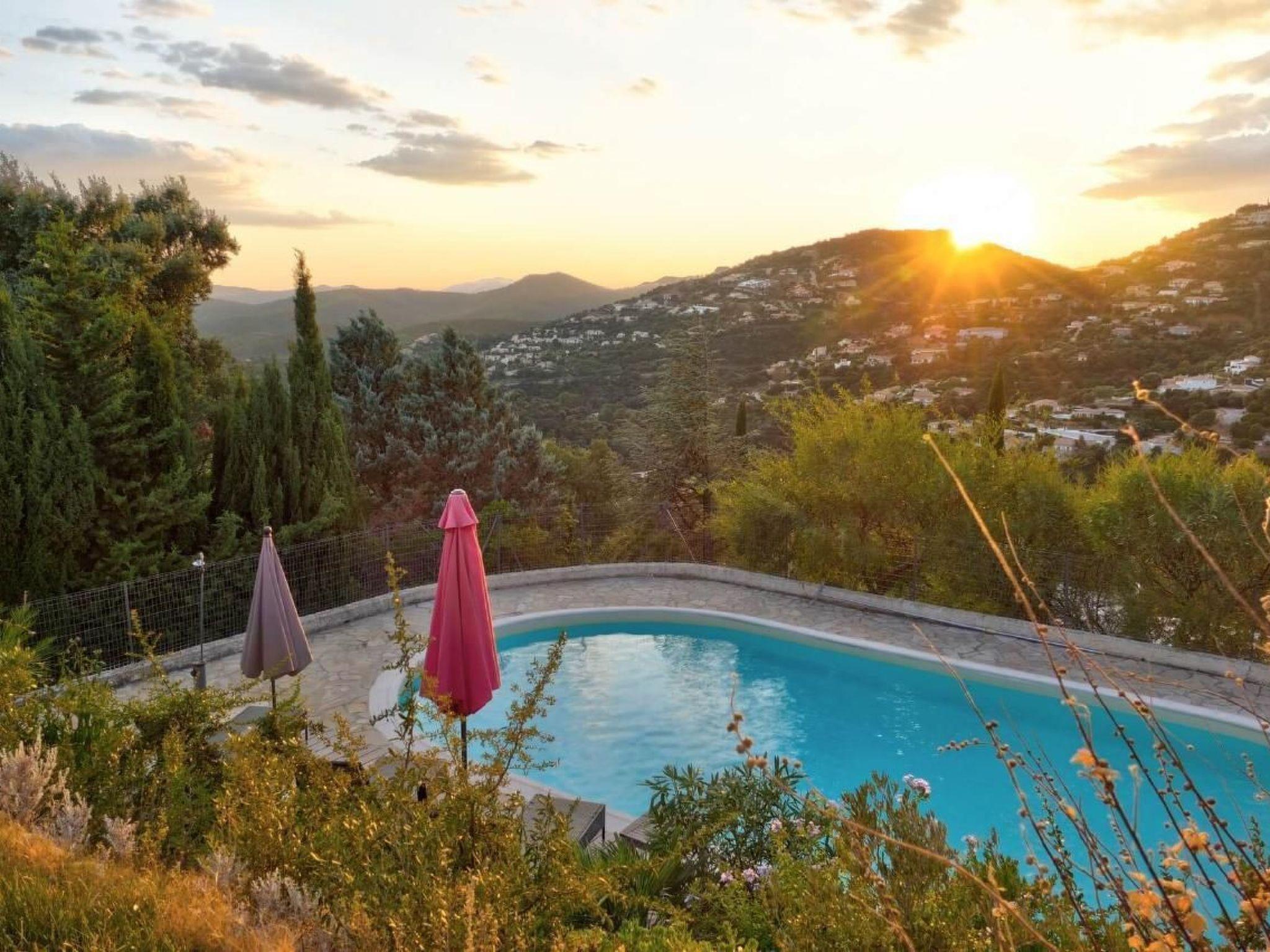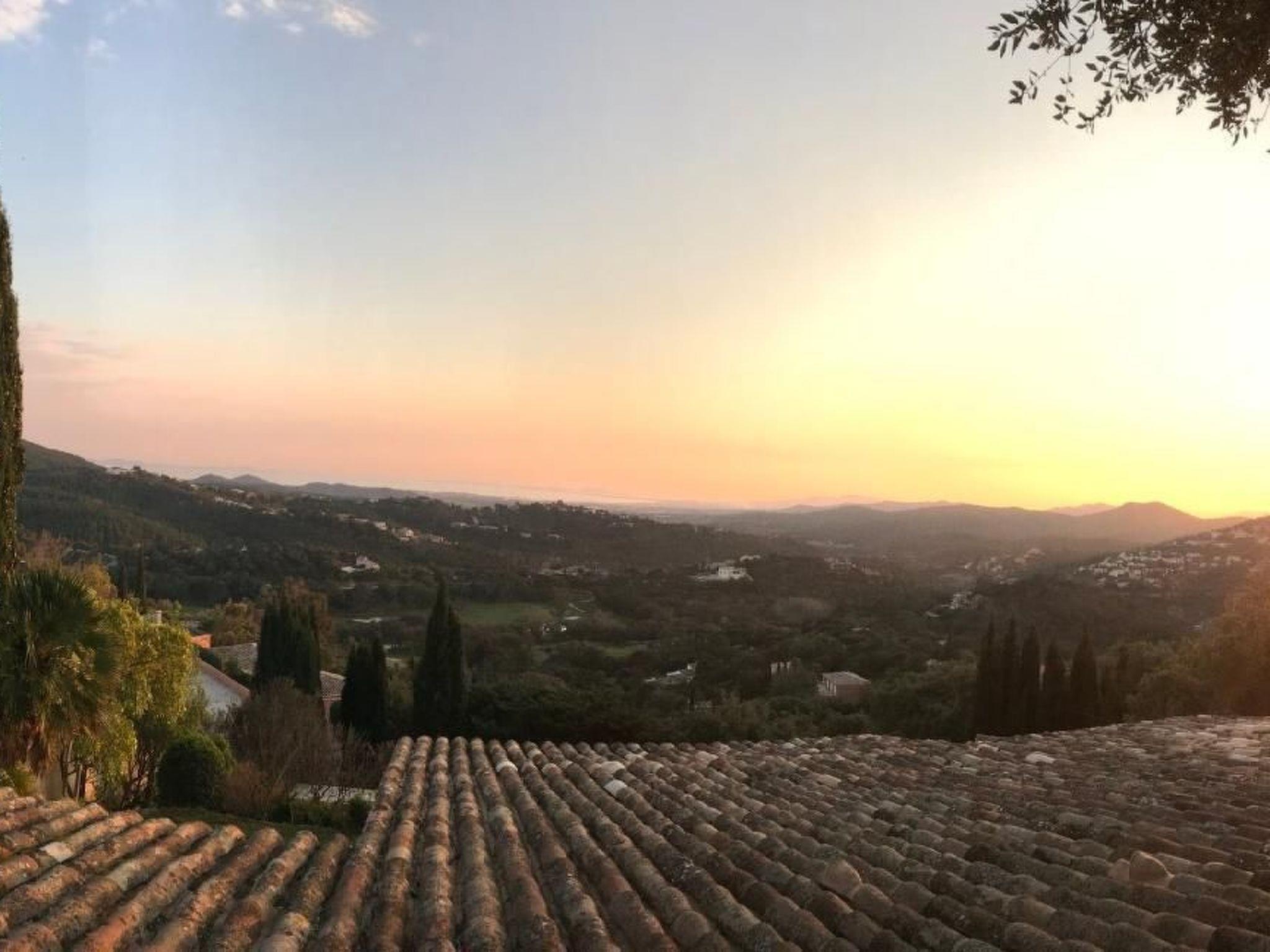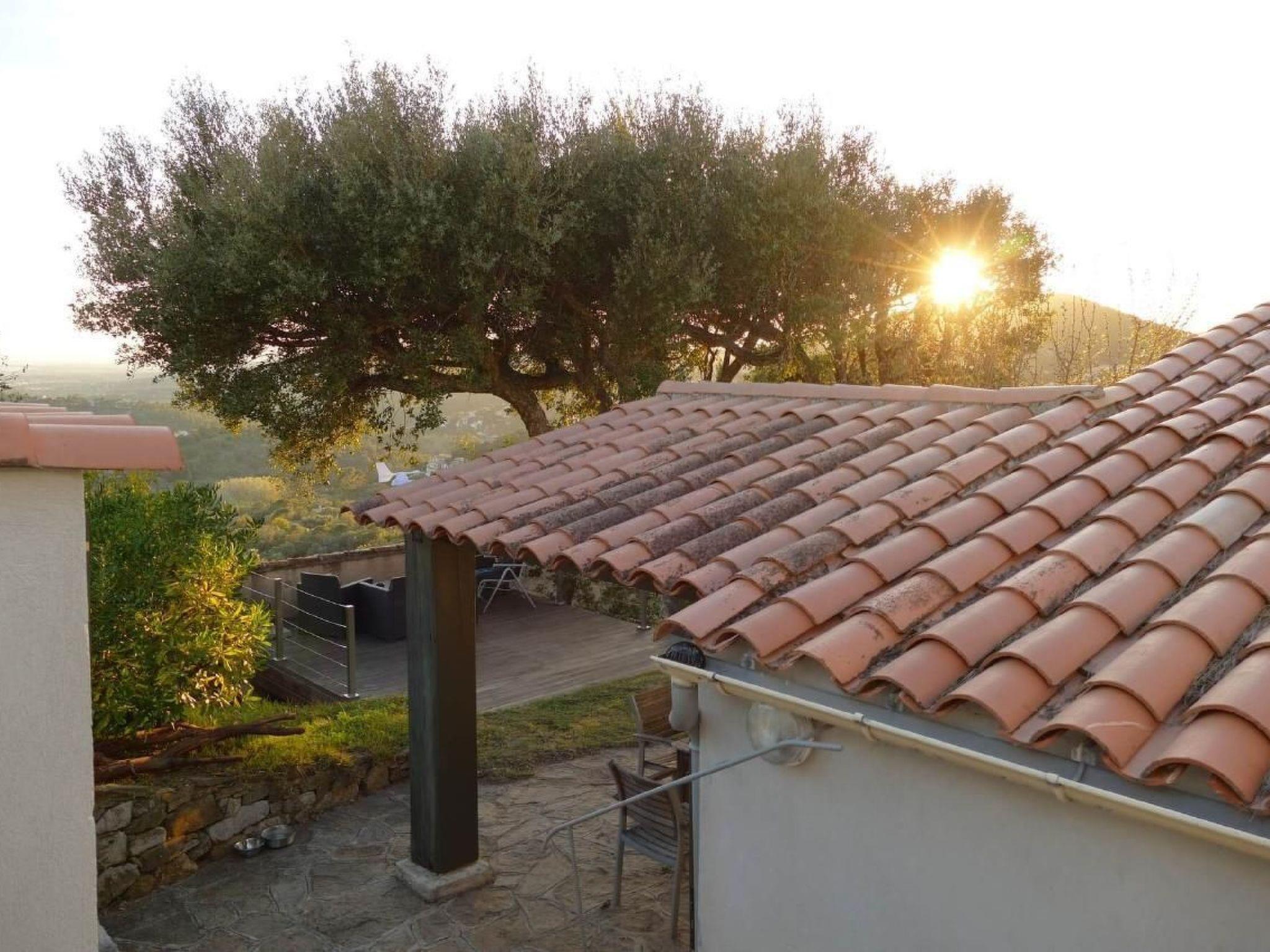 The renovated villa in Valcros (near La Londe les Maures) is located in a quiet residential area on a hill in the foothills of the Massif des Maures. From the detached house and the terraces you can enjoy a fantastic panoramic view of the entire bay of Hyeres with the Giens peninsula and the Ile de Porquerolles. The garden is shaded by two cork oaks and a patio cover, but also offers plenty of sunny spots depending on your taste and the time of year. The 12 x 6 metre pool is located in a slightly lower part of the garden. The house and garden are south-west facing, so you will always find a suitable spot with a good view. The house has an allocated parking space (further visitor parking spaces are also available), which is located at the end of a cul-de-sac. Access to the property is via several steps. The plots are arranged in such a way that you are undisturbed in the house and garden.