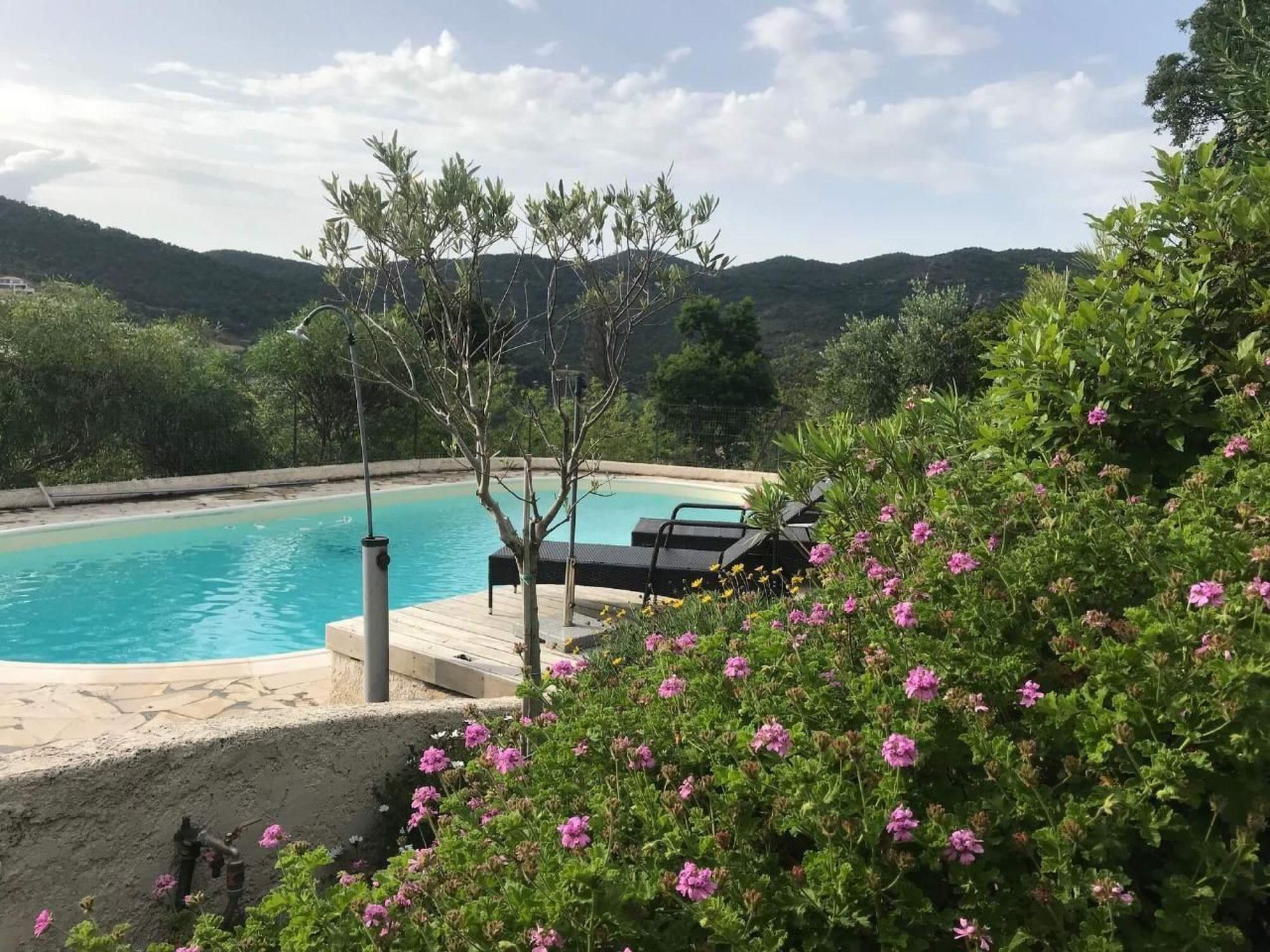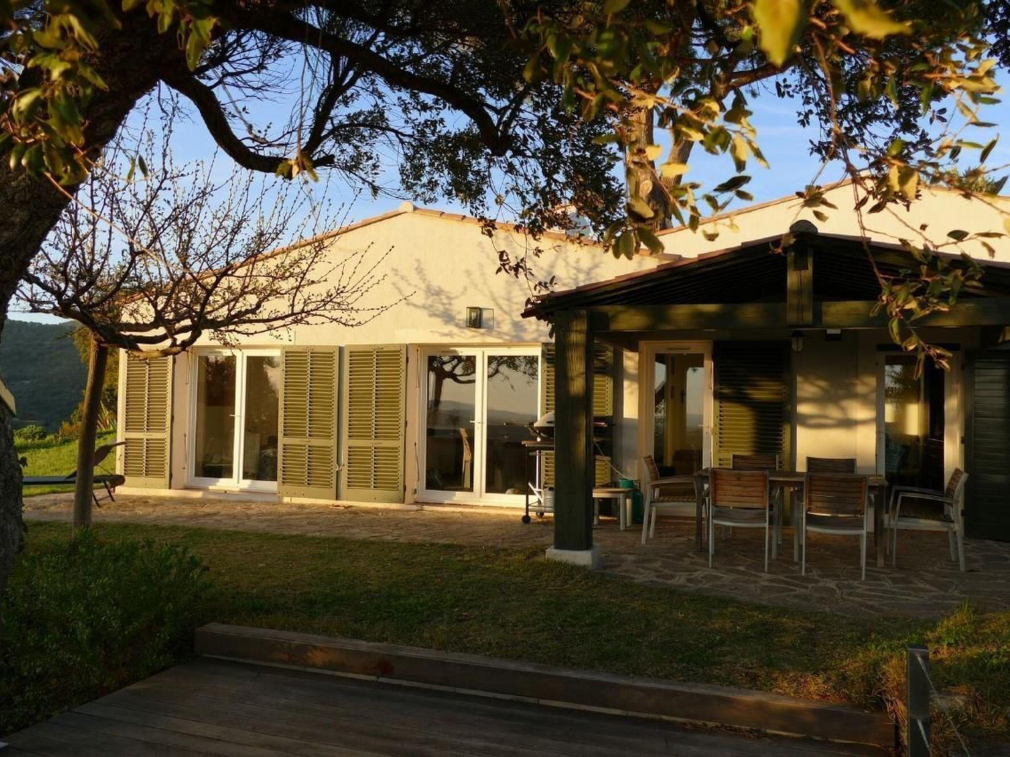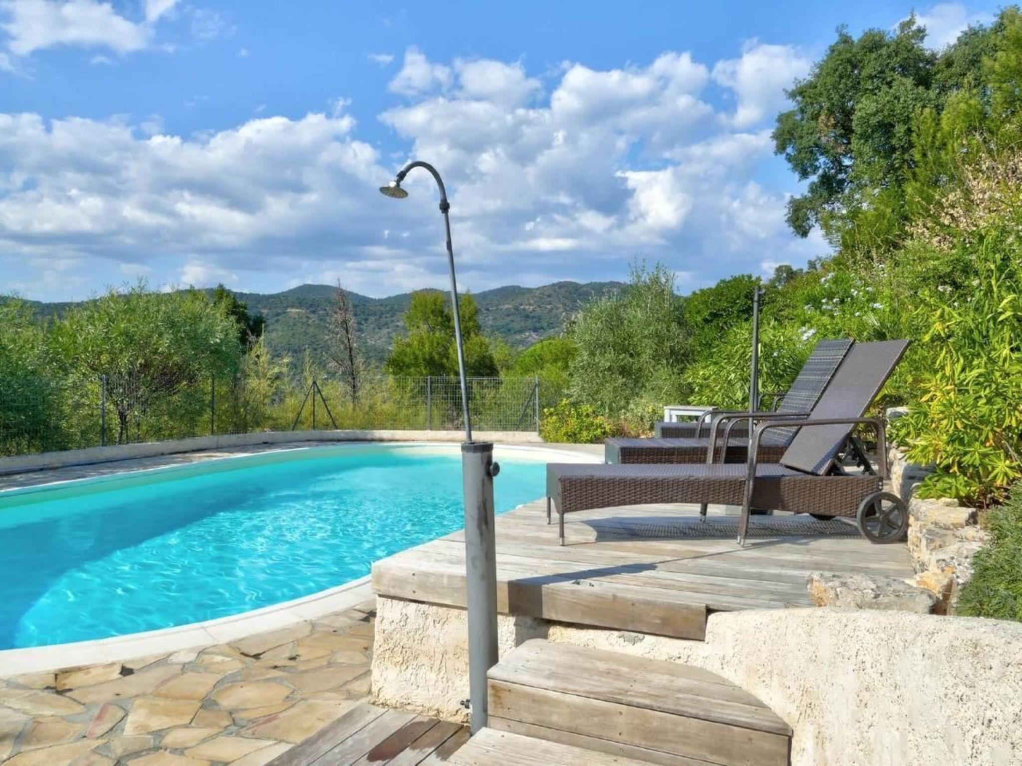 The renovated villa in Valcros (near La Londe les Maures) is located in a quiet residential area on a hill in the foothills of the Massif des Maures. From the detached house and the terraces you can enjoy a fantastic panoramic view of the entire bay of Hyeres with the Giens peninsula and the Ile de Porquerolles. The garden is shaded by two cork oaks and a patio cover, but also offers plenty of sunny spots depending on your taste and the time of year. The 12 x 6 metre pool is located in a slightly lower part of the garden. The house and garden are south-west facing, so you will always find a suitable spot with a good view. The house has an allocated parking space (further visitor parking spaces are also available), which is located at the end of a cul-de-sac. Access to the property is via several steps. The plots are arranged in such a way that you are undisturbed in the house and garden.