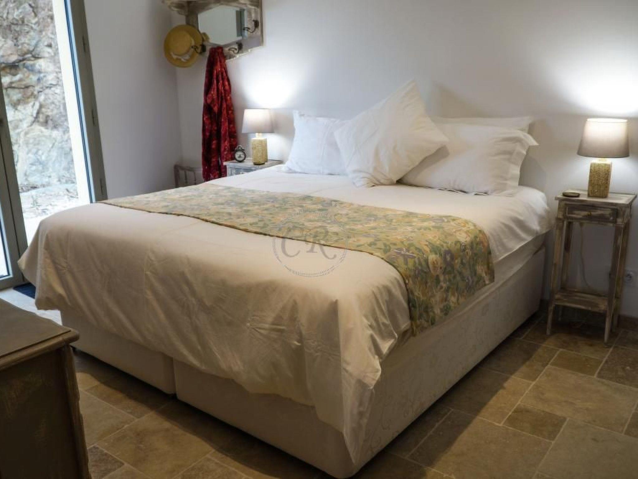 Outside, you can take full advantage of the 2 sea-facing terraces and an infinity pool, as well as a new bowling green just off the terrace. On the first level, the living room, kitchen and spacious bedroom open onto the terrace. At mealtimes, you can choose to eat inside or in the shaded area of the outside terrace. A second bedroom on the same level overlooks a fruit garden. All bedrooms have en-suite bathrooms. On the second level is a 3-person suite with en-suite shower room and wc. On the third level is the master bedroom, with its large terrace between land and sky, panoramic sea views, dressing room and bathroom with spa bath.