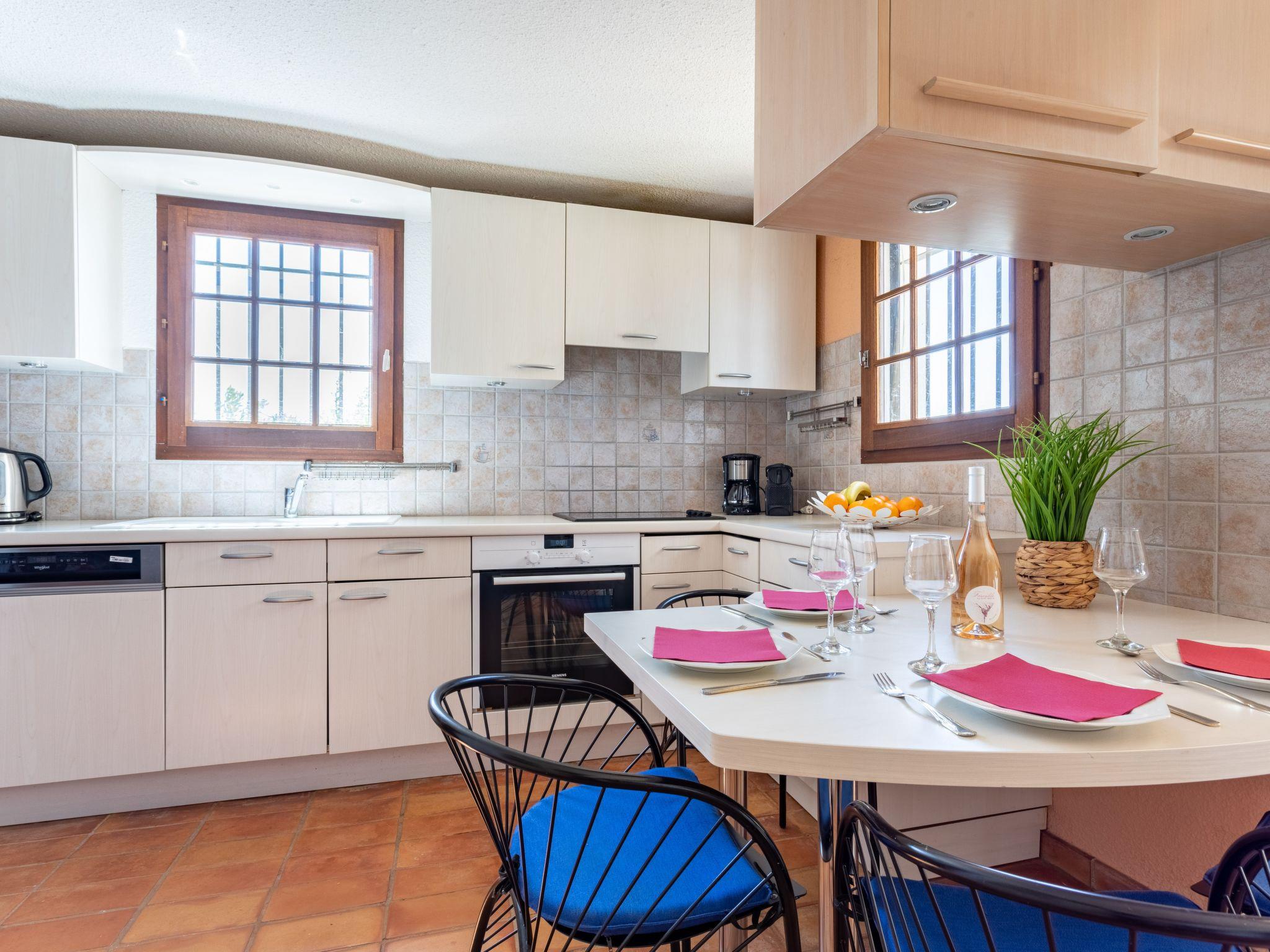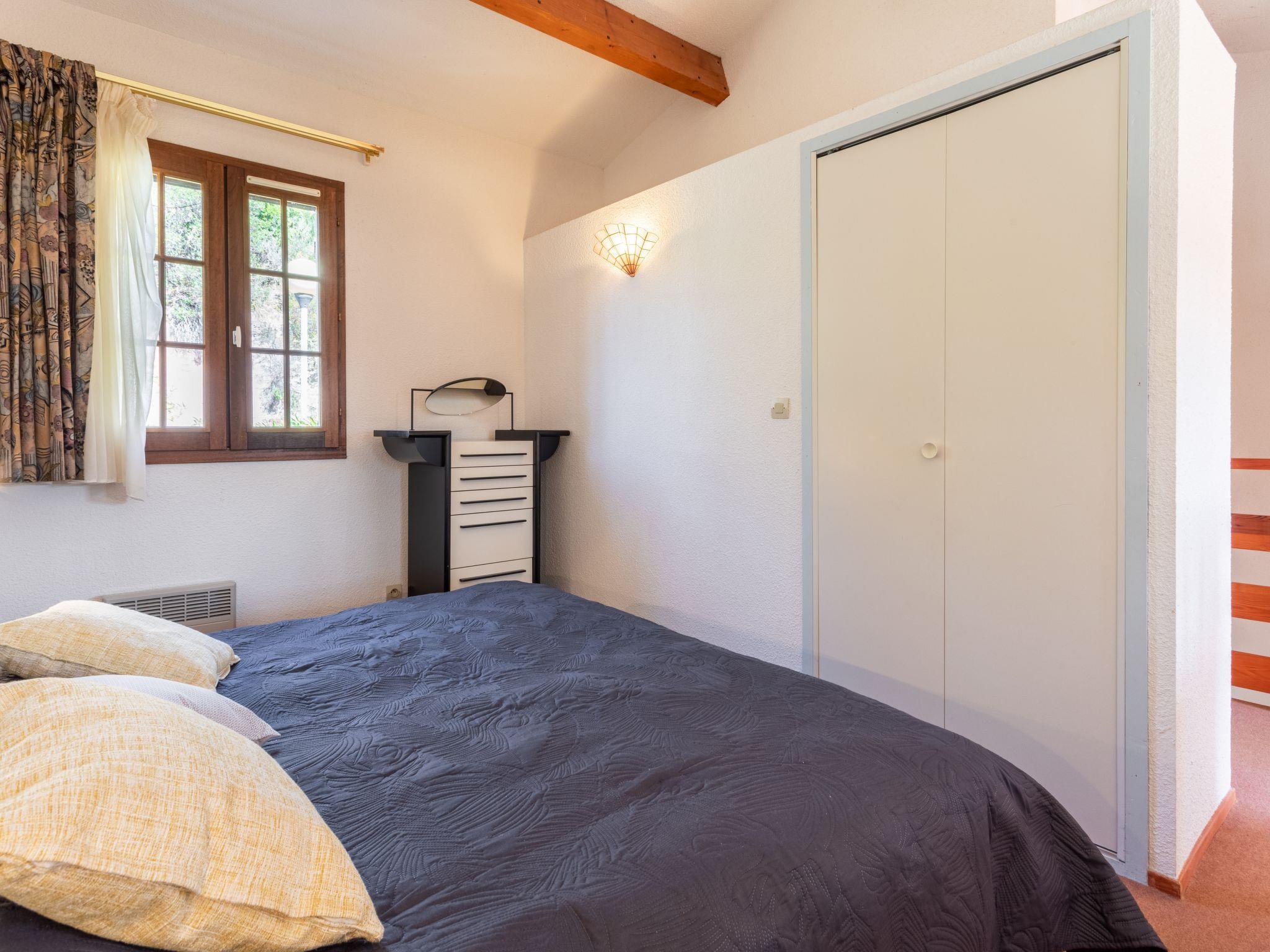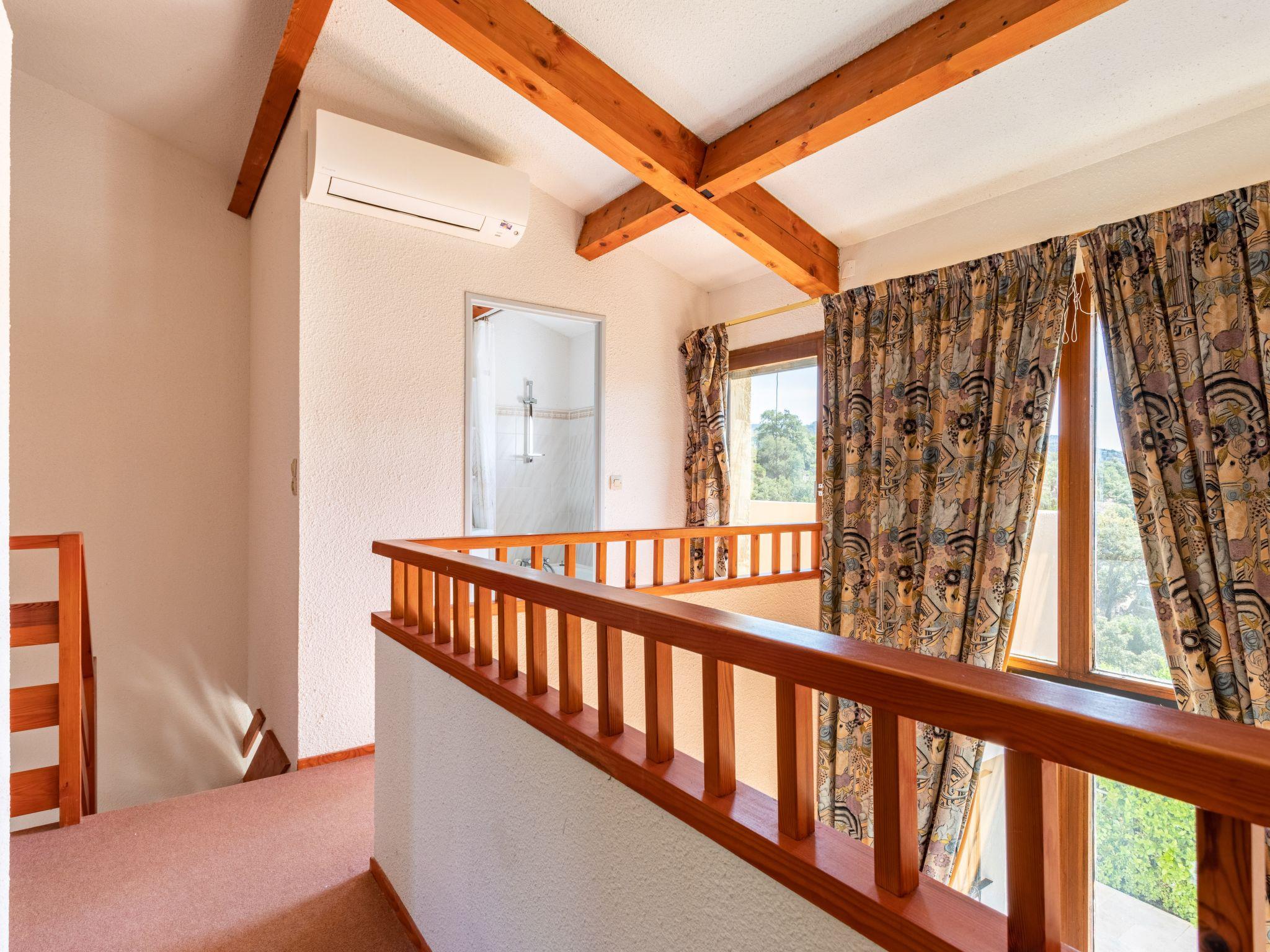 4-room house 98 m2 on 2 levels. Comfortable and cosy furnishings: living/dining room with TV, flat screen and hi-fi system. Exit to the veranda. 1 room with 1 double bed (2 x 90 cm, length 190 cm). Open kitchen (dishwasher, 4 induction hot plates, toaster, kettle, microwave, freezer, electric coffee machine). Bathroom, sep. WC. Electric heating, air-conditioning. Upper floor: 1 open room with 1 double bed (2 x 90 cm, length 190 cm). 1 room with 1 bed (90 cm, length 190 cm). Bath/WC. Balcony 12 m2, terrace 75 m2. Terrace furniture, barbecue. Beautiful view of the valley. Facilities: washing machine, dryer. Internet (WiFi, free). Parking at the house. Please note: TV only FR. Smoke alarm. 830710008605H