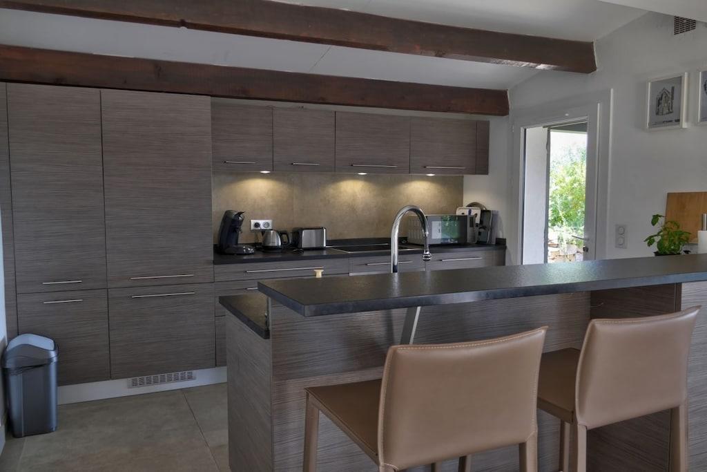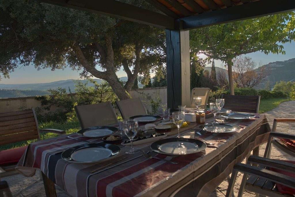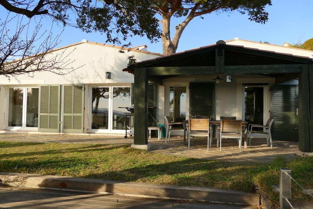 Das neu renovierte Ferienhaus Villa Valcros befindet sich in einer ruhigen Villensiedlung auf einem Hügel der Ausläufer des Massif des Maures. Vom alleinstehenden Ferienhaus und den Terrassen genießen Sie einen fantastischen Weitblick auf die gesamte Bucht von Hyeres mit der Halbinsel Giens und der Ile de Porquerolles. Der Garten bietet durch zwei Korkeichen und eine Terrassenüberdachung Schatten, aber je nach Geschmack und Jahreszeit auch genügend sonnige Plätze. Der 12 mal 6 m große Pool befindet sich in einem etwas tiefer gelegenen Teil des Gartens. Haus und Garten haben eine Süd-West-Lage, so dass sie jederzeit ein passendes Plätzchen mit guter Aussicht finden. Das Haus besitzt einen fest zugeordneten Parkplatz (weitere Besucherparkplätze stehen ebenfalls zur Verfügung), der sich am Ende einer Sackgasse befindet. Den Zutritt zum Grundstück erreicht man dann durch mehrere Stufen. Die Grundstücke sind so angeordnet, dass man in Haus und Garten ungestört ist. Im Haus befindet sich ein großer Wohn-Essraum mit offener Küche, von dem sie ebenfalls einen guten Meerblick haben. Ein paar Stufen führen zu den 3 Schlafräumen. Ein Bad ist mit Waschplatz, Dusche und WC und ein zweites Bad mit Waschplatz und Dusche . Zudem gibt es ein separates WC. Zwei der Schlafräume zeigen nach Süden und haben ebenfalls Meerblick. Der dritte Schlafraum geht Richtung Westen.