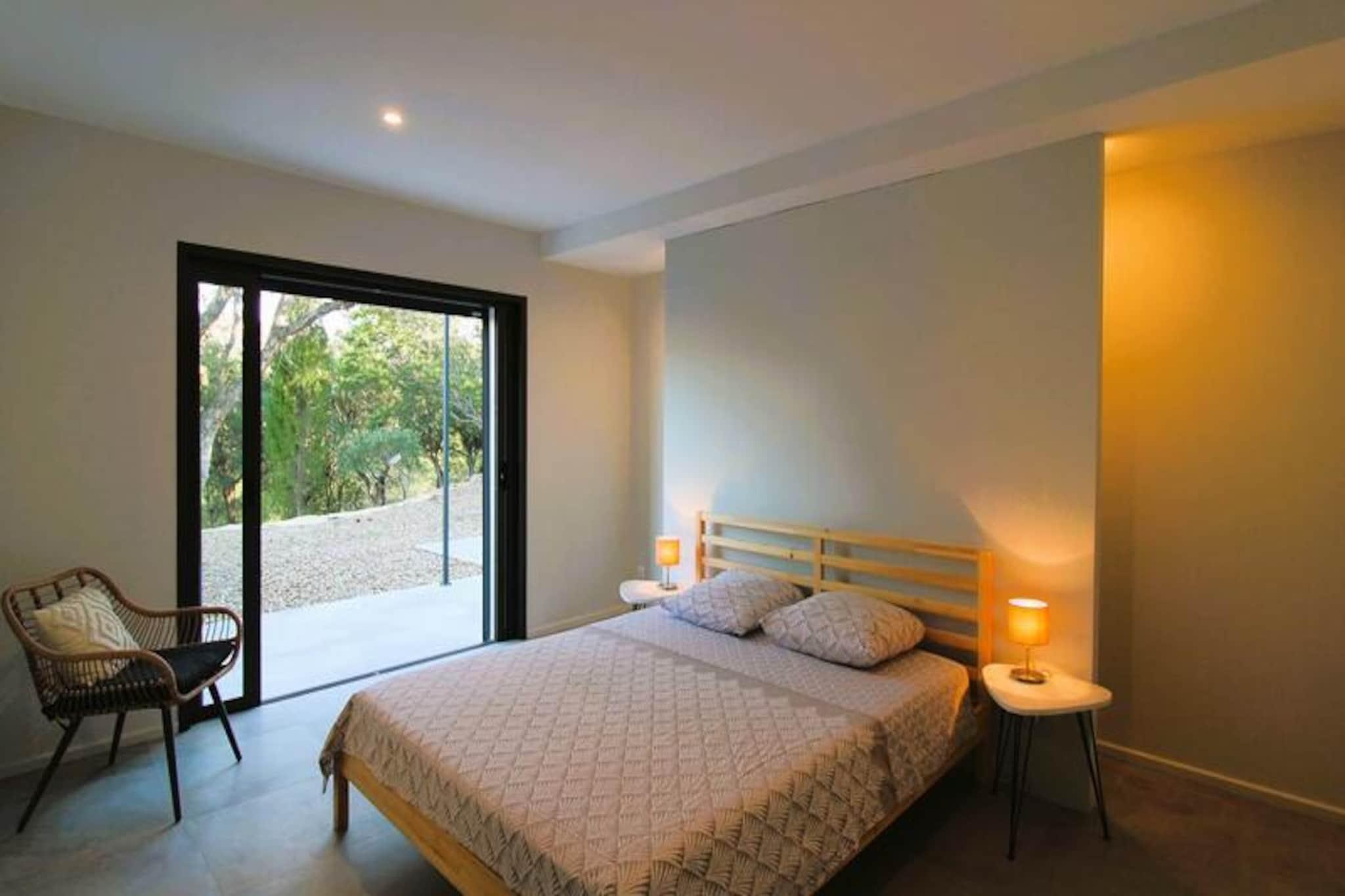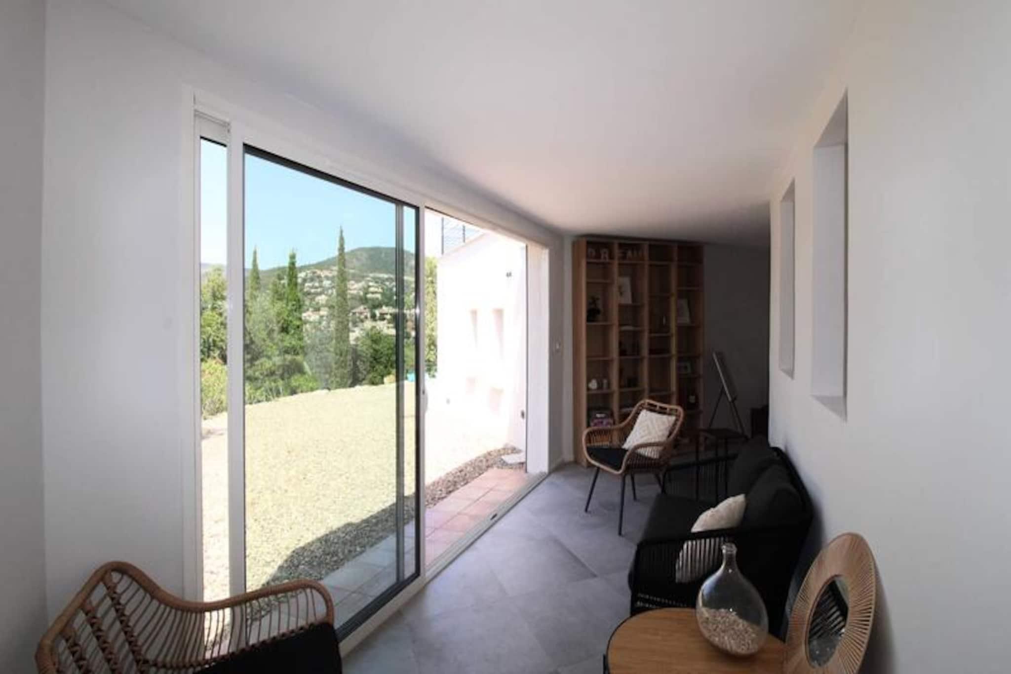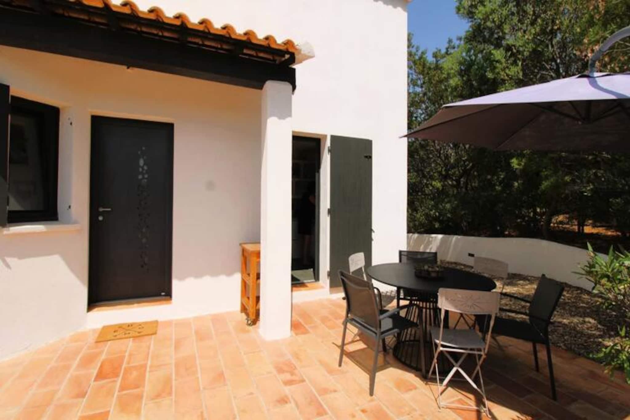 This beautifully renovated 5-room villa offers a peaceful retreat with stunning views of the hills, lake, and Valcros golf course. Accommodating up to 8 guests, it features 4 air-conditioned double bedrooms with Queensize beds and plenty of storage. The villa is not pet-friendly, and smoking is prohibited. Enjoy modern amenities including Wi-Fi, television, and air conditioning in all rooms. There is also a private parking space for up to 3 cars, secured by an electric gate with remote control, ensuring privacy and safety throughout your stay. The villa’s prime location offers easy access to beautiful beaches, including Argentière, Estagnol, Brégançon, and Pellegrin, all just a few minutes away. Explore the local charm of the area, with quick access to the pier for Porquerolles Island and the Valcros International Golf Club, only 5 minutes away. For those looking to relax or dine out, the area also boasts cafes, restaurants, and vibrant markets where you can sample local produce and delicacies. Inside, the villa features a fully equipped American kitchen, ideal for preparing meals, along with a comfortable living room opening onto a large terrace with garden furniture and a bio-climatic pergola. A private swimming pool (10x5m), secured by an alarm, provides the perfect spot for relaxation, complete with an outdoor shower, parasol, and a BBQ for al fresco dining. The villa also includes a washing machine, dishwasher, and additional conveniences for a comfortable stay.